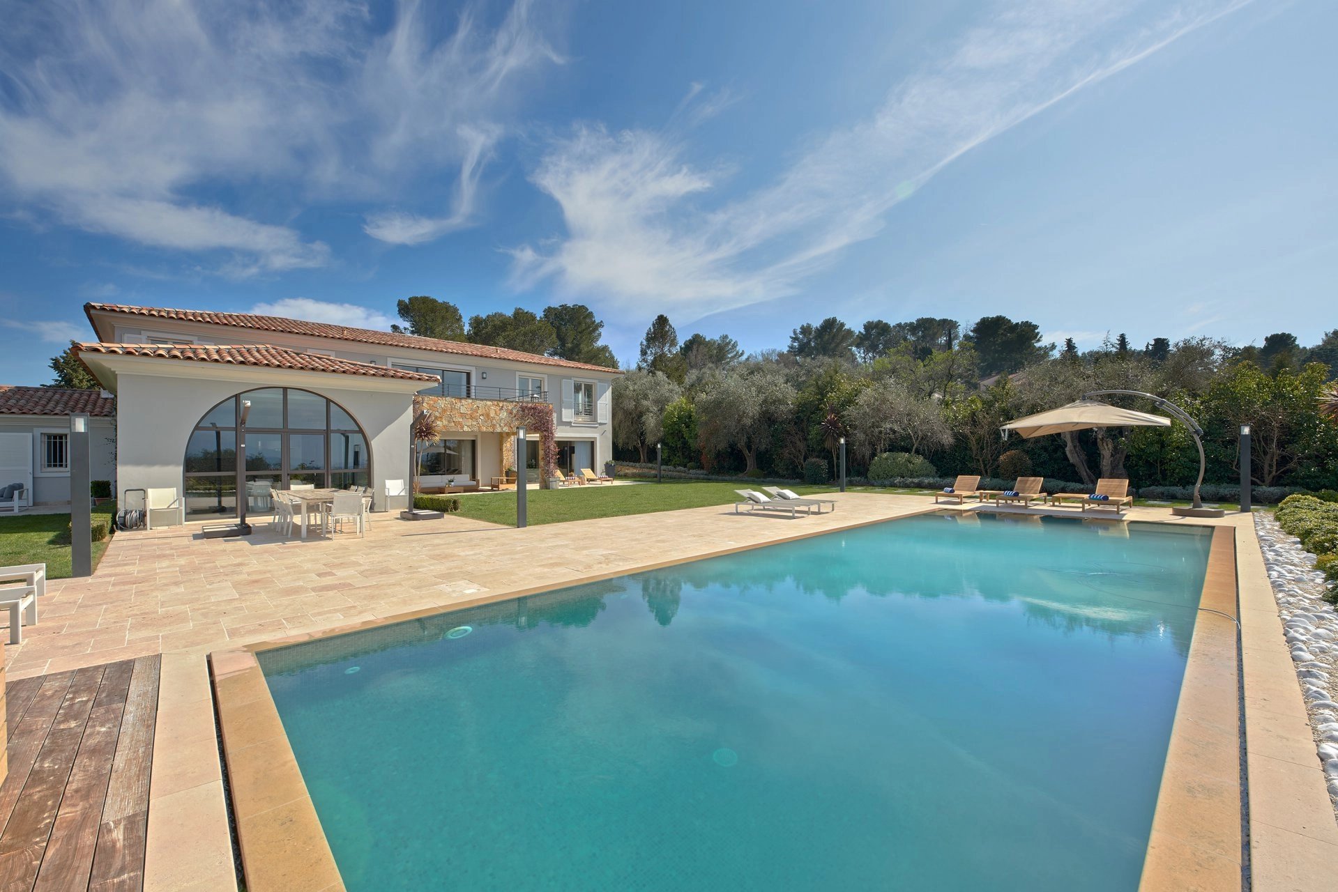 Dans le Mougins ultra résidentiel et préservé rare propriété aménagée et décorée avec une parfaite maitrise les immenses baies vitrées du living (180m²) découvrent le somptueux panorama en toile de fond du luxuriant jardin. celui- ci, plat et agrémenté de multiples terrasses comporte une importante piscine 6 chambres en suite,cuisine de 40m²,salle de cinema,grand garage....tout a été prévu pour la quietude et le confort de votre séjour
