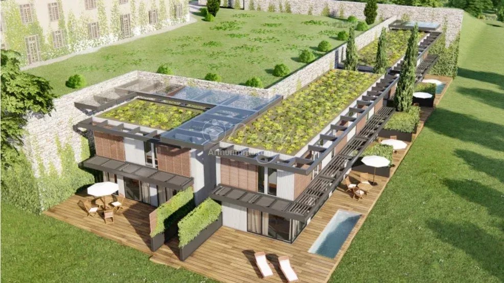 Dans un cadre exceptionnel, au pied de la maison forte du Barrioz, nous vous proposons à la vente l'une des 5 somptueuses villas du Domaine de standing du Barrioz.