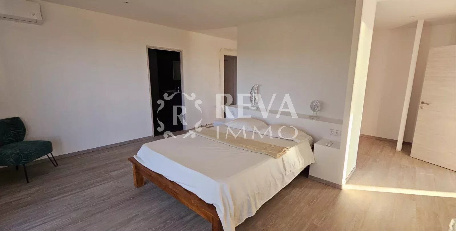 La villa est constituée d'un grand séjour, d'une cuisine américaine équipée et fonctionnelle donnant sur une belle terrasse de 170m2.