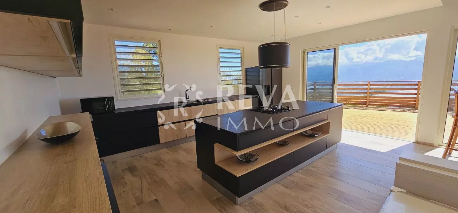 Ce logement avec piscine offre des prestations de standing et de très grands volumes bénéficie d'une vue panoramique sur la mer et le centre de Taravao.