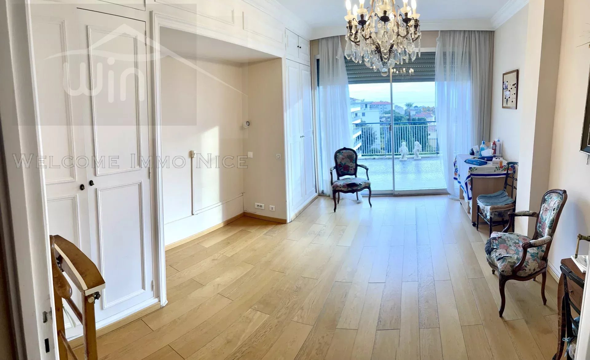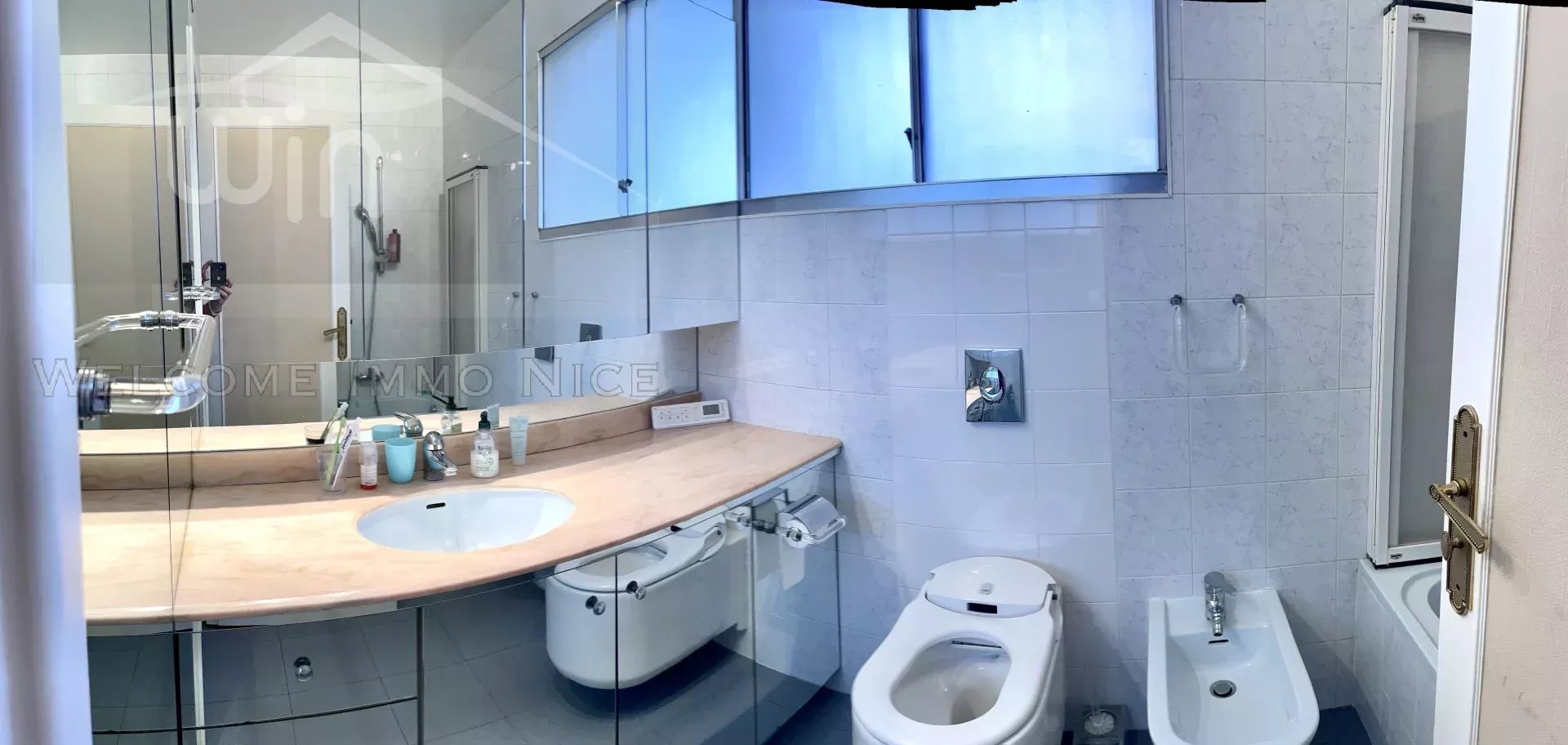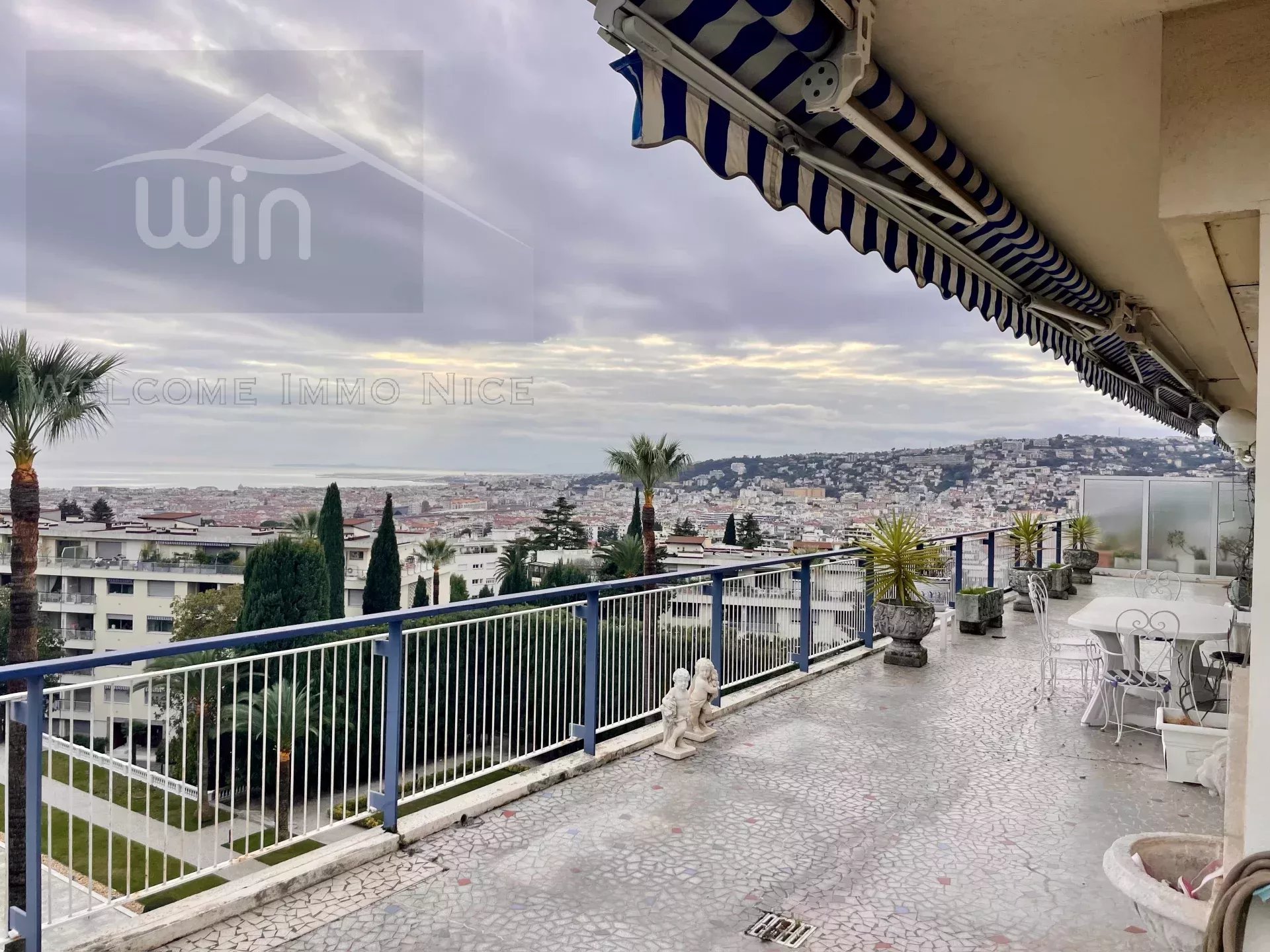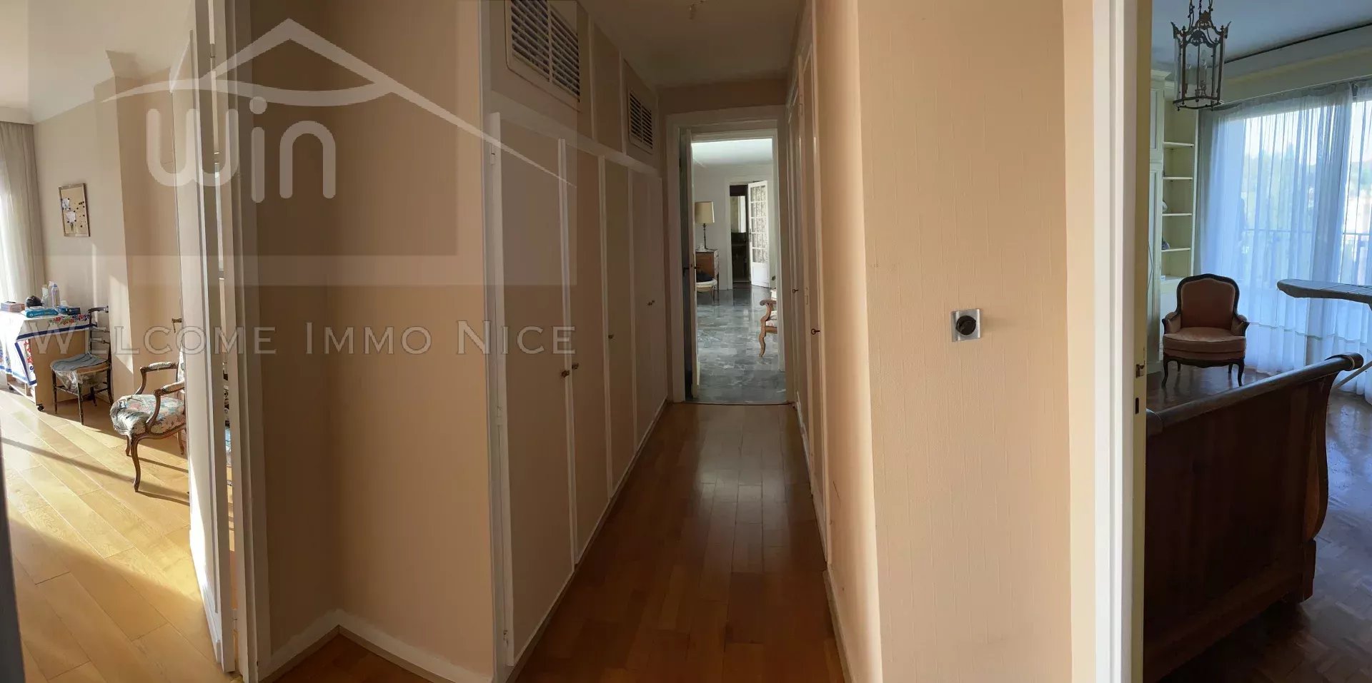 Au 5ème et dernier étage, l'appartement dispose d'un accès privé par ascenseur, d'une vaste entrée donnant sur les pièces de reception salon et salle à manger donnant sur l'immense terrasse de 150m2 entourant l'ensemble de l'appartement, offrant une vue panoramique des collines à la mer.
