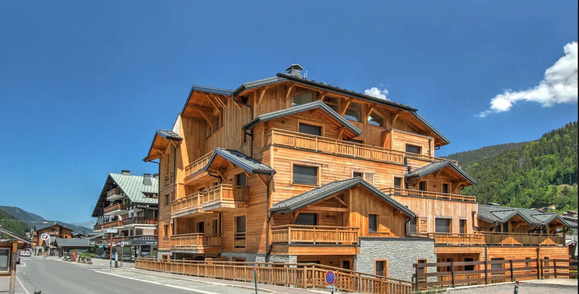 Le Mas de Joux Plane est une résidence de standing nouvellement construite. Bénéficiant d'un emplacement très privilégié, la résidence fait face aux pistes du Pléney en plein centre de Morzine. L'immeuble composé de 22 appartements individuels établit de nouveaux standards pour les résidences haut-de-gamme dans la station.