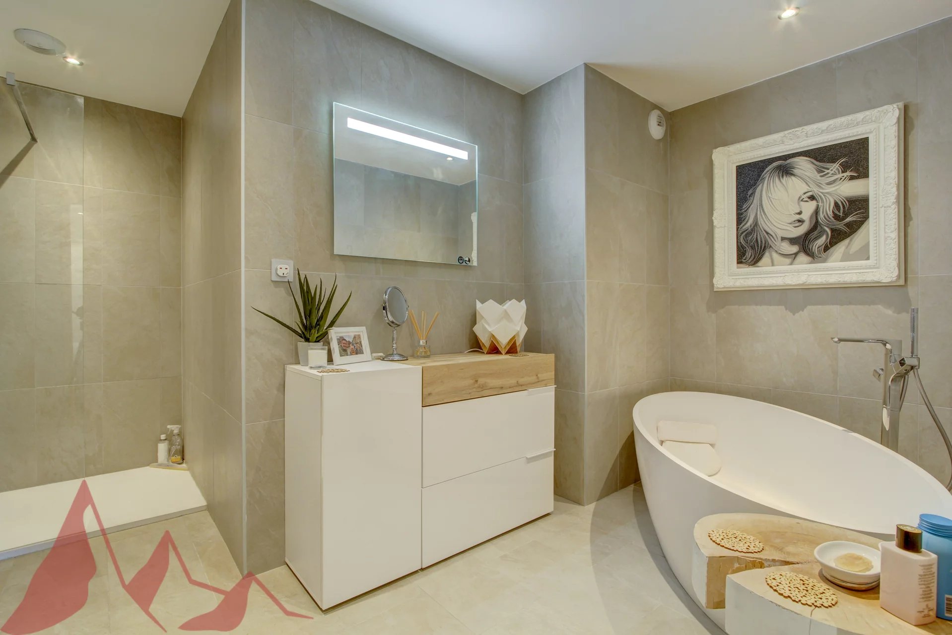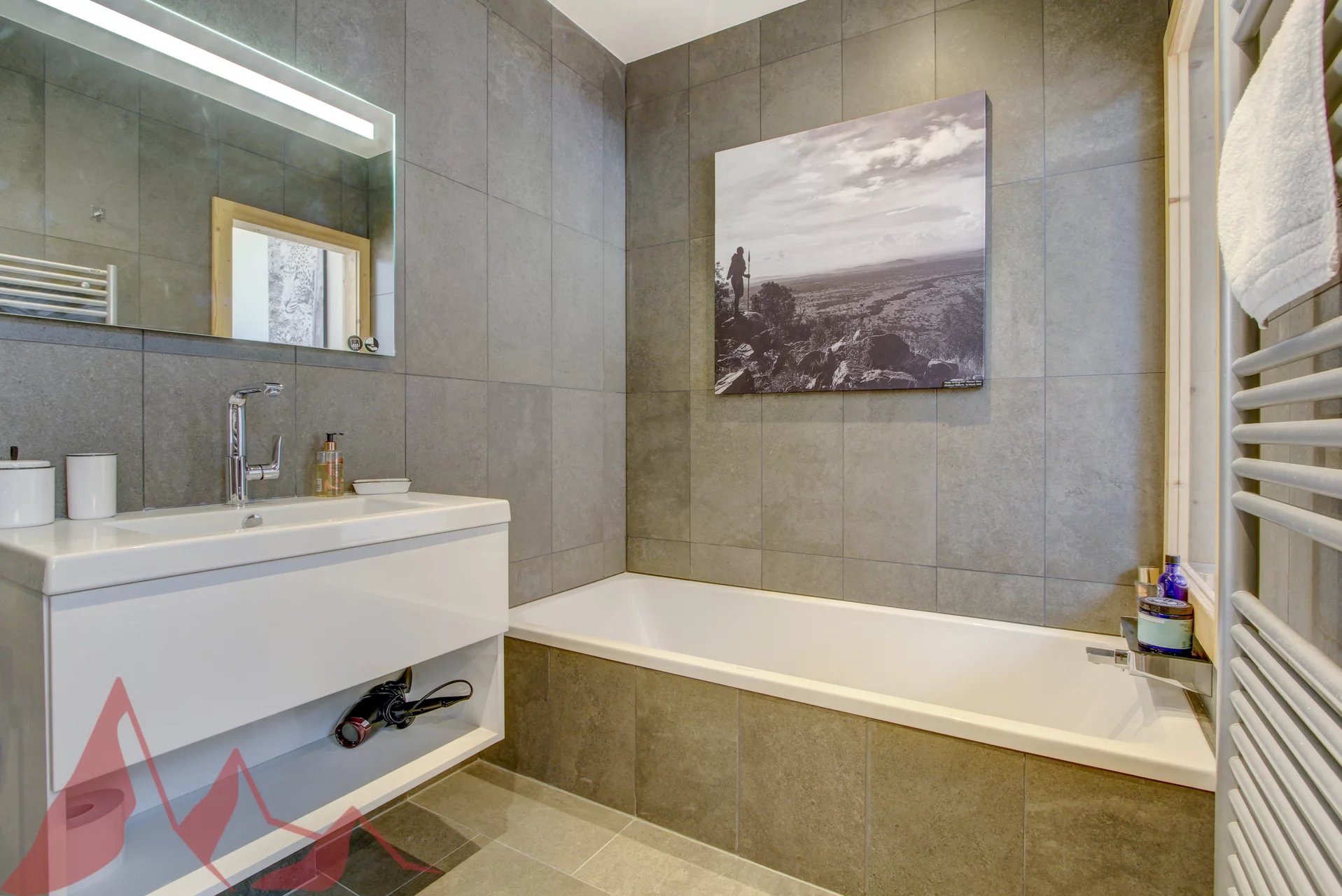 Au dernier étage, nous avons une deuxième chambre double avec salle de bain, une troisième chambre, un coin nuit ainsi qu'une grande salle de bain.