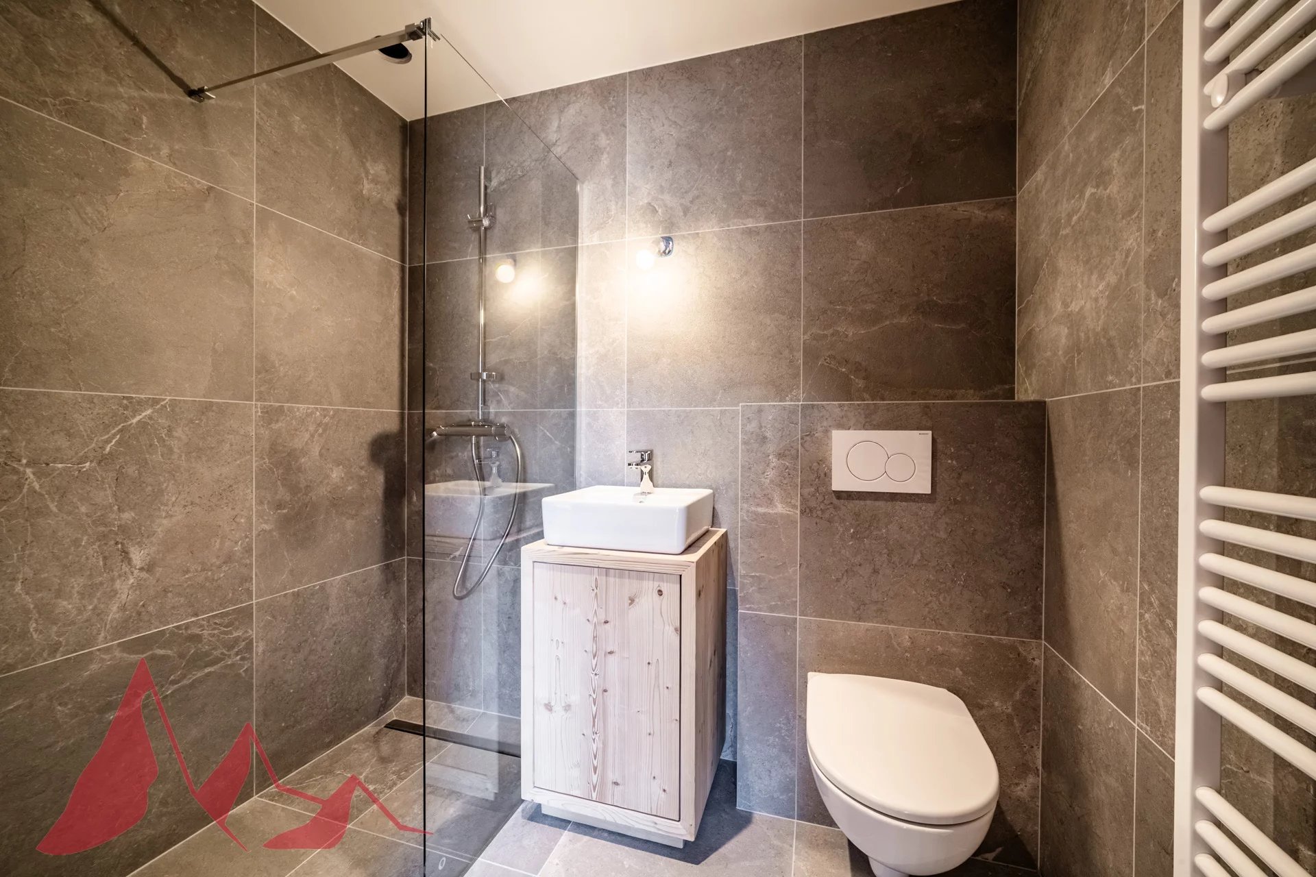 Hall d'entrée, 1 chambre double avec salle de bain attenante et une pièce utilitaire. Il y a également une entrée séparée dans une salle de ski/chaussures. Un garage fermé.