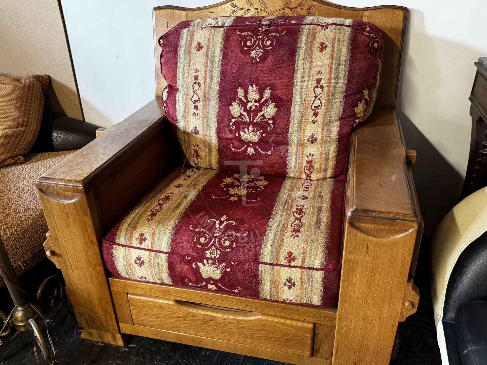 Canapé 2 places avec 2 tiroirs et fauteuil style montagne à vendre Contact : Thierry UOMOBONO - 06 09 65 63 89