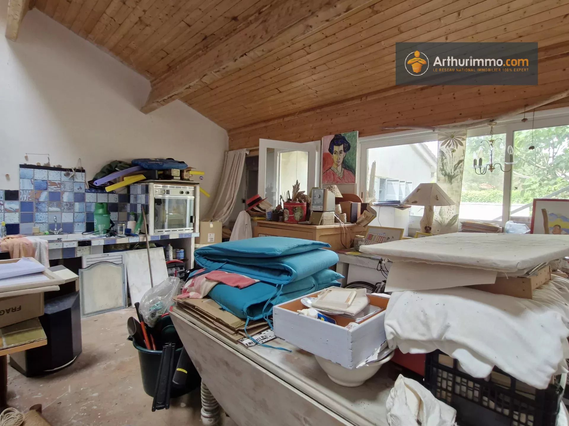 Elle est composée, en rez-de-chaussée, d'un séjour ouvert sur la cuisine, d'une salle de douche avec toilettes et d'un grand atelier.