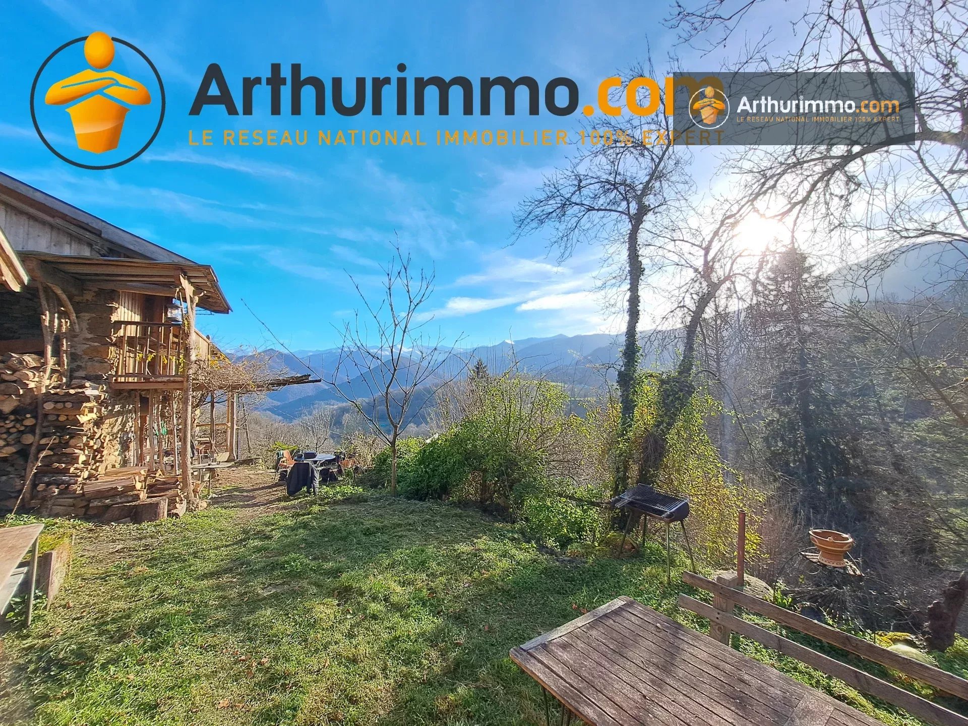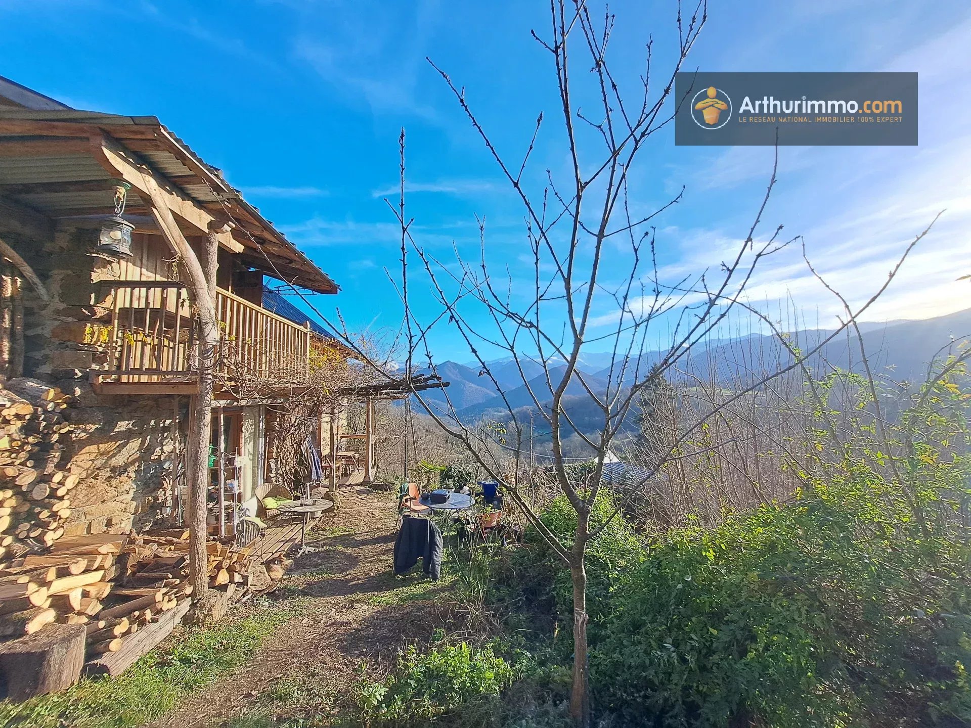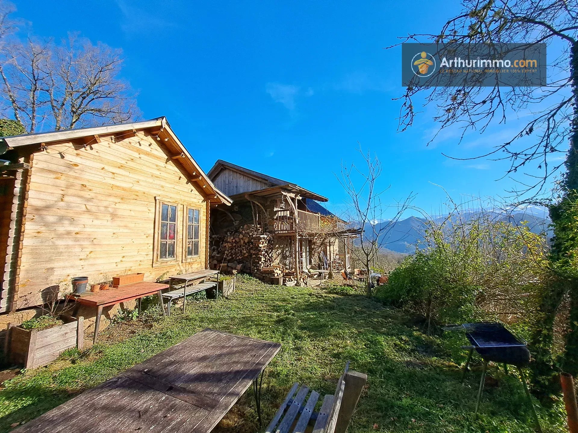 En Ariège, à 10 minutes de Seix et 30 minutes de Saint-Girons, venez découvrir cette charmante maison avec vue montagnes, 1 atelier, 1 hangar, 1 source et 1,8 hectares de terrain.