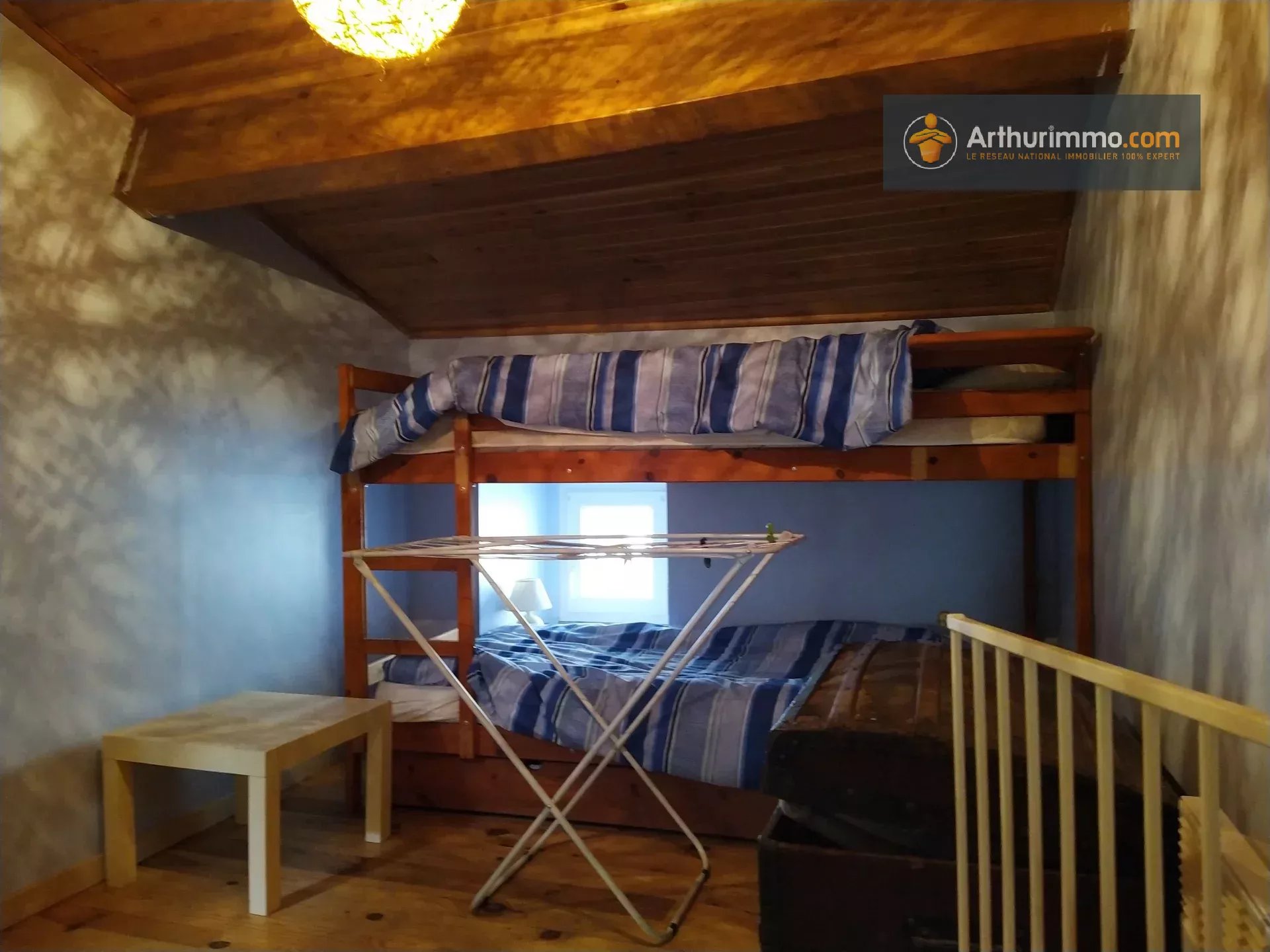 Cette maison est composée d'un grand séjour cuisine équipée avec cheminée, de 2 chambres, un bureau, salle de douche et une cave.