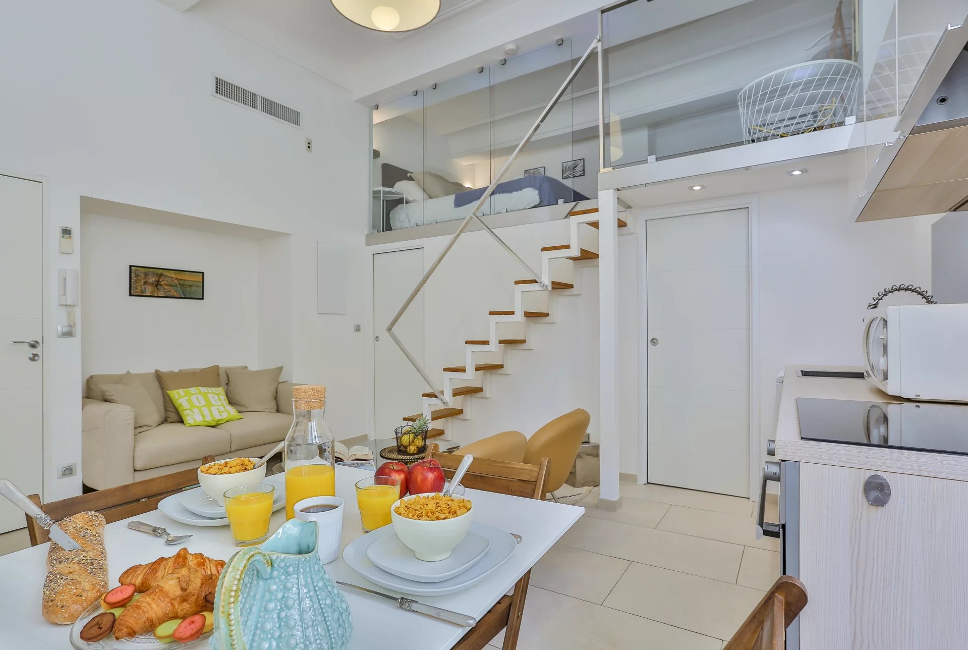 Situé au coeur de la vieille ville A 2 minutes à pied de la Promenade des Anglais, de la Place Masséna et de la plage Entièrement climatisé et rénové avec un style raffiné 1 chambre avec lit double en bas 1 autre lit double à l'étage pour 2 personnes Salle de bain avec douche et cuisine entièrement équipée Inclus gratuitement: Serviettes + Linge de lit + Gel & savon de bain + Thé + Café Vous pouvez réserver votre séjour sur notre plateforme de réservation via ce lien sécurisé: https://beds24.com/booking2.php?ownerid=33991