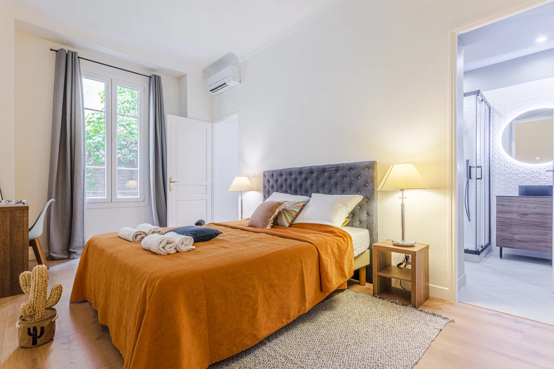 Situé au centre-ville près de la rue principale dans une rue calme Entièrement climatisé avec double vitrage 2 chambres avec lits doubles Beau salon avec canapé-lit confortable pour 2 personnes Cuisine entièrement équipée avec machine à café Nespresso Salle de bain avec douche et wc séparés Inclus gratuitement: Serviettes + Linge de lit + Gel & savon de bain + Café Vous pouvez réserver votre séjour sur notre plateforme de réservation via ce lien sécurisé: https://beds24.com/booking2.php?ownerid=33991