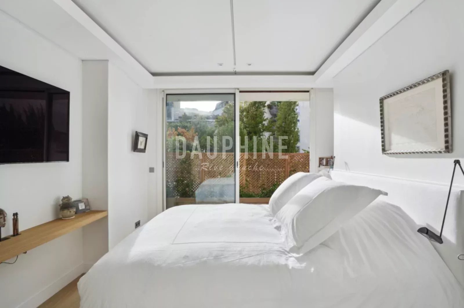 Nous vous proposons à la vente ce loft avec jardin suspendu dans le 7ème arrondissement de Paris. Dans un immeuble récent avec ascenseur et gardien, au 2ème étage, un appartement de 101,17m2 loi carrez avec un jardin suspendu de plain-pied de 110m2. L'appartement se distribue ainsi : - Une double réception avec cuisine ouverte donnant sur la terrasse. - Une suite de maître sur jardin avec une salle de bains complète. - Une seconde chambre avec salle de douches et wc. - Un wc séparé. Le bien dispose d'une cave de 5m2 en annexe. HSP : 2m70 Gardien – Climatisation réversible Parfait état, rénovation de grande qualité, calme et lumière sont les principaux atouts de ce bien rare. Exposition SUD OUEST