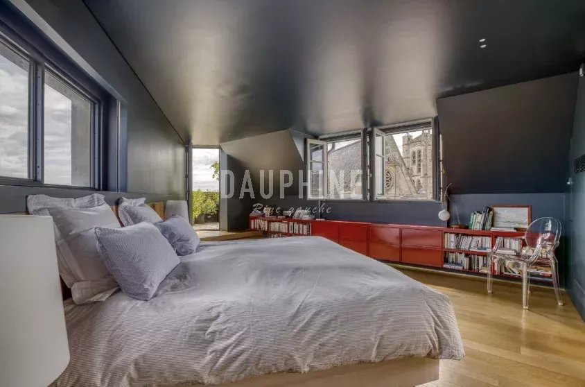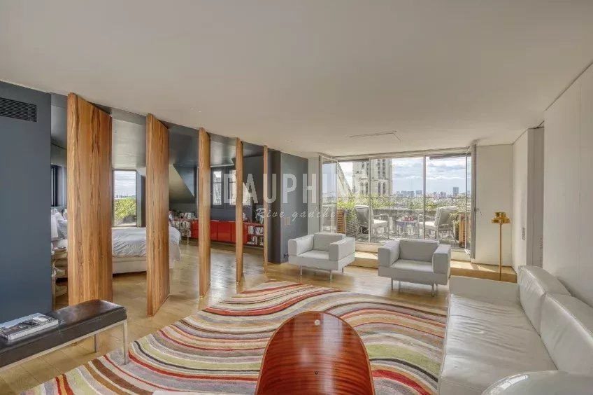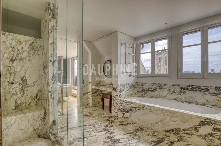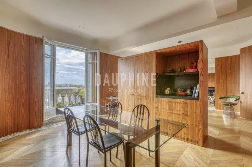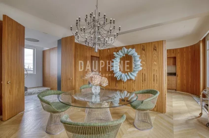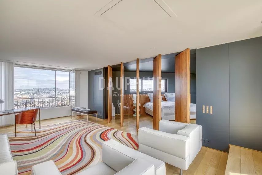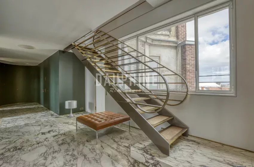 Nous vous proposons à la vente en off-market un duplex exceptionnel de 230m2 Carrez (240m2 surface pondérée et 254m2 surface totale), situé aux derniers étages par ascenseur d'un immeuble de 1927.