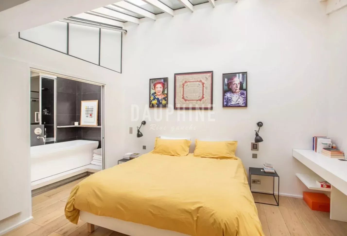 Au deuxième niveau auquel on accède par un bel escalier en métal et bois qui dessert : une suite parentale de 26 m2 avec accès à la salle de bains, douche et hammam, une deuxième chambre d’environ 15 m2 avec sa salle d’eau, des toilettes séparées, un grand dressing.