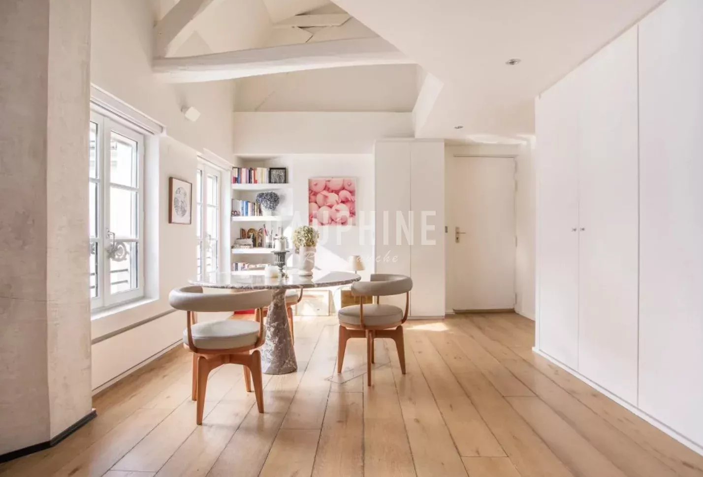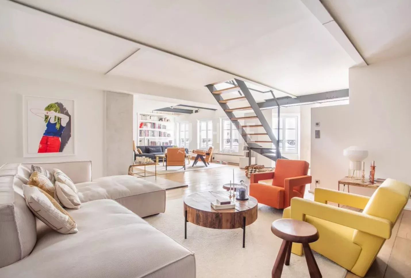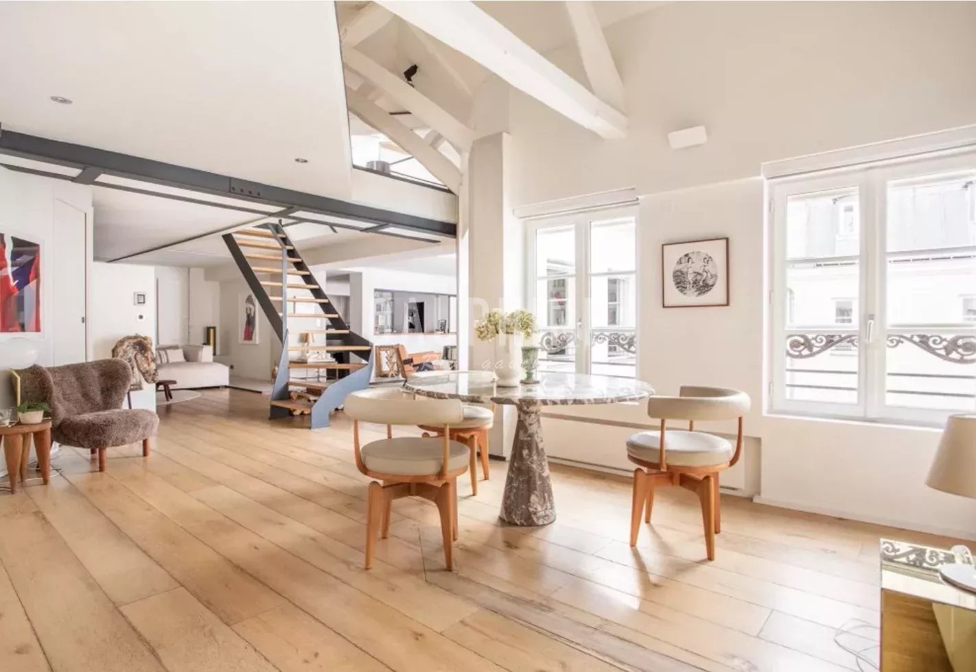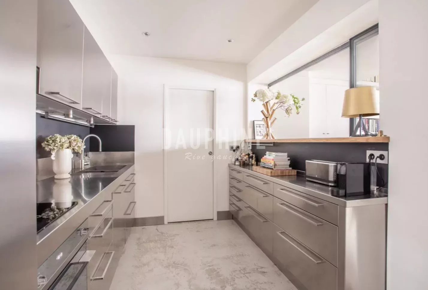 Il mesure 153,51 m2 Carrez et 168,59 m2 au sol. L’appartement a été rénové avec des matériaux contemporains (menuiserie métallique, inox, bois etc), il est également équipé de domotique (stores électriques, climatisation, alarme) et bénéficie de 6 fenêtres en enfilade.