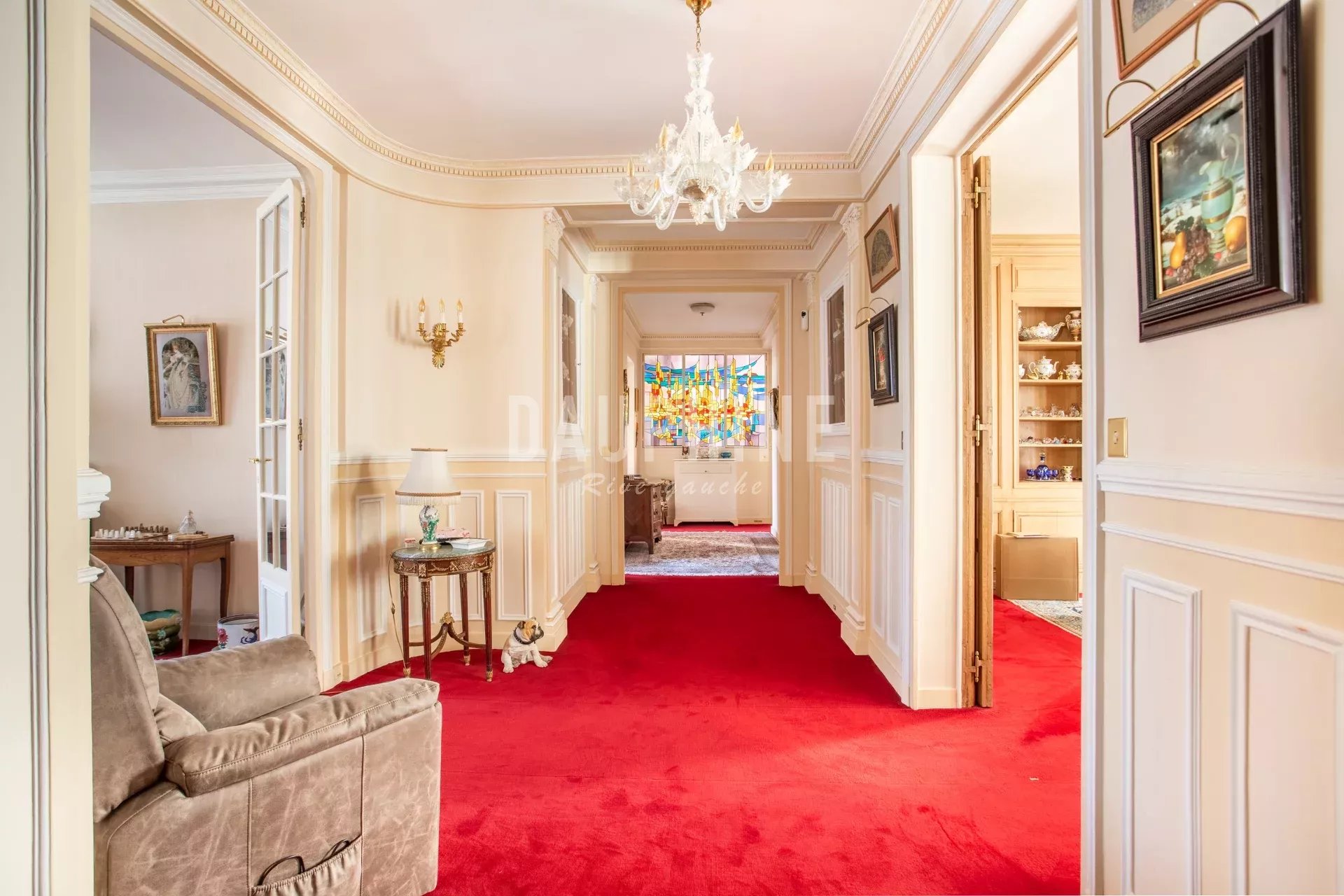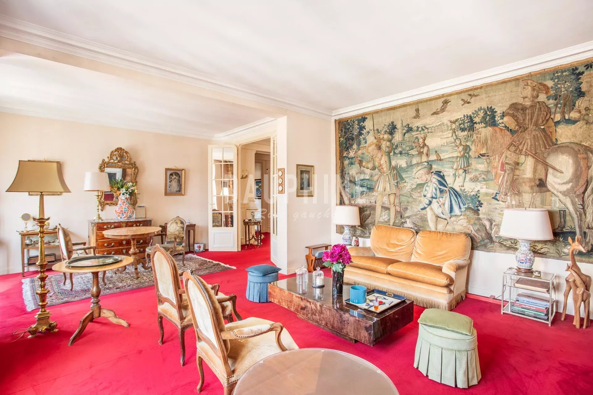 Situé au 4ᵉ étage avec ascenseur d’un magnifique immeuble en pierre de taille, cet appartement familial offre de beaux volumes et une belle luminosité de par sa grande hauteur sous plafond. Il se compose d’une galerie d’entrée, d’un double séjour, d’une salle à manger, de quatre chambres, de trois salles de bains, d’une cuisine séparée. Vous apprécierez ses vues dégagées, sa distribution fluide et son caractère historique. Le bien dispose d'une cave en annexe.