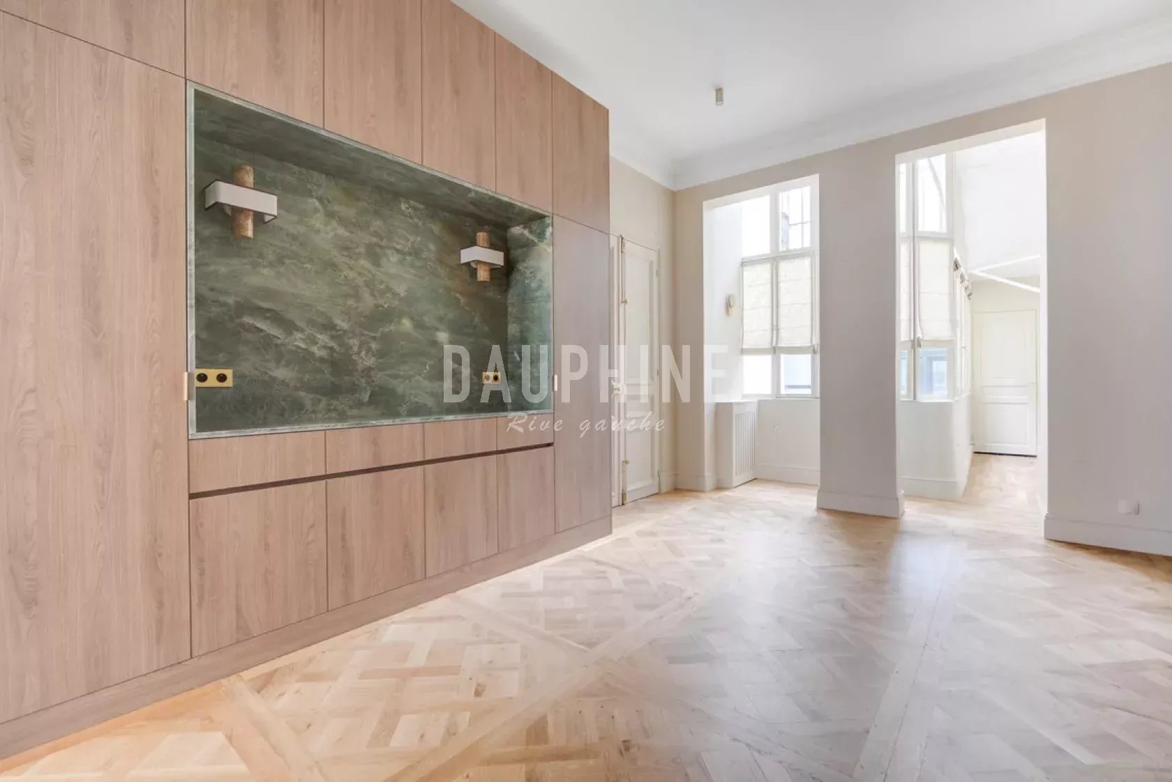 RUE DES SAINTS-PÈRES - À QUELQUES PAS DU BOULEVARD SAINT-GERMAIN Seul sur le palier, au deuxième étage d'un bel immeuble ancien équipé d'un ascenseur, un magnifique appartement de 148 m² entièrement rénové en 2025 avec des matériaux haut de gamme. Ce bien comprend une entrée, une cuisine ouverte et équipée, un magnifique séjour avec une hauteur sous plafond de 3,70 m, deux suites climatisées avec pour chacune sa propre salle de bains équipée de wc et de nombreux rangements. Une buanderie, ainsi que des wc invités complètent cet espace. Appartement clé en main, bénéficiant de prestations haut de gamme, de beaux volumes, avec du parquet Versaillais, du double vitrage et une très belle luminosité.