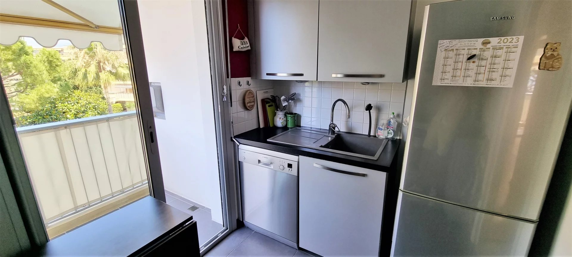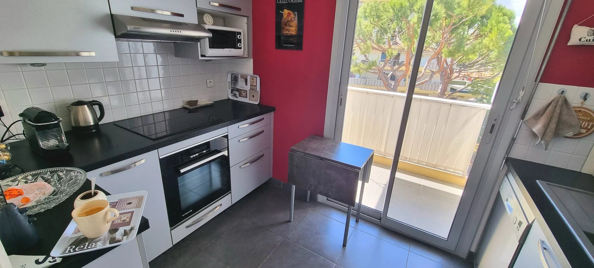 Cuisine indépendante entièrement équipée, avec accès à une petite terrasse exposée ouest.
