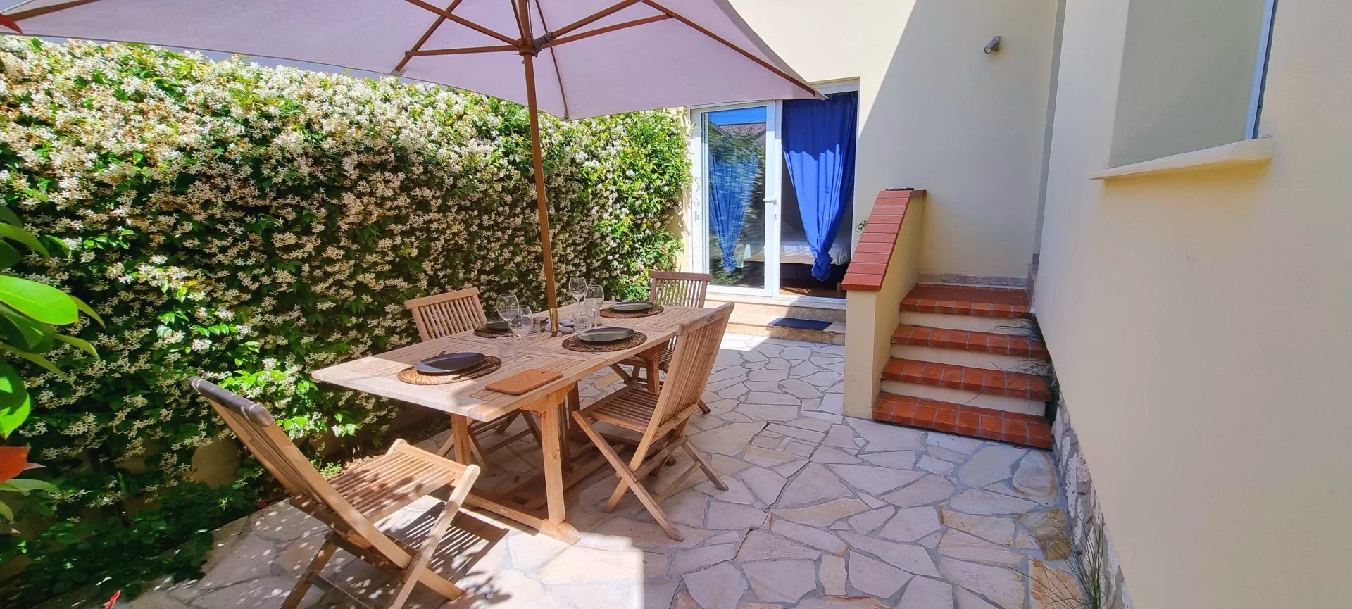 À seulement 150 mètres de la mer, cette charmante maison climatisée offre tout le confort moderne dans un cadre calme et privé.