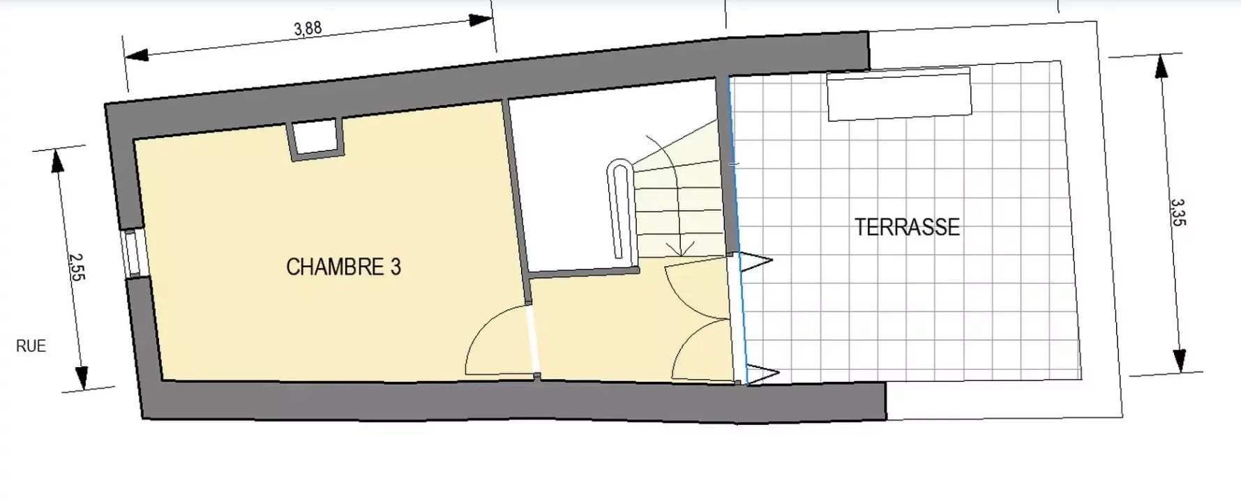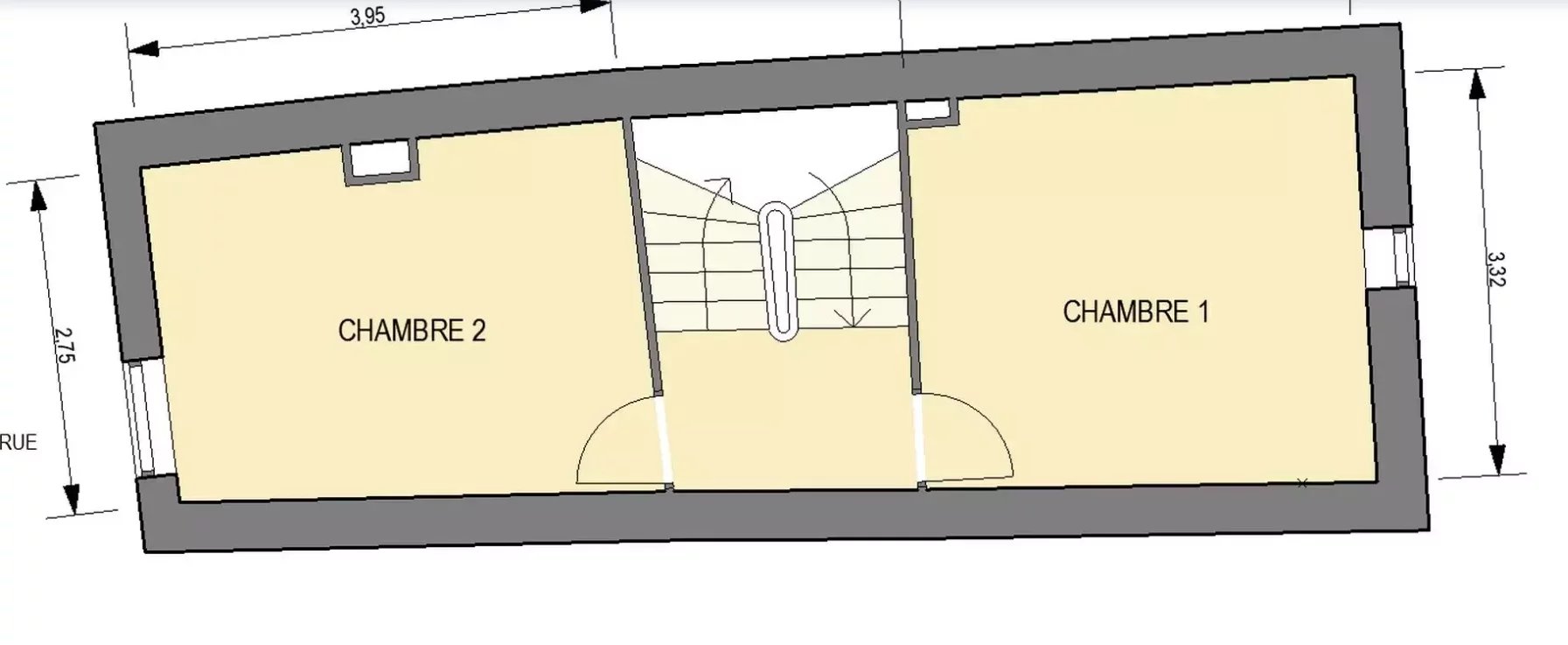 L'escalier mène à l'étage suivant, où se trouvent deux chambres confortables et de bonne taille, parfaites pour la famille et pour les invités.