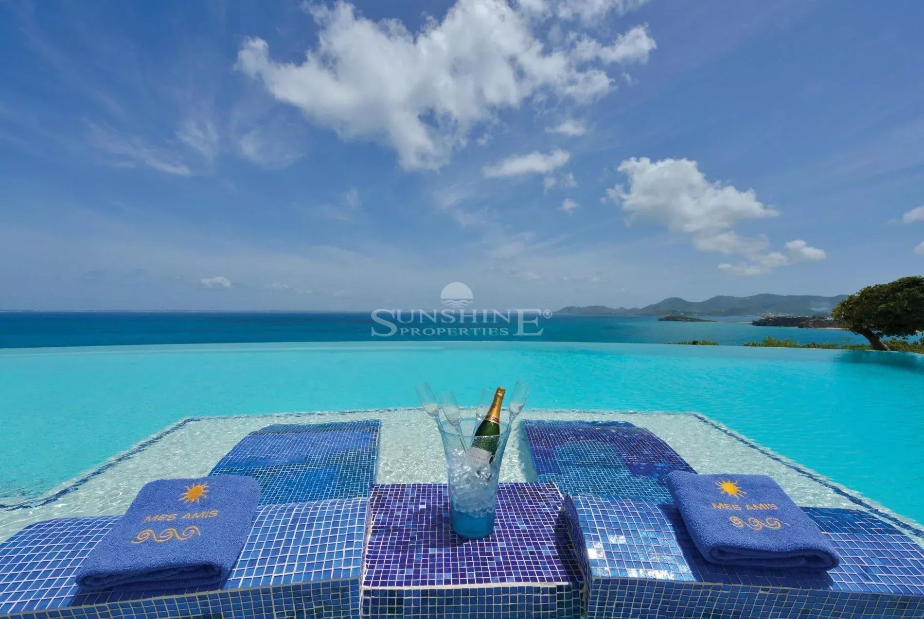 Situé sur le côté Français d’Île Saint-Martin. Appelé « Mes Amis ». Cette exclusive villa de 7 chambres qui inclut des vues spectaculaires et entoure de luxes ce qui vous donne une opportunité parfaite pour une vacance en famille nombreuse une réception de mariage ou des retraites d’entreprise. Mes Amis sont localisés à cote de tous les services principaux d’île (15 minutes de l’aéroport, du shopping et des restaurants) par contre vous pouvez profiter de cette inévitable tranquillité, totalement privée et pas de vis à vie. De ces sites très couverts perchés 150 ft au-dessus du Caribe sur une falaise nommée « la falaise des Oiseaux » dans la résidence exclusive à Terres Basses. Mes Amis offre un paysage sublime de l’océan, le littoral verdoyant et à côté de l’ile voisine Anguilla. De plus, allons sur un sujet global, mais agréable ; Mes Amis est l’ultime retrait luxueux. Mes Amis est située très haut sur la falaise des Oiseaux. Dans un lieu enfermé et sécurise enclave de Terres Basses, Saint Maarten, Mes Amis à un incroyable 10+1 chambre sur un domaine protéger de 5 acres.