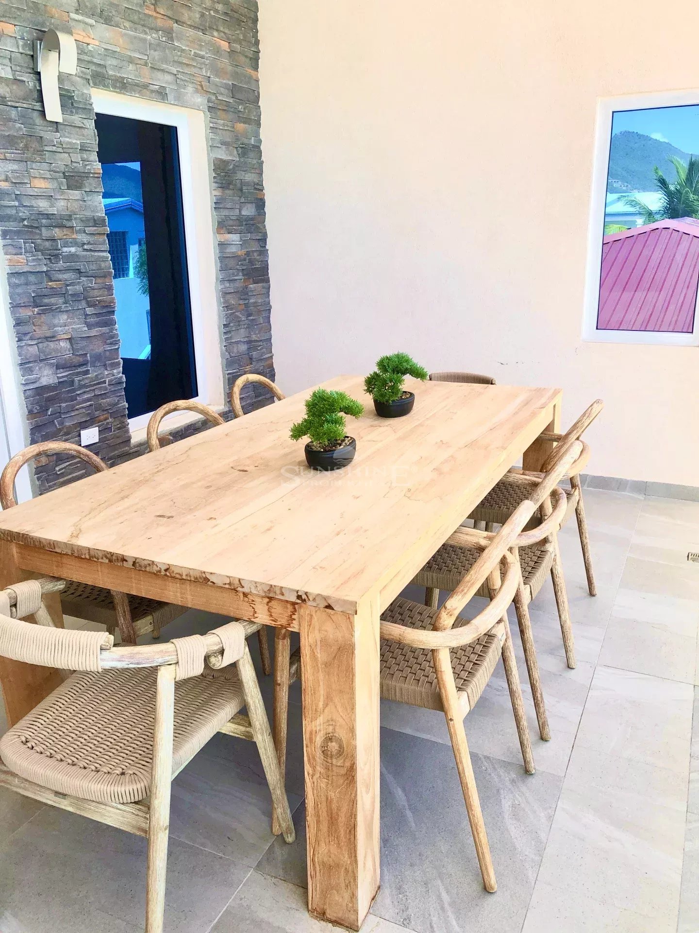 Son plan d’étage unique offre beaucoup d’intimité, que vous soyez en lune de miel ou en voyage avec des amis et la famille. Dès que vous entrez dans le hall d’entrée où vous trouverez les trois chambres et l’espace de vie principal comprenant une cuisine, une salle à manger et une terrasse privée surplombant la belle plage de Simpson Bay.