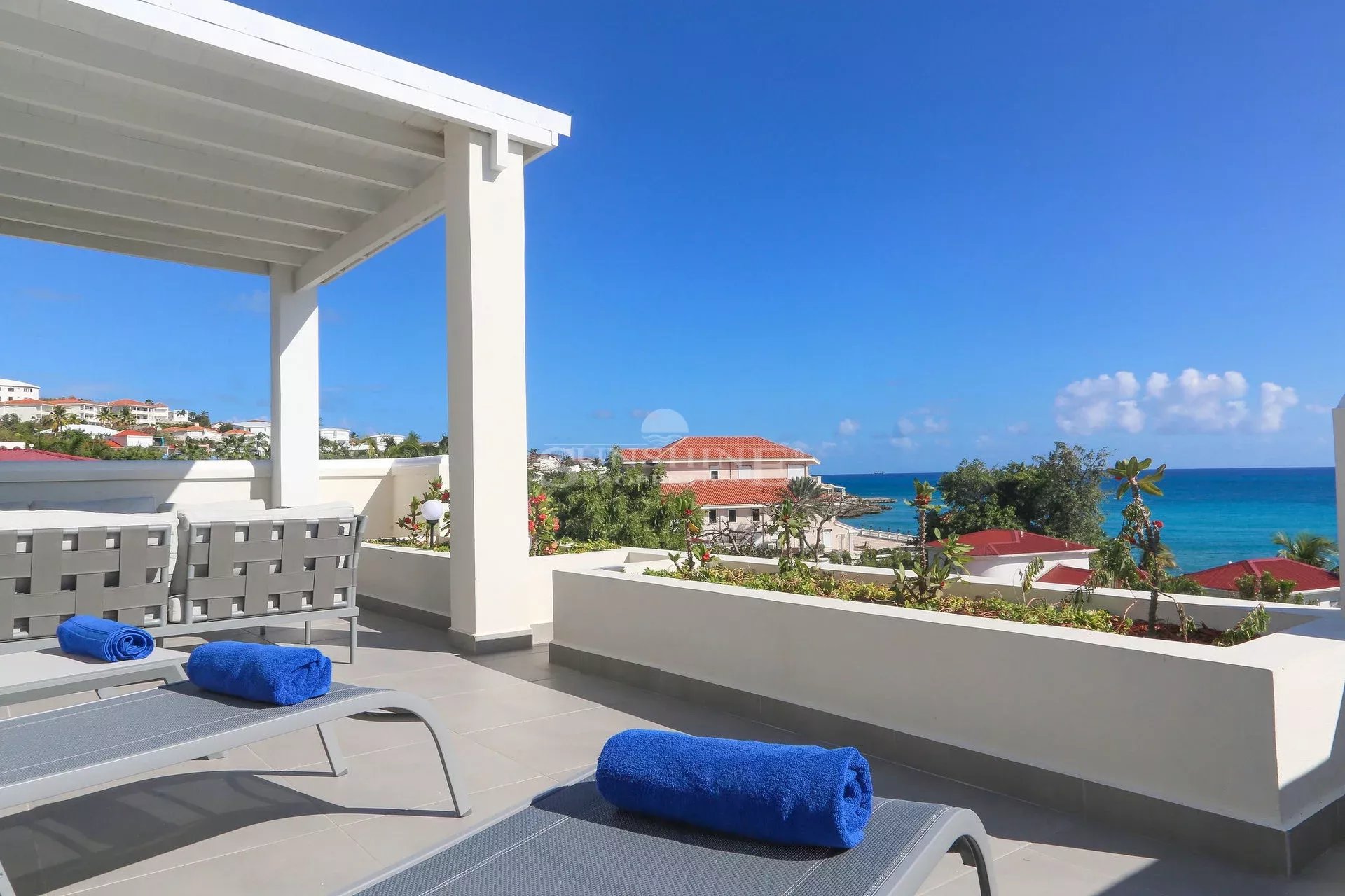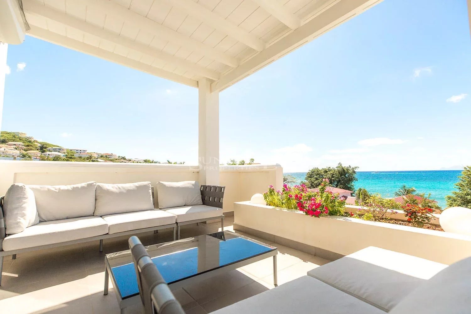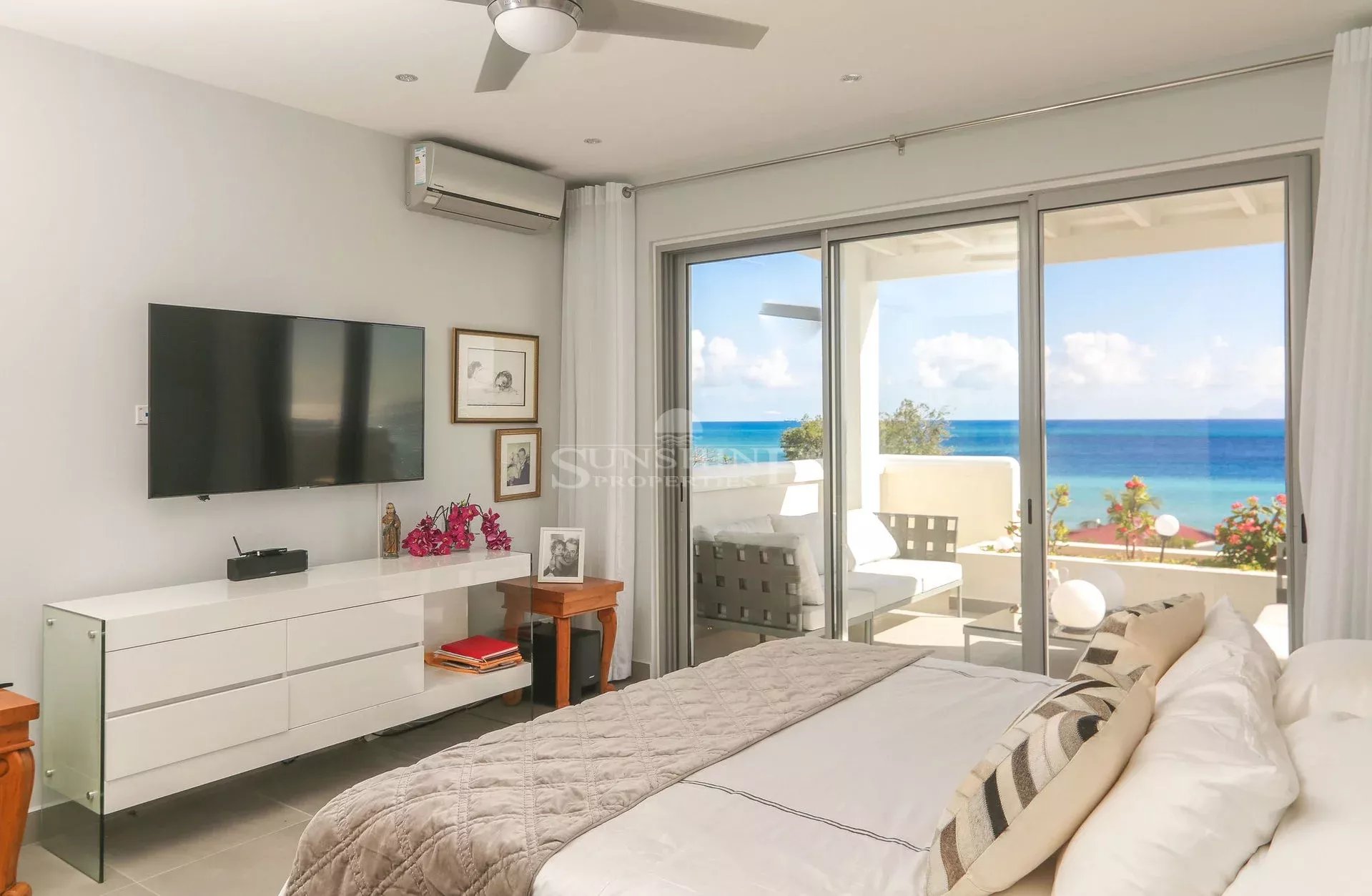 La villa se compose de trois suites parentales, sur deux niveaux, toutes avec de grandes terrasses partiellement couvertes, parfaites pour prendre le petit-déjeuner à l'extérieur ou simplement se détendre avec une vue imprenable sur l'océan, tandis que les bateaux et les yachts passent juste devant vous. Le salon offre à la fois des espaces repas intérieurs et extérieurs.