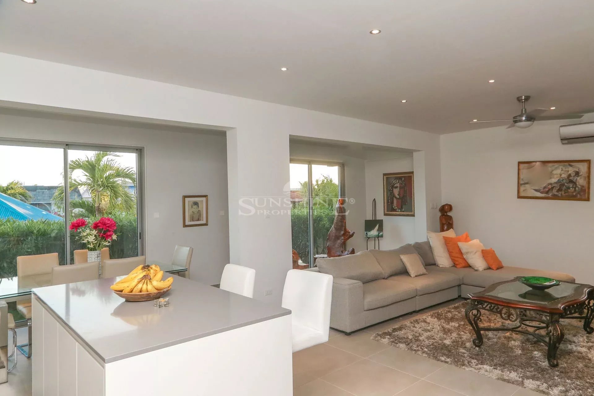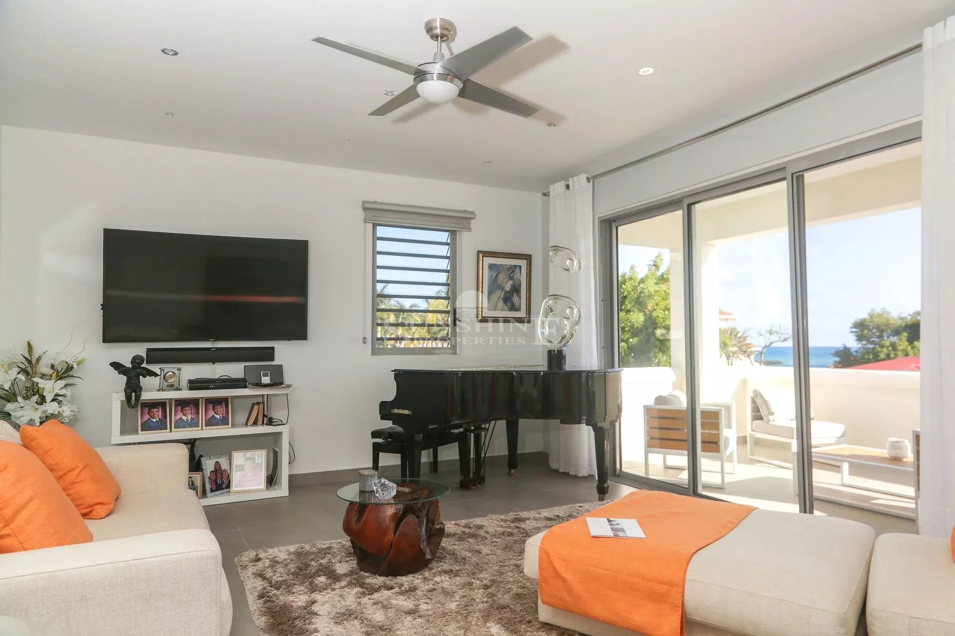 Elle est équipée de volets anti-ouragan sécurisés et est entièrement climatisée. La villa dispose également de portails automatisés avec une allée menant à un garage pour deux voitures. Un chemin privé descend jusqu'à l'océan à environ 250 mètres. La plage de sable est accessible en cinq minutes à pied.