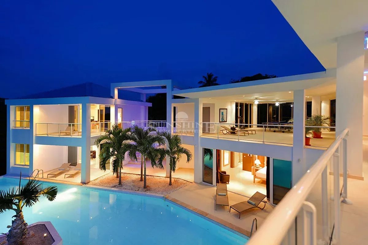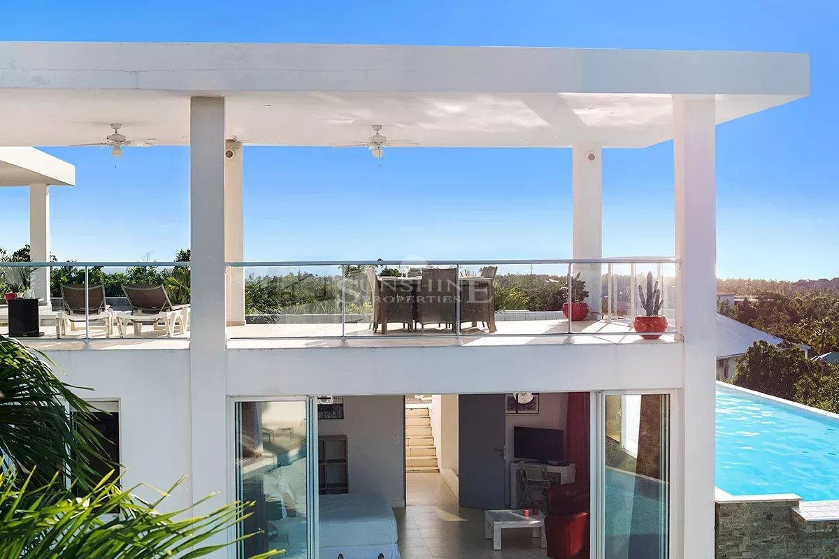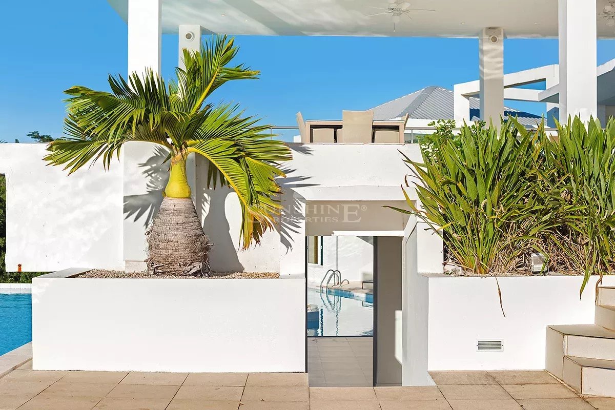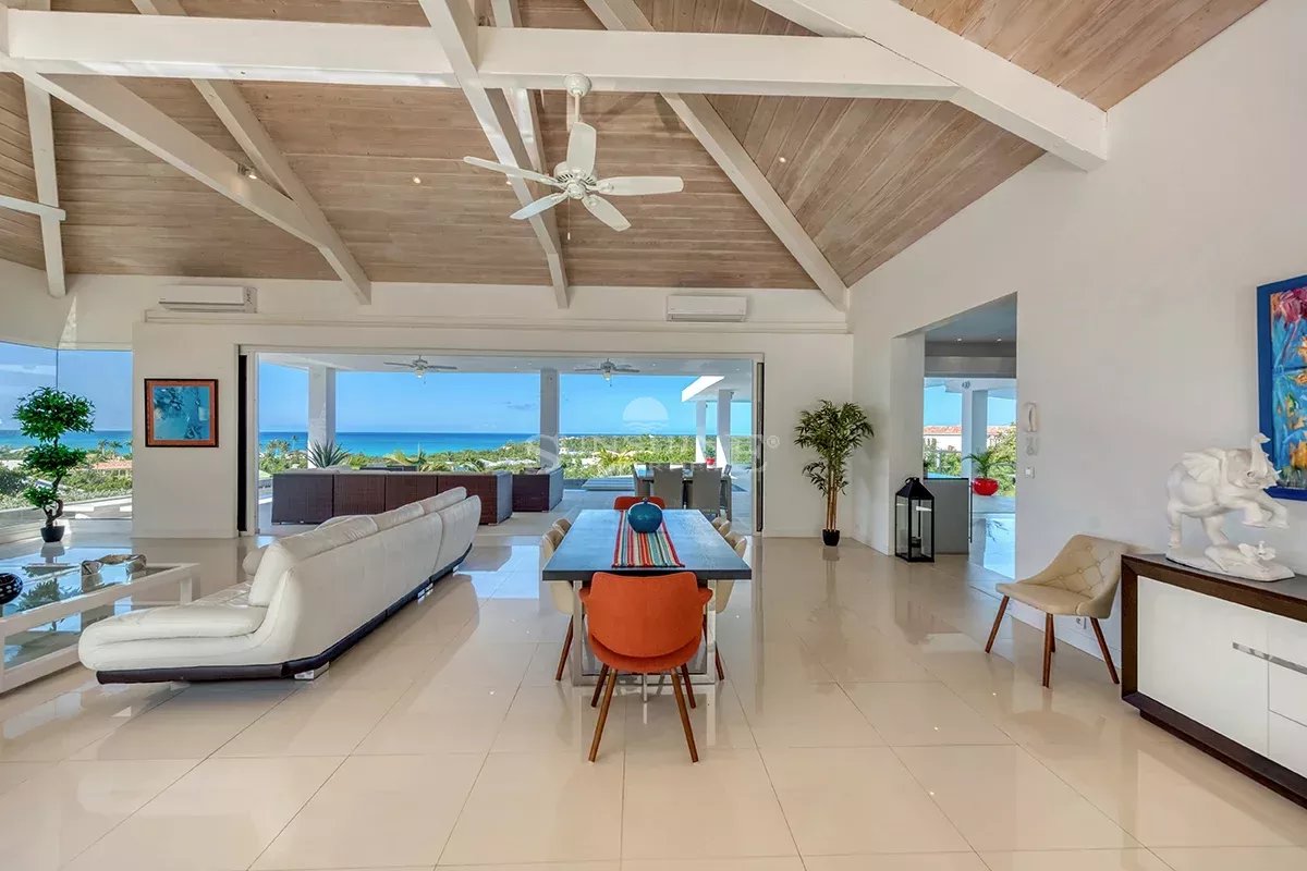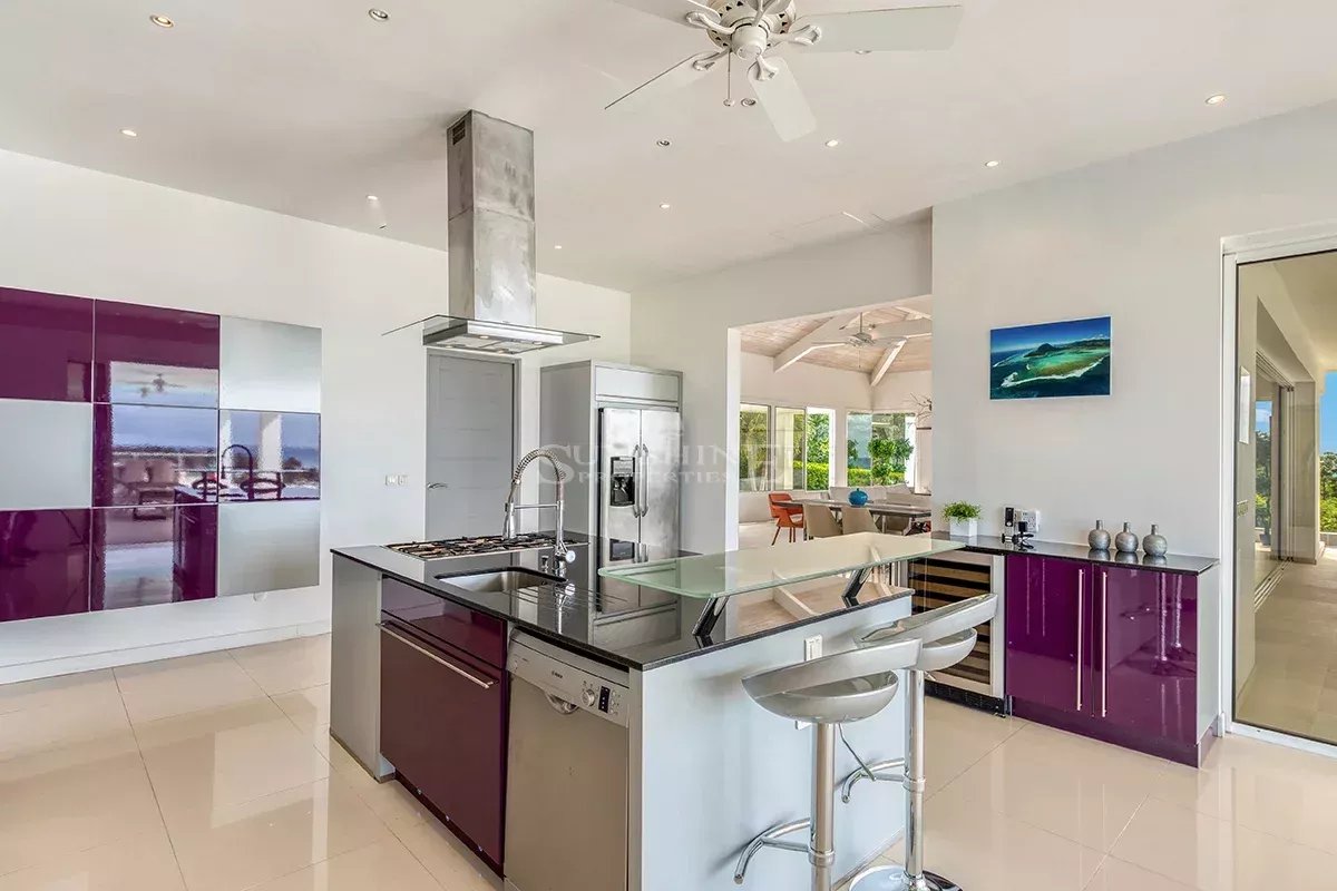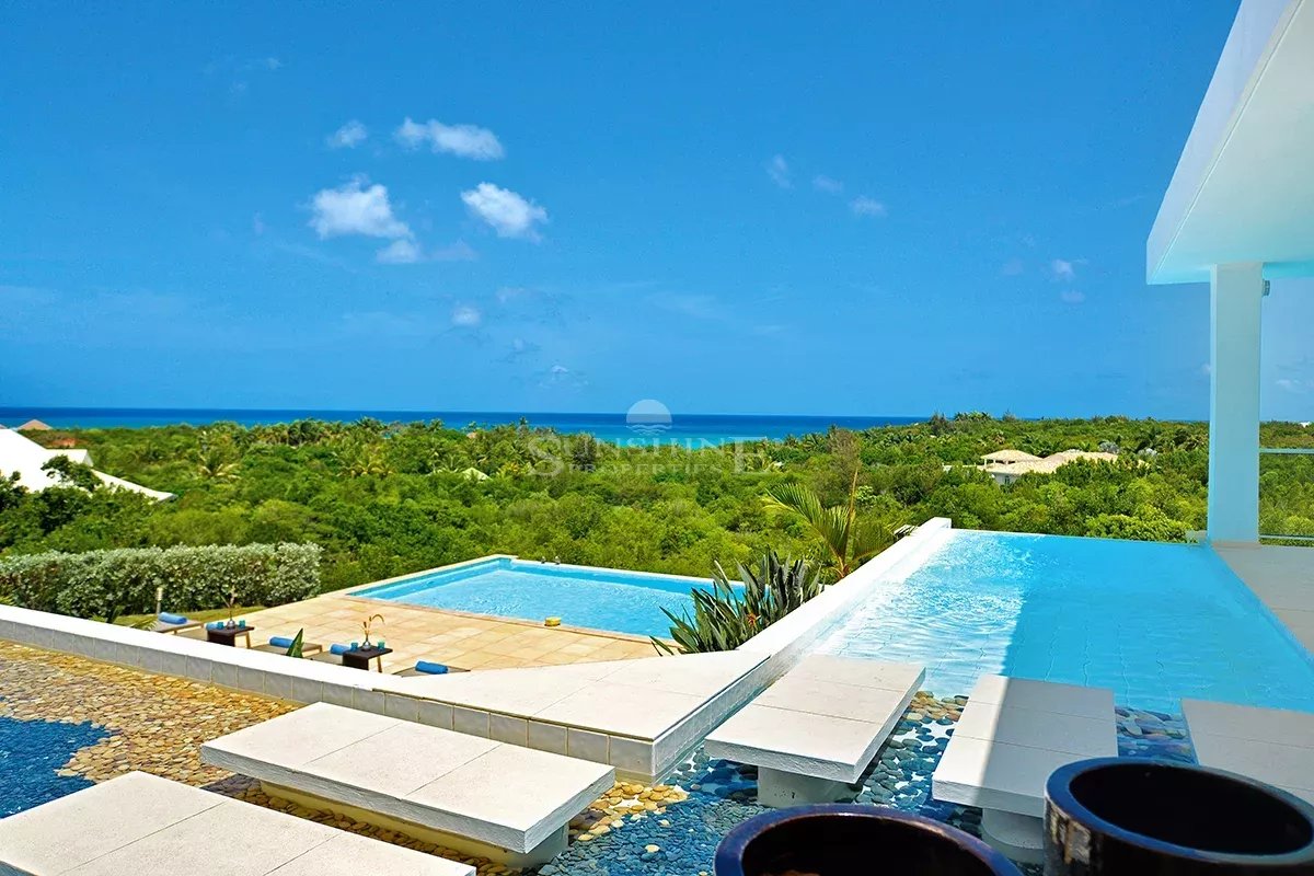 Le Grand Bleu présente une architecture moderne sophistiquée orientée à l'ouest pour offrir des vues spectaculaires. Le Grand Bleu dispose de deux piscines séparées : l'une sur la terrasse inférieure et l'autre au-dessus, toutes deux offrant des vues spectaculaires sur la mer et les îles. L'espace de vie principal offre un design à concept ouvert, avec des plafonds hauts et des caractéristiques luxueuses. La cuisine est ultramoderne et entièrement équipée. Le Grand Bleu se trouve à seulement quelques minutes à pied des plages de sable de Baie aux Prunes et de Baie Longue. Des villes animées telles que Marigot et Maho sont accessibles en 15 minutes de route.