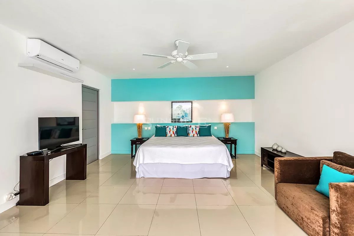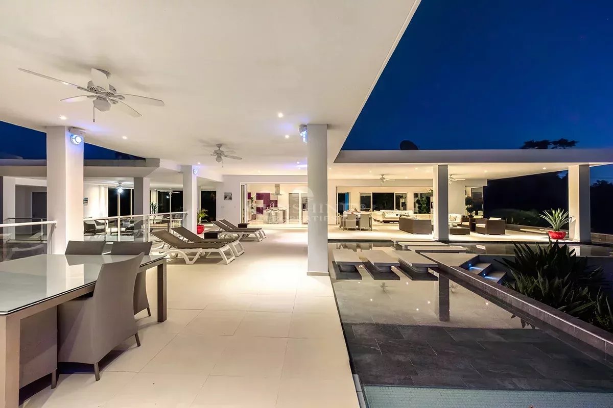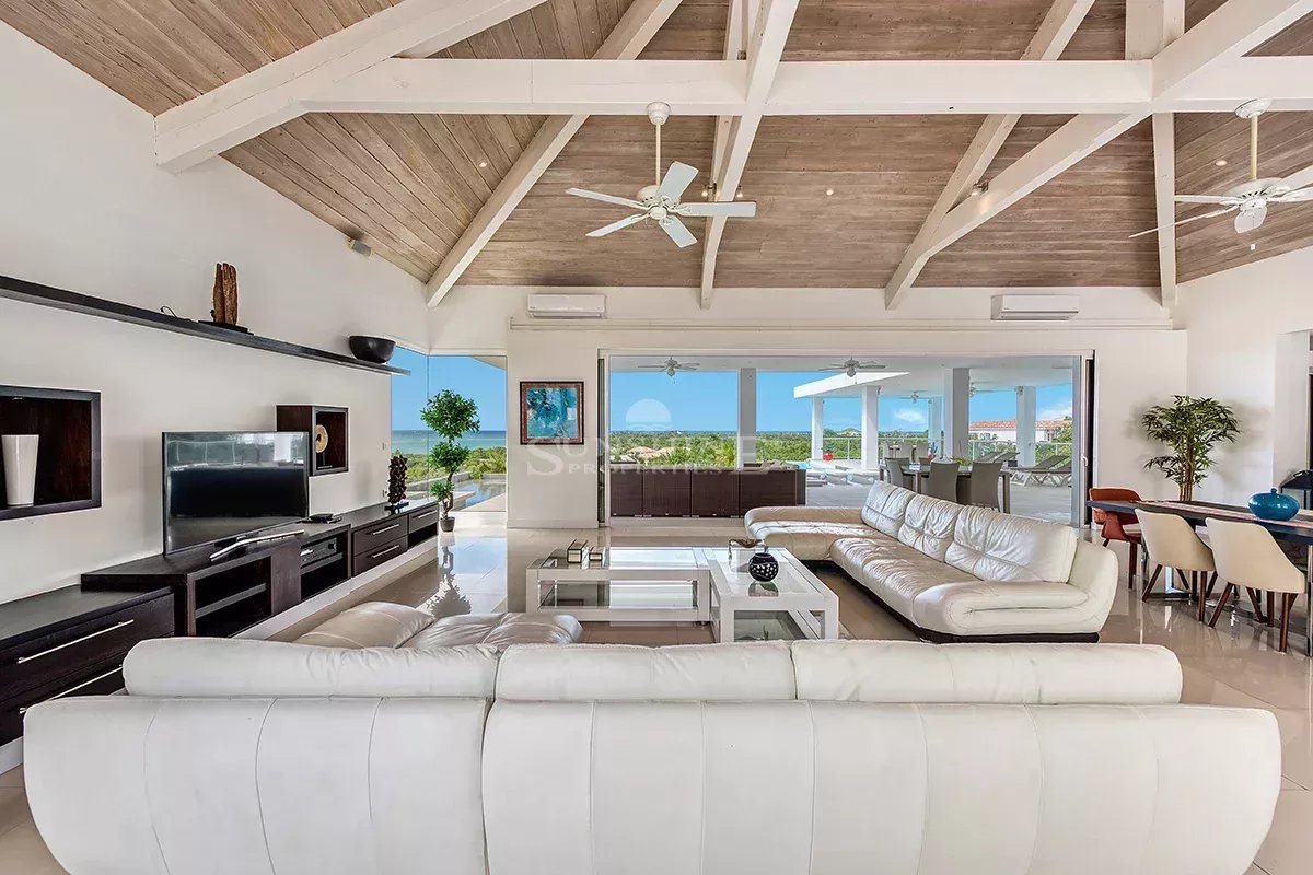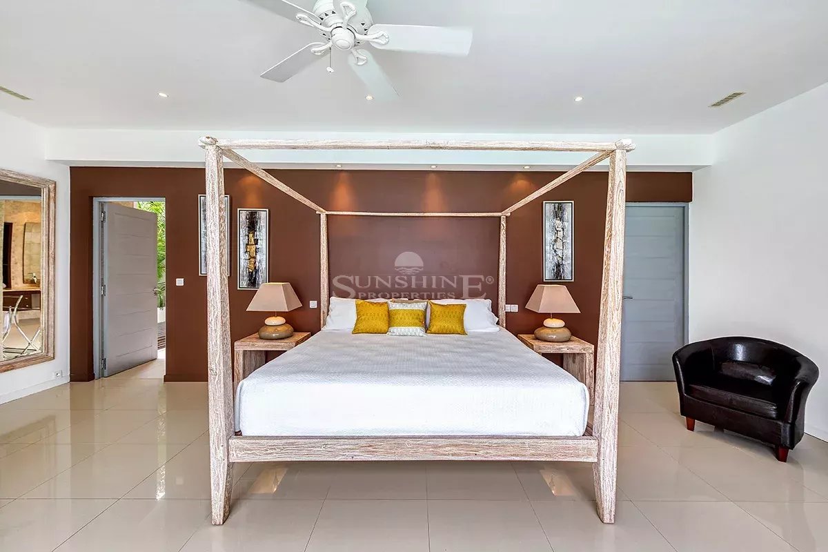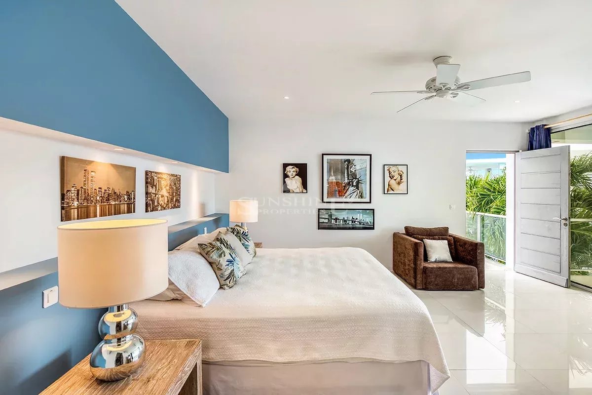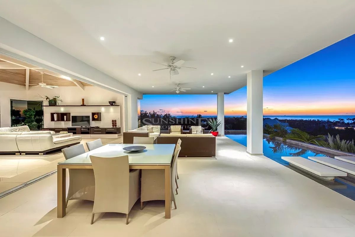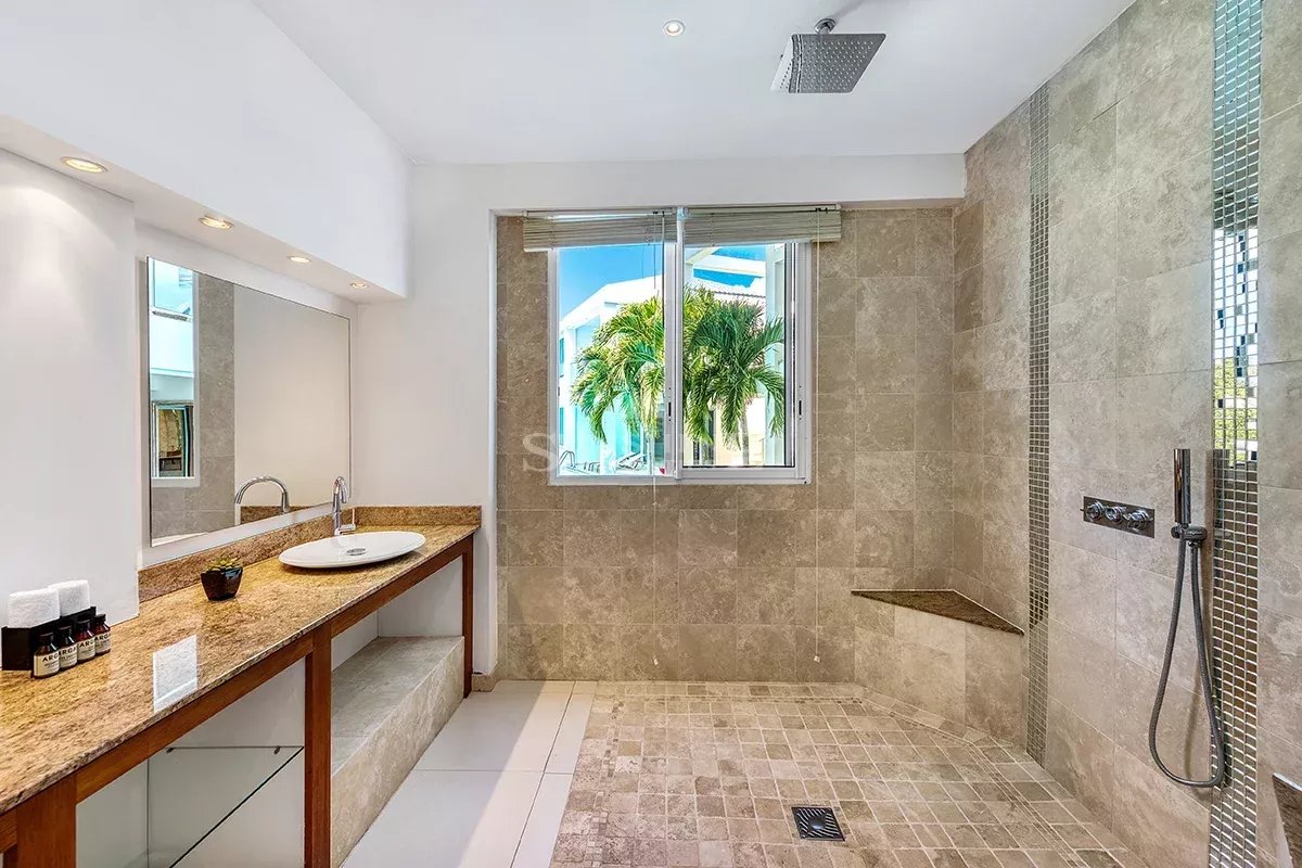 Le Grand Bleu présente une architecture moderne sophistiquée orientée à l'ouest pour offrir des vues spectaculaires. Le Grand Bleu dispose de deux piscines séparées : l'une sur la terrasse inférieure et l'autre au-dessus, toutes deux offrant des vues spectaculaires sur la mer et les îles. L'espace de vie principal offre un design à concept ouvert, avec des plafonds hauts et des caractéristiques luxueuses. La cuisine est ultramoderne et entièrement équipée. Le Grand Bleu se trouve à seulement quelques minutes à pied des plages de sable de Baie aux Prunes et de Baie Longue. Des villes animées telles que Marigot et Maho sont accessibles en 15 minutes de route.