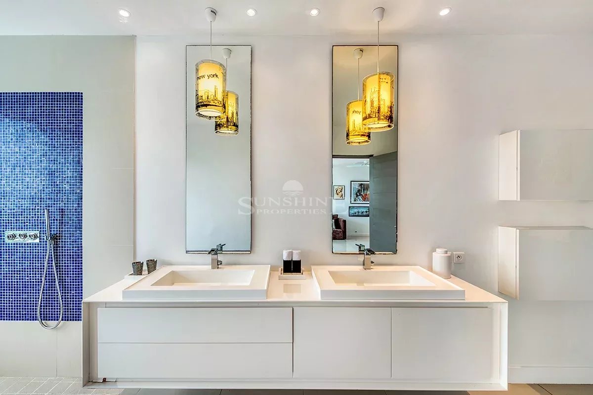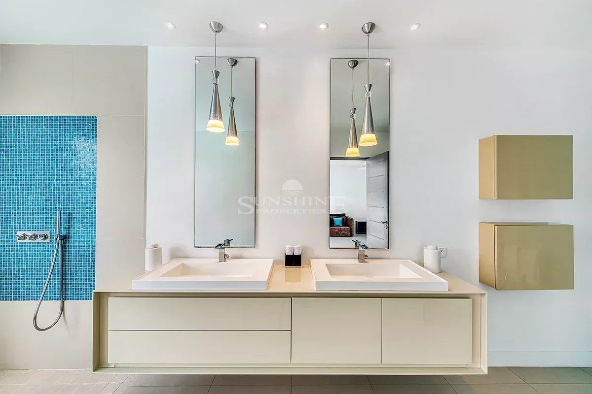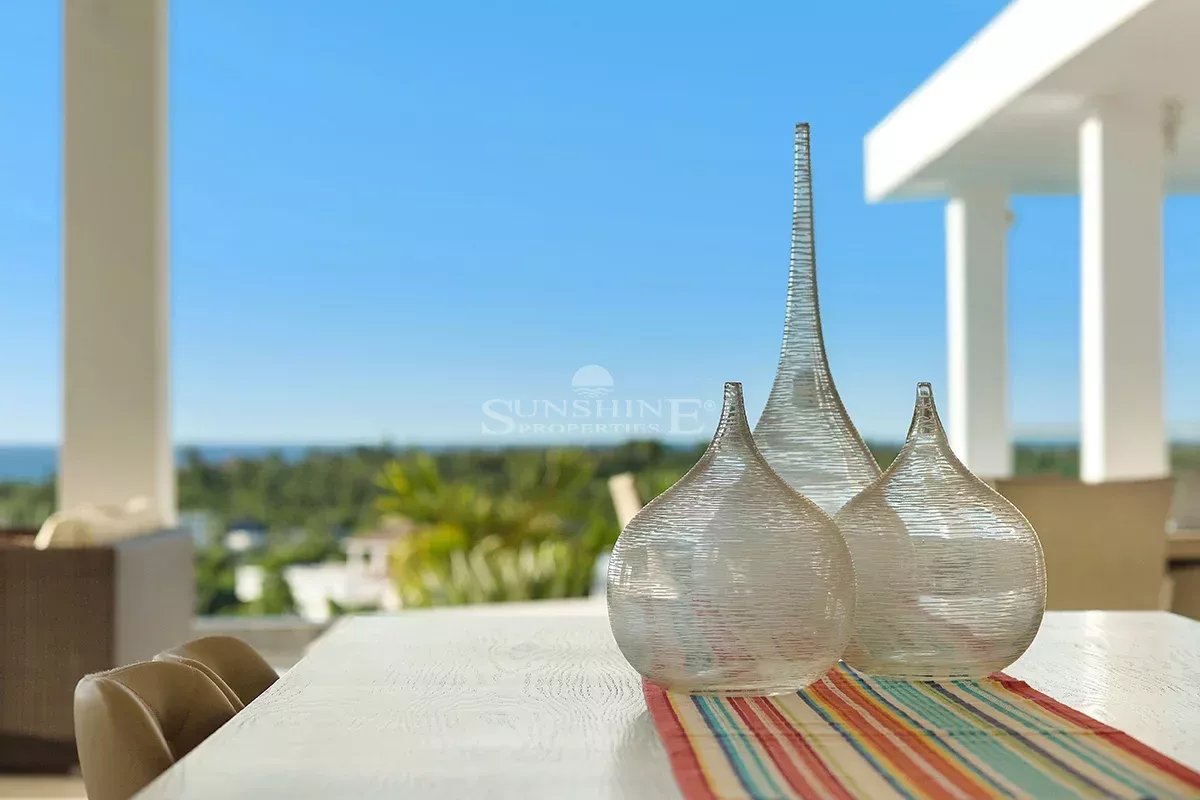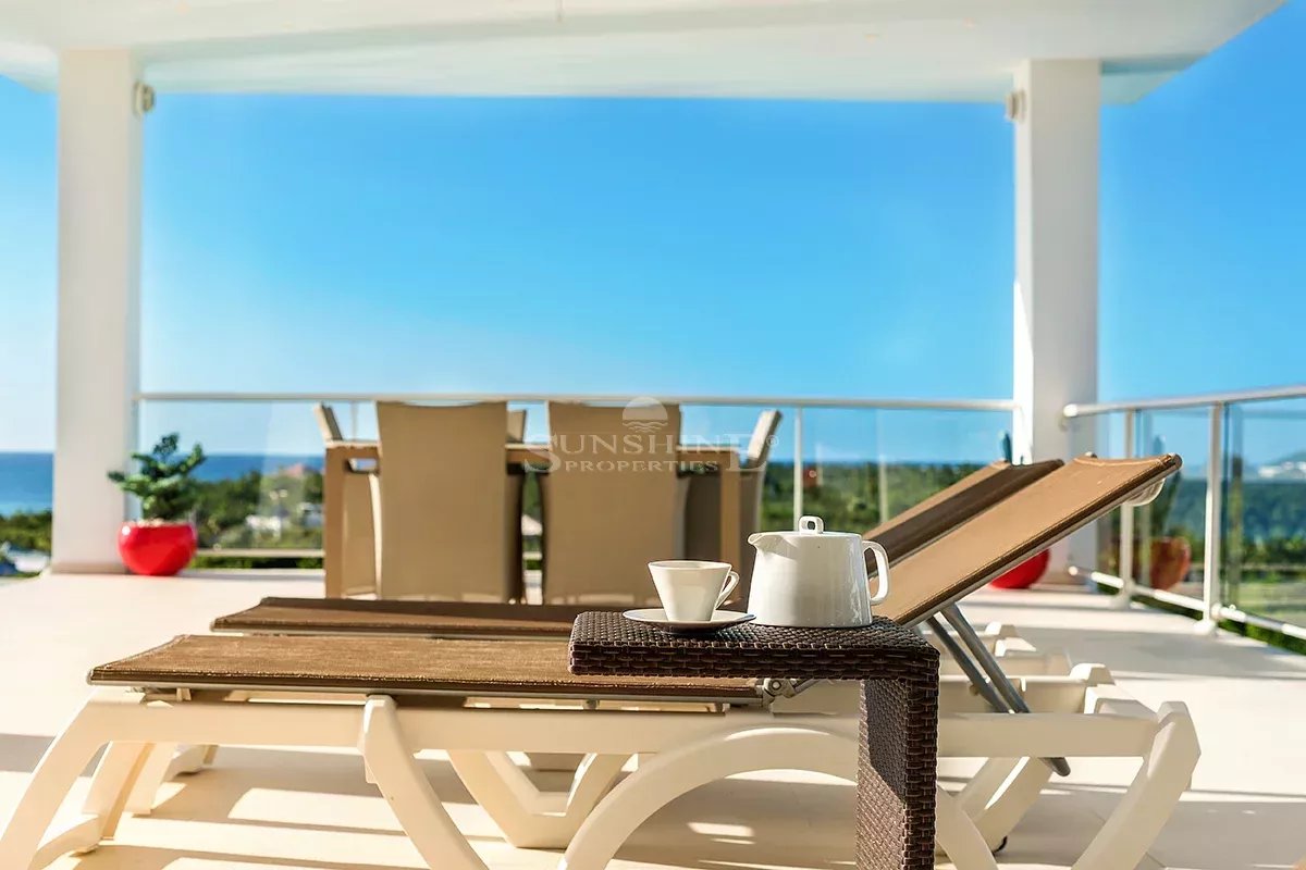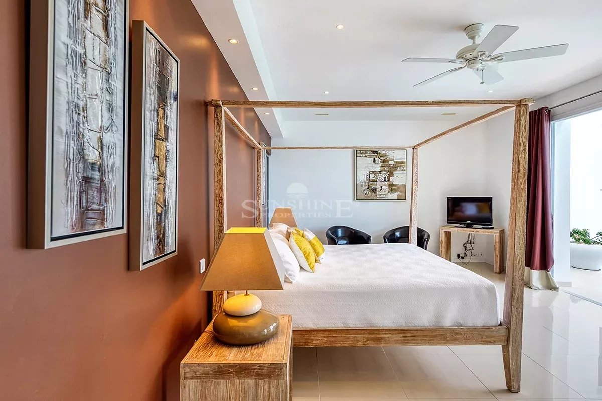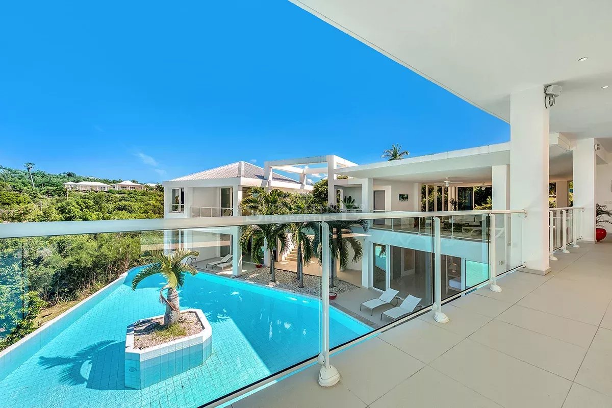 Le Grand Bleu présente une architecture moderne sophistiquée orientée à l'ouest pour offrir des vues spectaculaires. Le Grand Bleu dispose de deux piscines séparées : l'une sur la terrasse inférieure et l'autre au-dessus, toutes deux offrant des vues spectaculaires sur la mer et les îles. L'espace de vie principal offre un design à concept ouvert, avec des plafonds hauts et des caractéristiques luxueuses. La cuisine est ultramoderne et entièrement équipée. Le Grand Bleu se trouve à seulement quelques minutes à pied des plages de sable de Baie aux Prunes et de Baie Longue. Des villes animées telles que Marigot et Maho sont accessibles en 15 minutes de route.