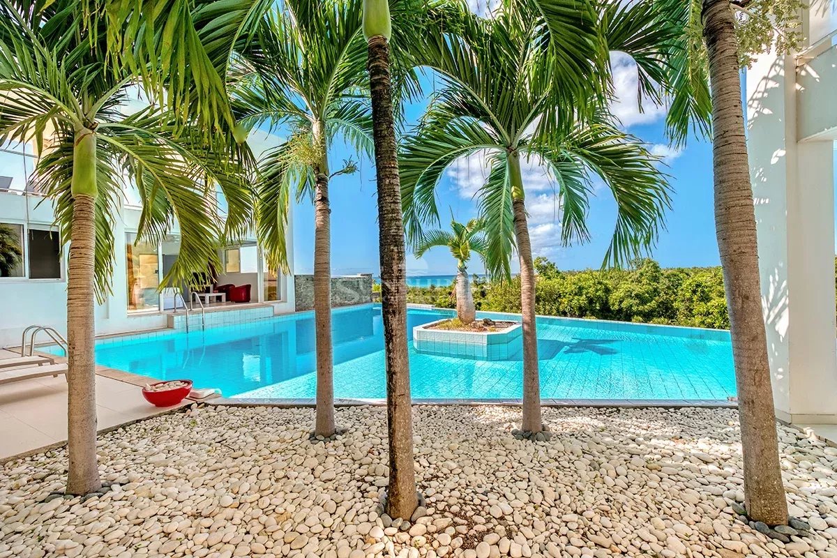 Le Grand Bleu est un domaine ultra-moderne niché au sommet d'une colline à Terres Basses. Le Grand Bleu a été construit pour maximiser les vues sur l'océan depuis chaque chambre de la villa.