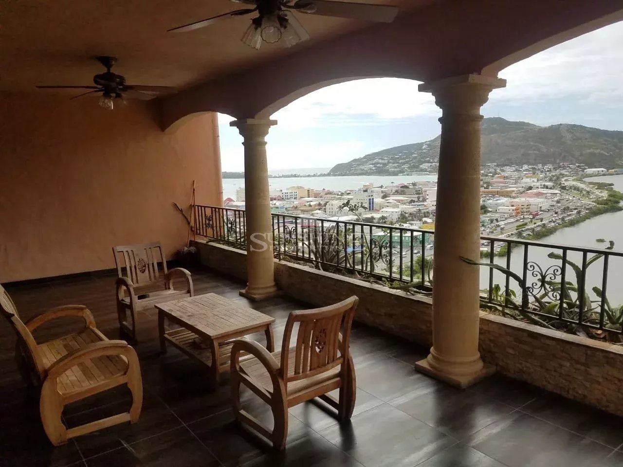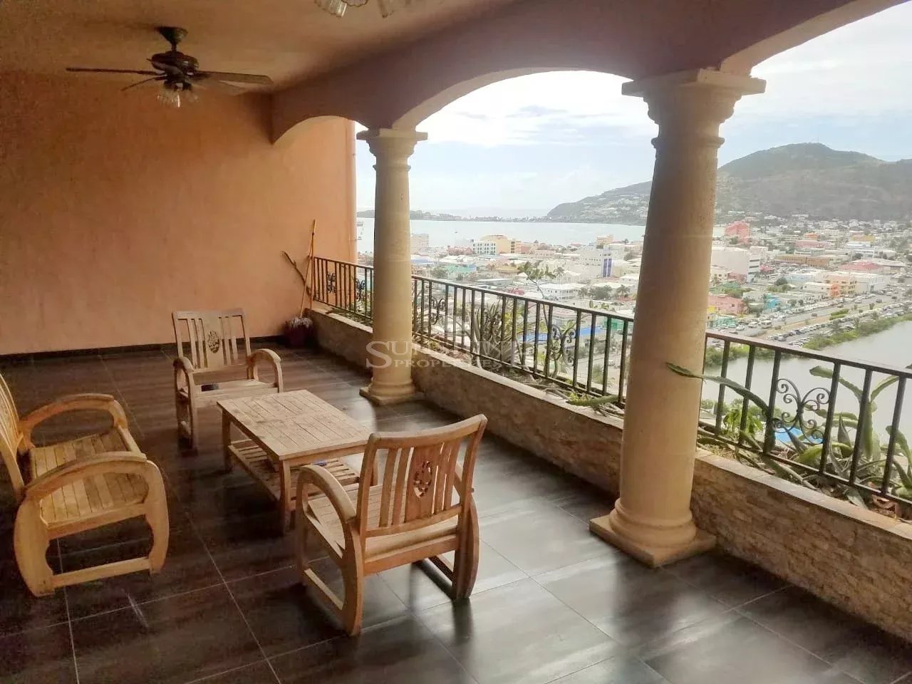 Located in the heart of the cityhillside with views that extend to the crew ship harbor and great bay beach. This unit is located in a small complex with pool and security just minutes from Philipsburg. This condo is spacious and fully equipped with a full kitchen, furniture and laundry. Each condo comes with parking and a garage, common pool, airco service, elevator, Gebe water included, and internet.