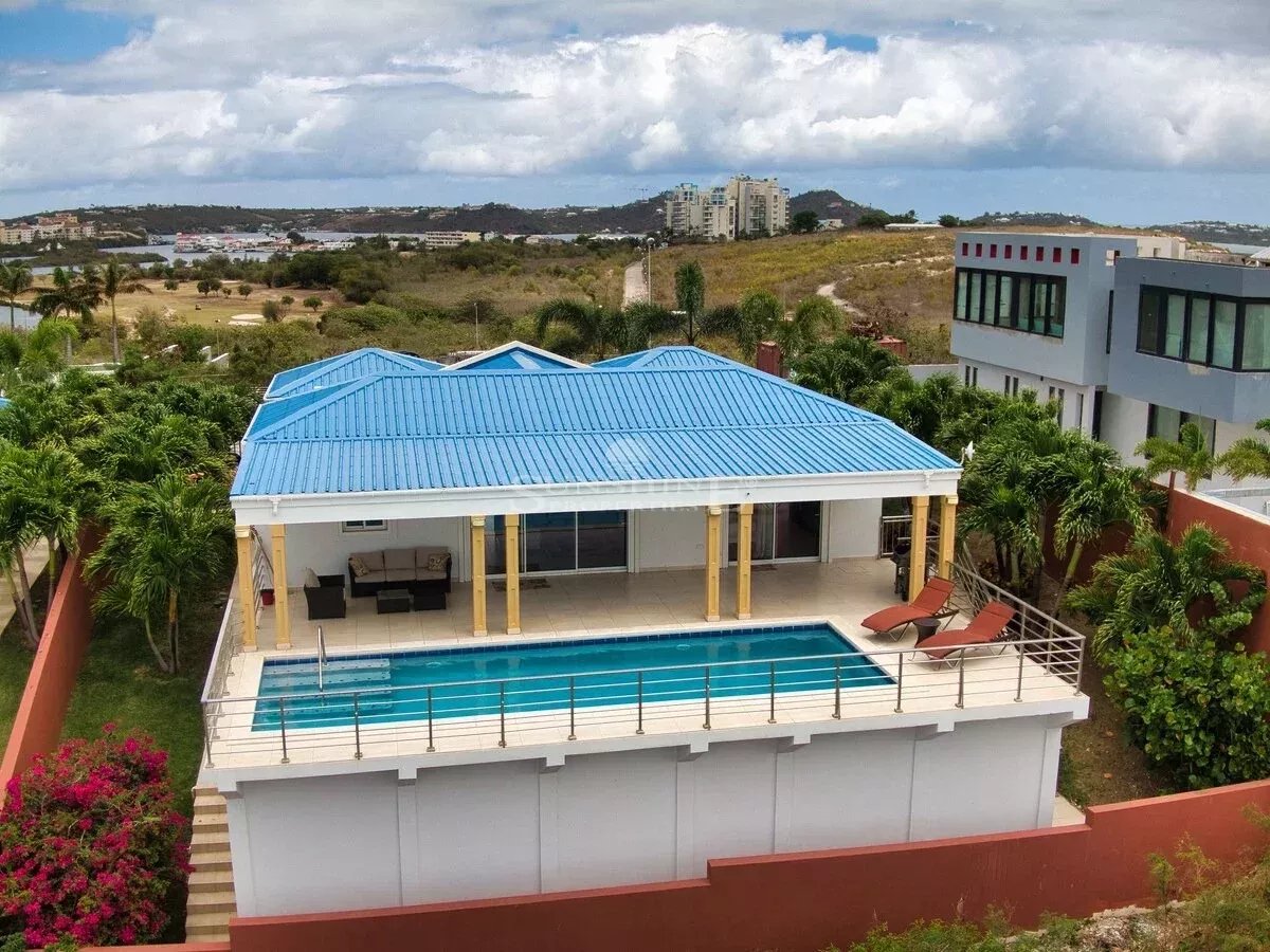 Cette confortable villa de 3 chambres et 3 salles de bains est située à Blue Marine, offrant une vue sur l'aéroport, le lagon et les yachts du port de plaisance. Cette villa spectaculaire est pratique pour la communauté de Blue Marine, avec une décoration professionnelle et des équipements exceptionnels qui confèrent à cette propriété une sophistication au style moderne meublé qui vous fera vraiment sentir comme si vous viviez dans le luxe. Une vue panoramique unique en son genre dans cette villa 5 étoiles ! Idéalement située près de la magnifique plage de Mullet Bay, des casinos, des restaurants, des commerces dans le Maho Village, et de l'expérience mondialement célèbre de l'atterrissage des avions à l'aéroport.