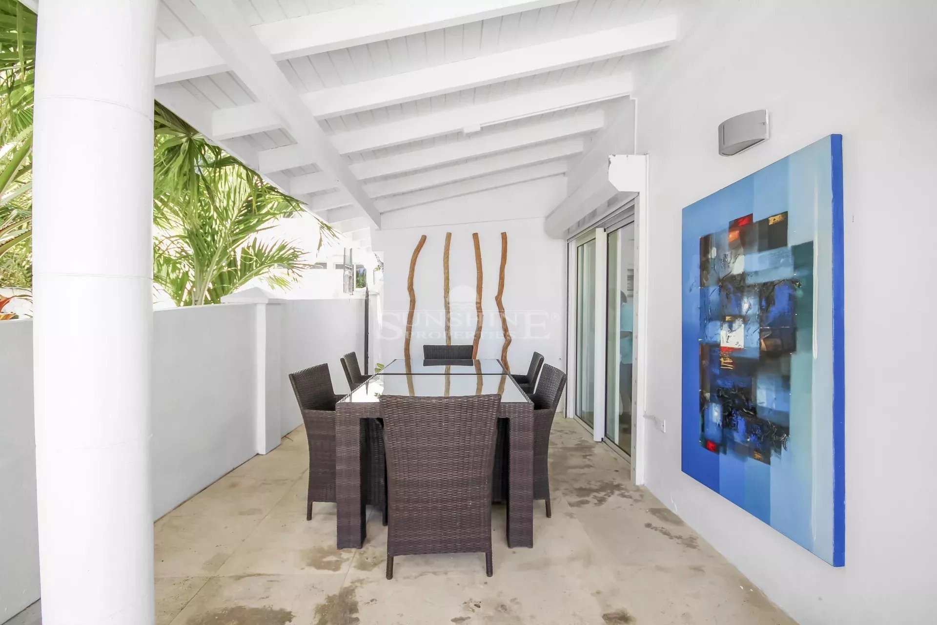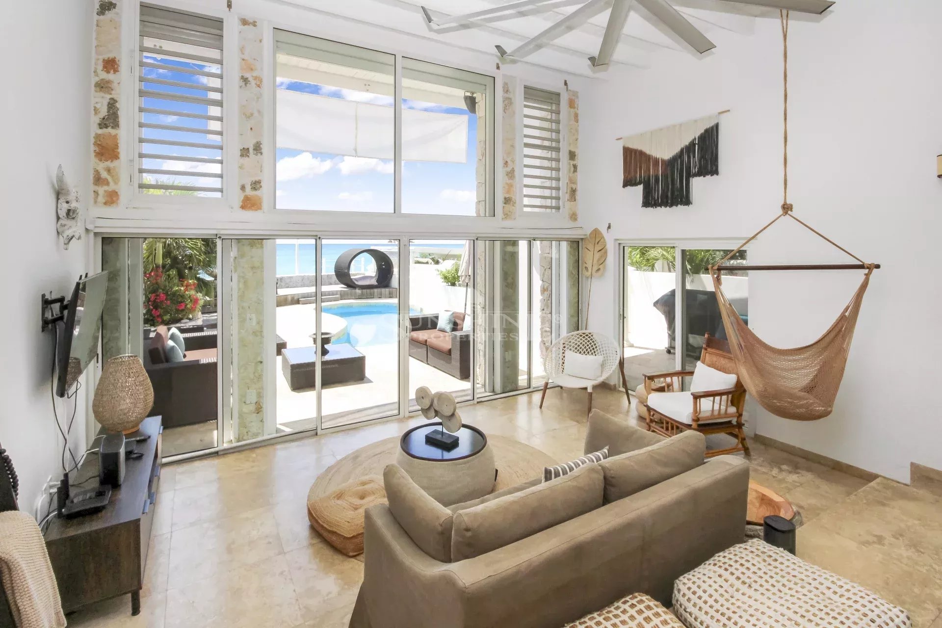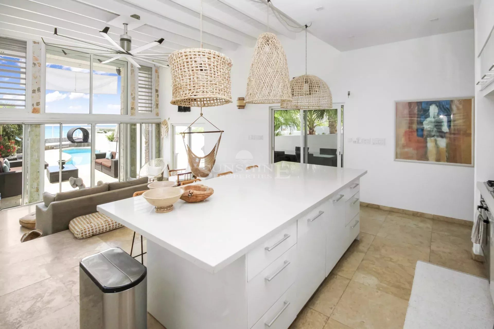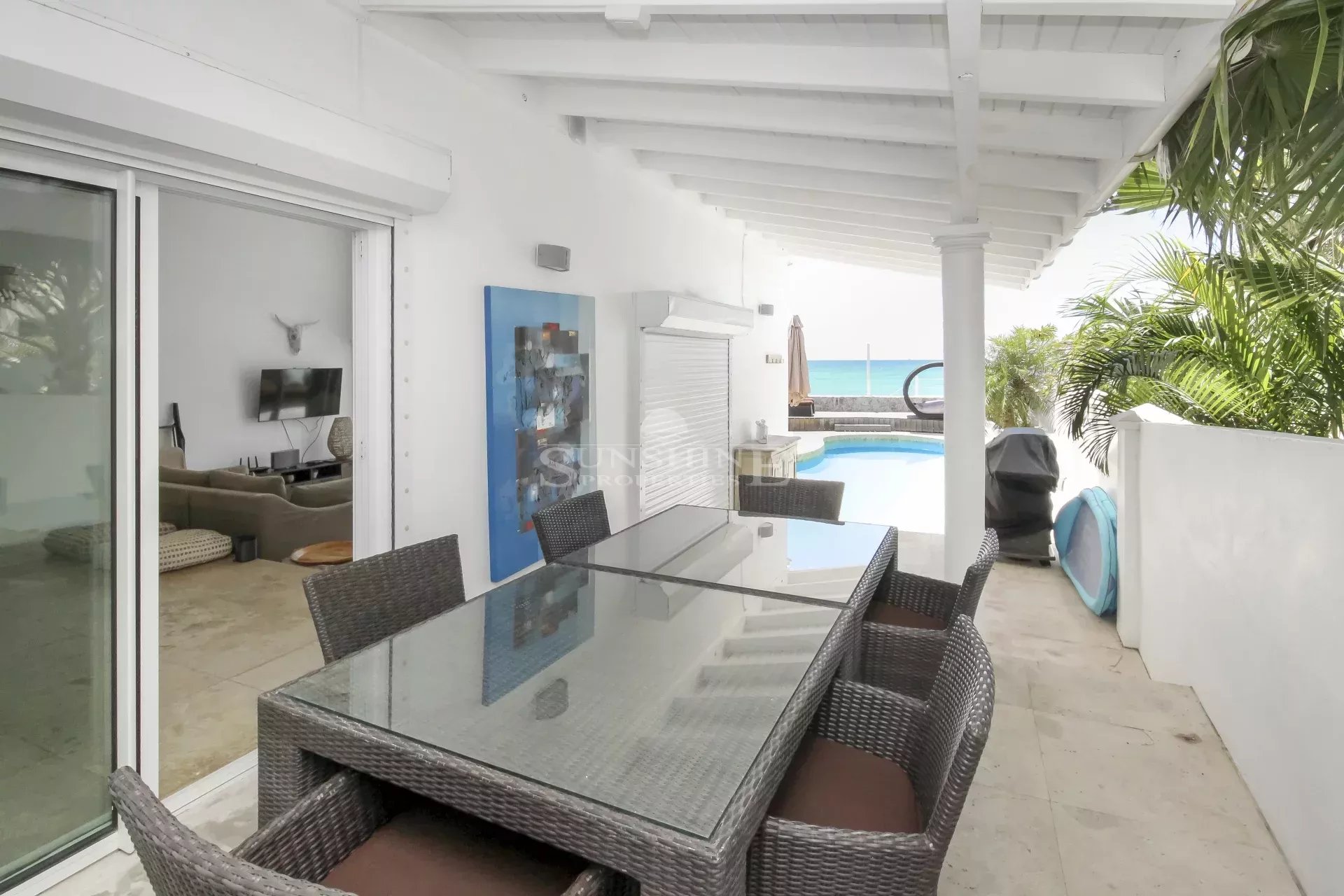 Passez sur la vaste terrasse en bord de mer ou détendez-vous dans le confort de la terrasse couverte, offrant toutes deux une vue imprenable sur l'océan. Que vous vous prélassiez au soleil ou appréciiez une pause ombragée, ces espaces sont parfaits pour se détendre avec style.