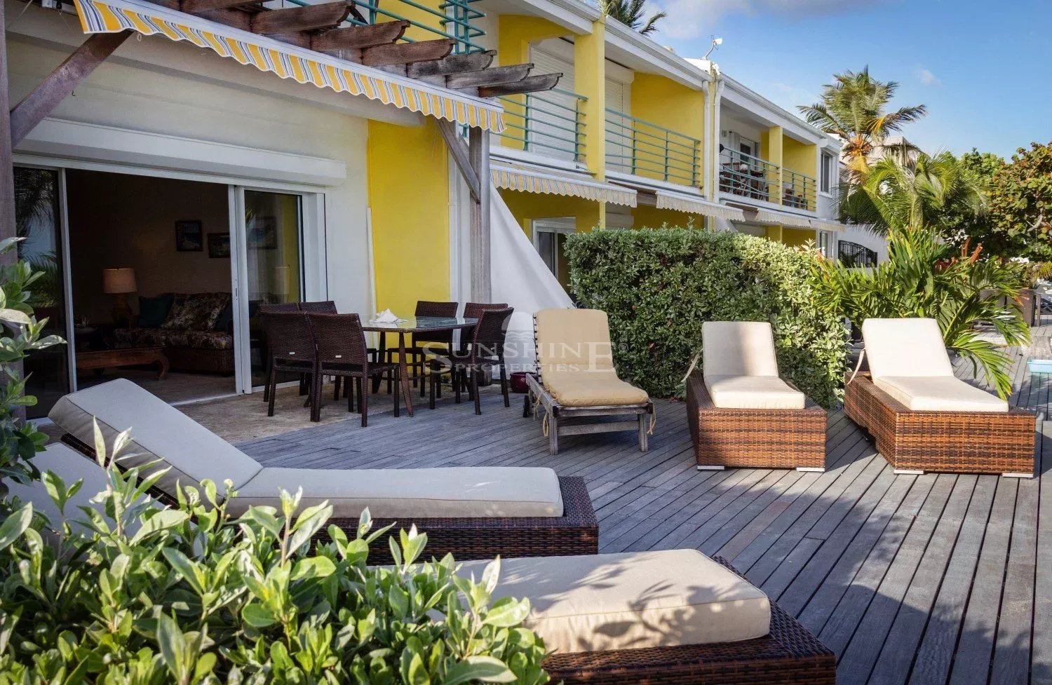 Climatisation, une cuisine complètement équipée d’appareils acier inoxydable, et l’internet est tes efficaces. Le deuxième étage a 2 chambres aussi fournies aussi avec une télévision à écran plat et un satellite. La chambre principale a une terrasse privée en face de la plage alors que l’autre chambre, également spacieuses, vous montre une vue magnifique du gardien tropicale. C'est un court trajet en voiture, Waterfront, restaurants, supermarchés, Maho, casinos, et toutes les animations de soirée animée que la capitale peut vous offrir.
