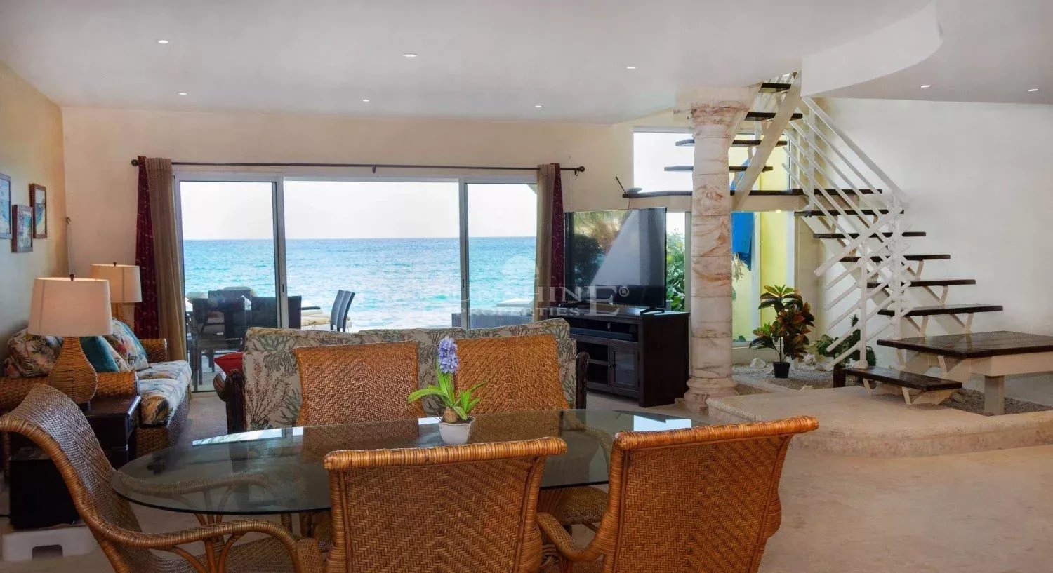 Le duplex à Coco au bord de la plage est une spacieuse 1,700 sq ft, duplex avec deux chambres est très unique ; grâce à cette large terrasse devant la mer située juste en face du Club Coco. Vous allez adorer les vues panoramiques de l’océan Caraïbe, les bateaux de croisière ou les mages yachts, tout en étant confortablement assise dans votre chaise à lounge. Un immense salon très confortable est une décorée élégante avec des 55 cm télévision à écran plat, un satellite, DVD, et un radio pour tous vos plaisirs. Vous allez vous sentirez chez vous toute en étant en vacances.