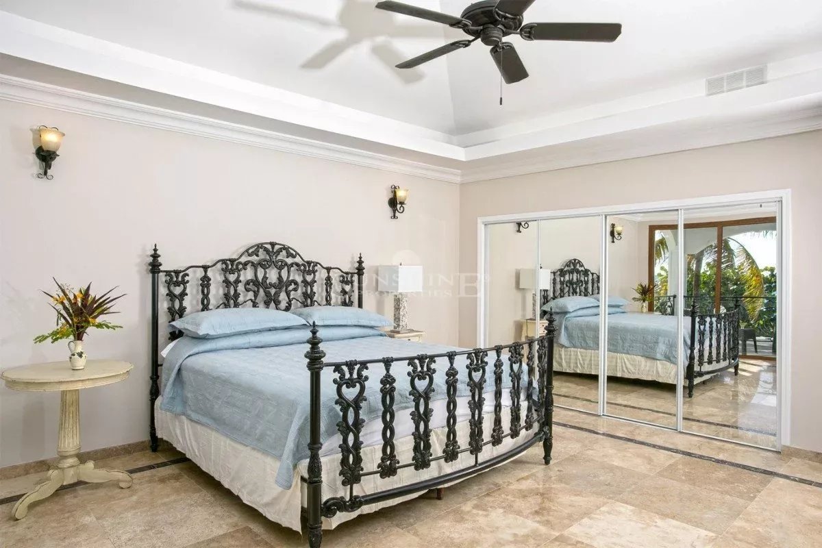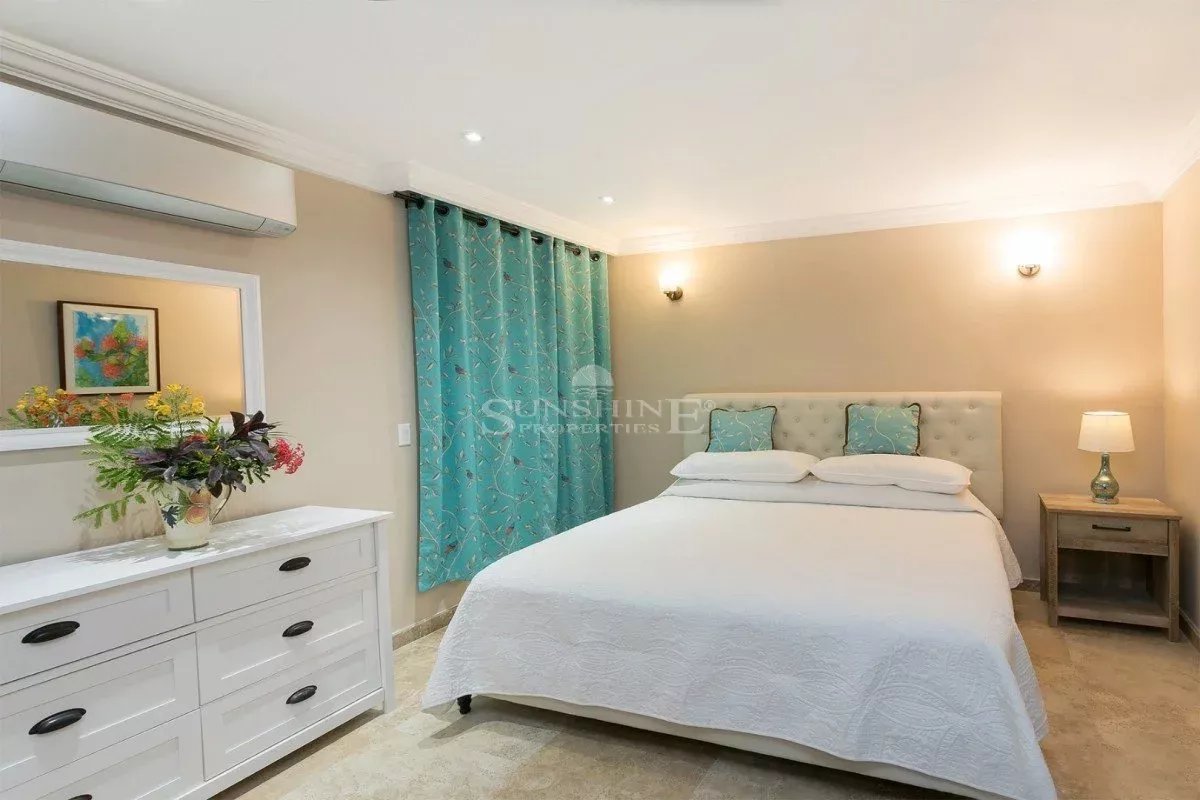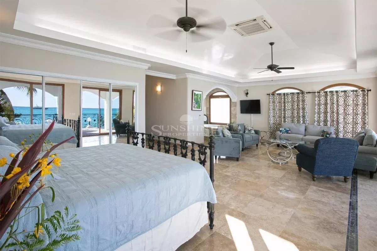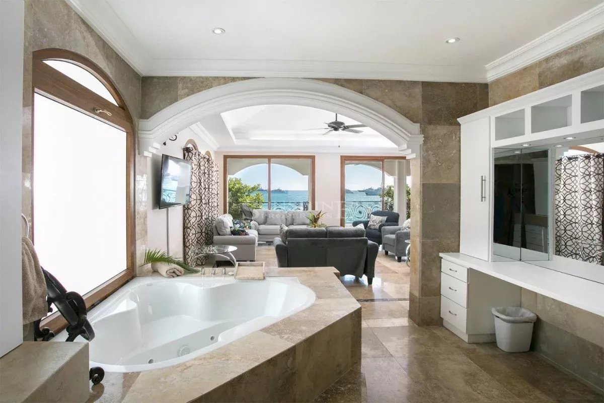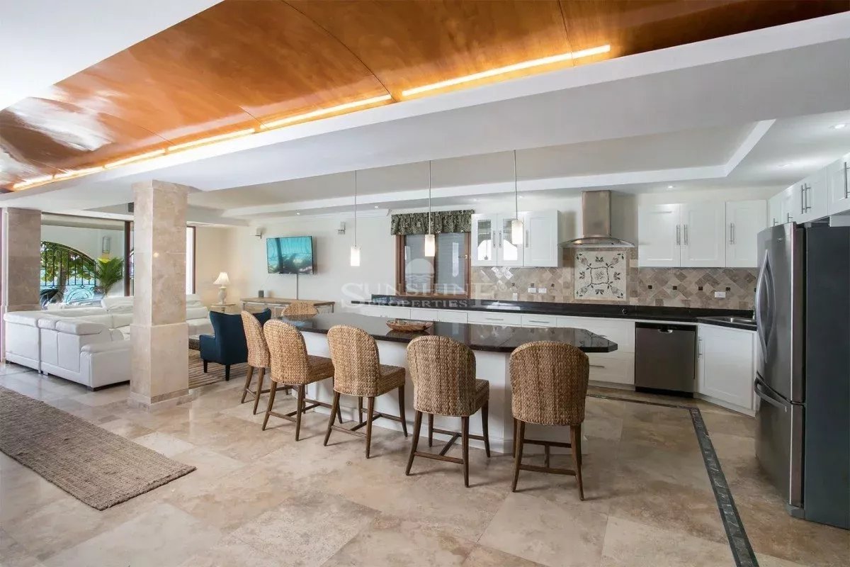À l’intérieur, la villa est meublée et décorée dans un style italien traditionnel avec une saveur tropicale et de grandes fenêtres en verre tout autour. Au rez-de-chaussée, vous trouverez un grand salon avec une variété d’options de sièges confortables tout en regardant votre série préférée sur un écran de 50 pouces HDTV. Les grandes fenêtres offrent de nombreuses vues panoramiques sur la mer Caraïbes, les îles voisines ou le passage les navires de croisière et les méga yachts.