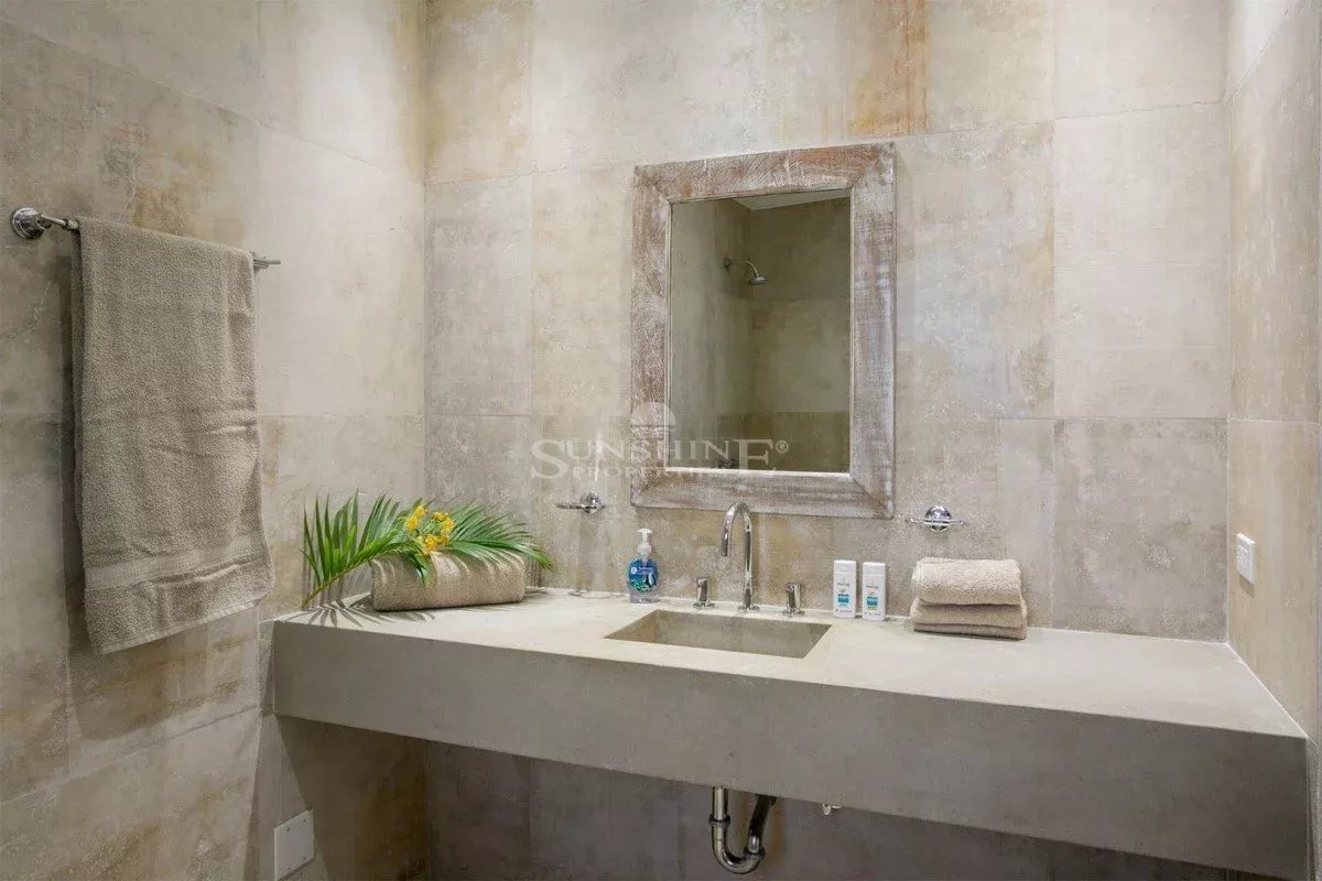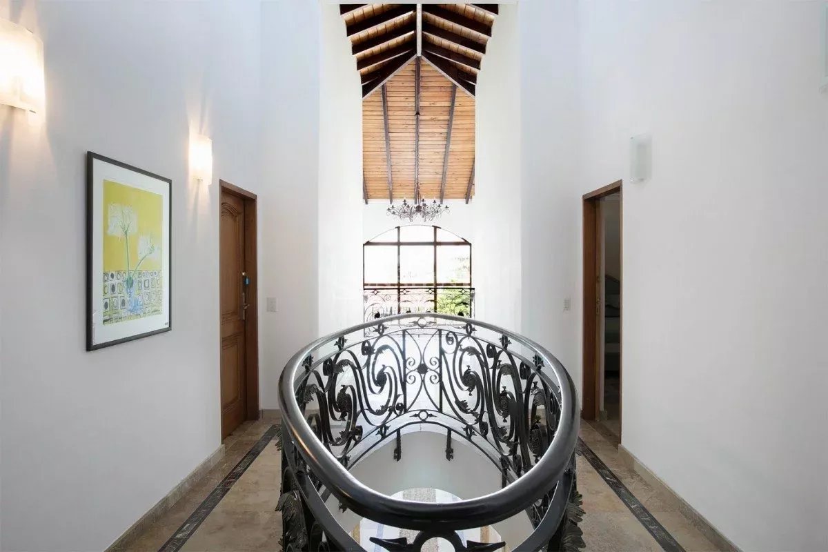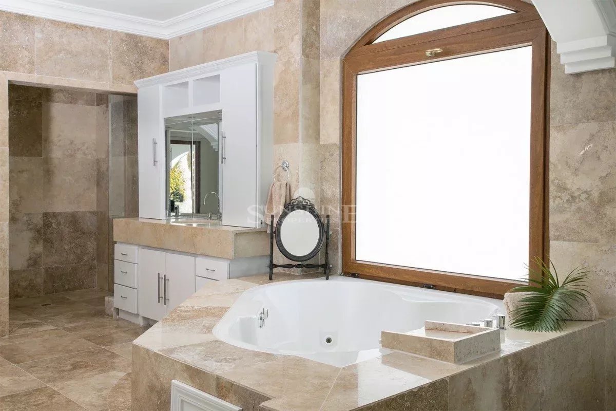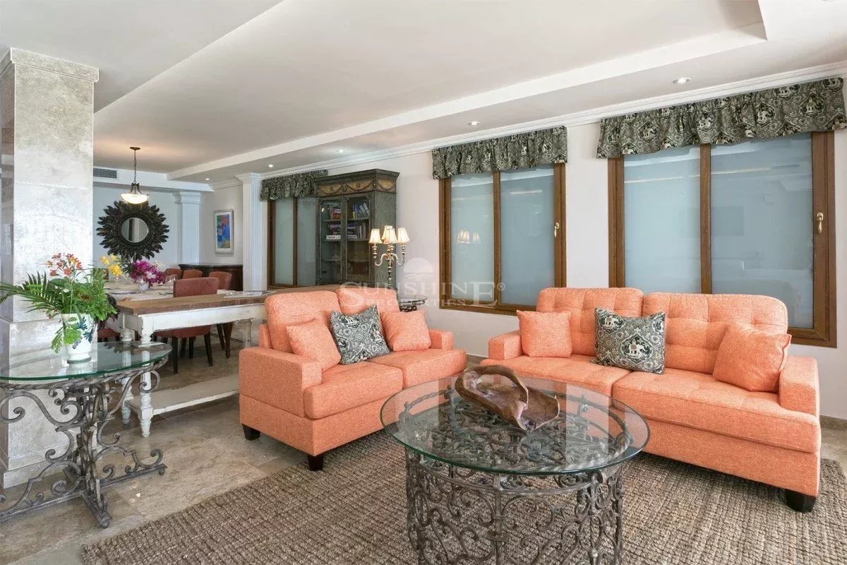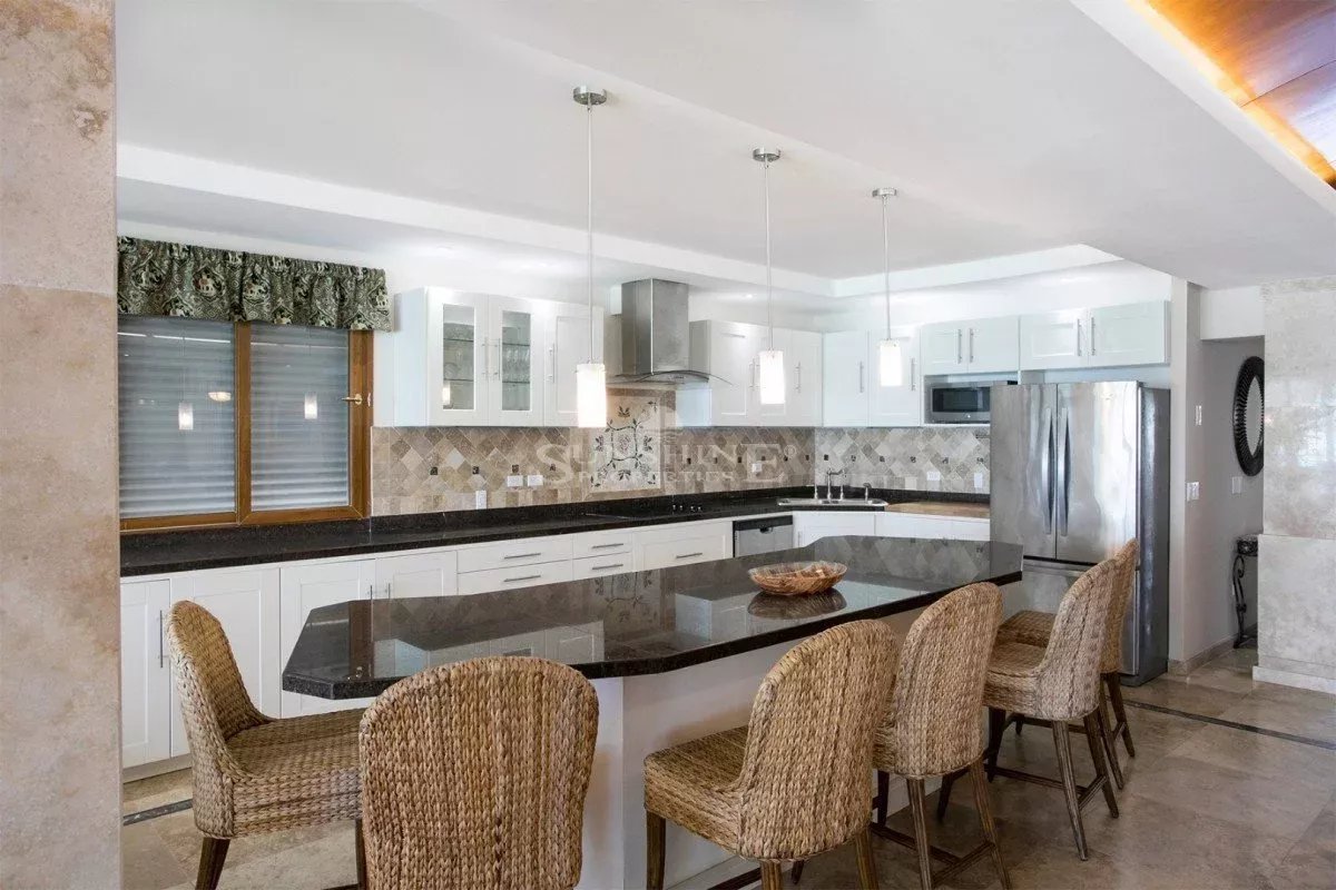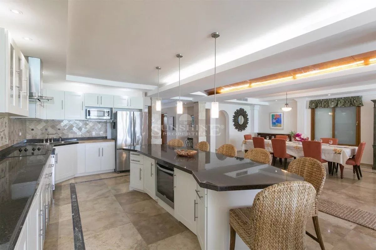 À l’intérieur, la villa est meublée et décorée dans un style italien traditionnel avec une saveur tropicale et de grandes fenêtres en verre tout autour. Au rez-de-chaussée, vous trouverez un grand salon avec une variété d’options de sièges confortables tout en regardant votre série préférée sur un écran de 50 pouces HDTV. Les grandes fenêtres offrent de nombreuses vues panoramiques sur la mer Caraïbes, les îles voisines ou le passage les navires de croisière et les méga yachts.