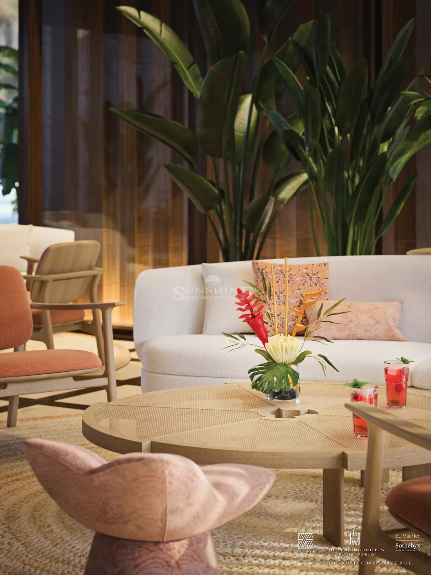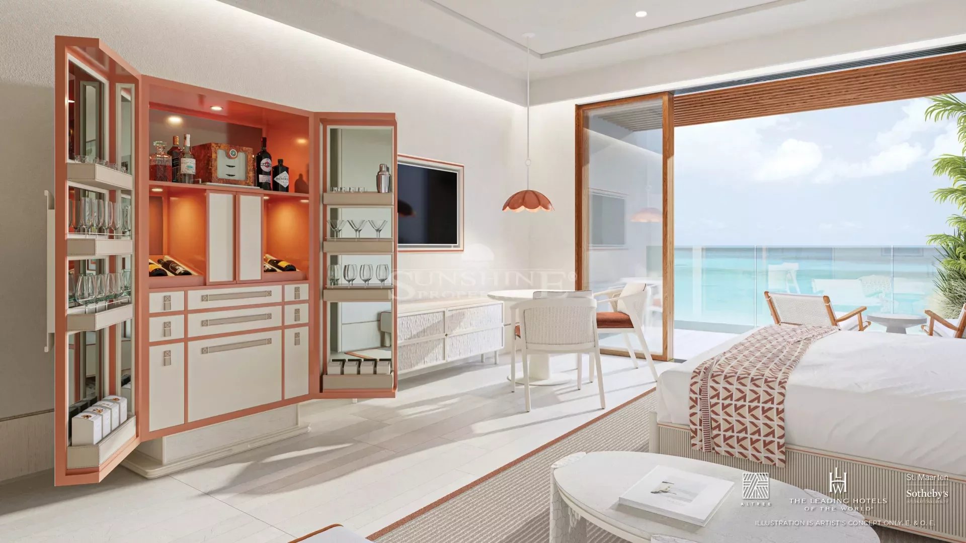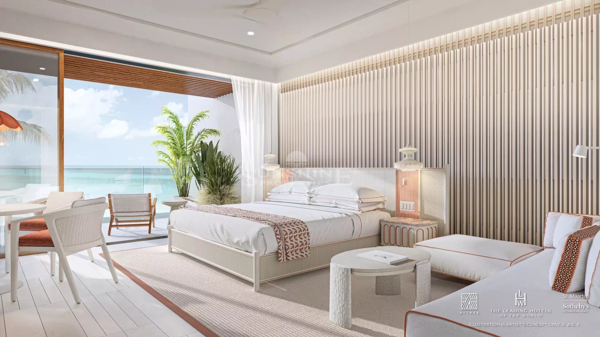 Des plafonds de 3 mètres dans toute la suite maximisent le soleil et les brises tropicales de St. Maarten.