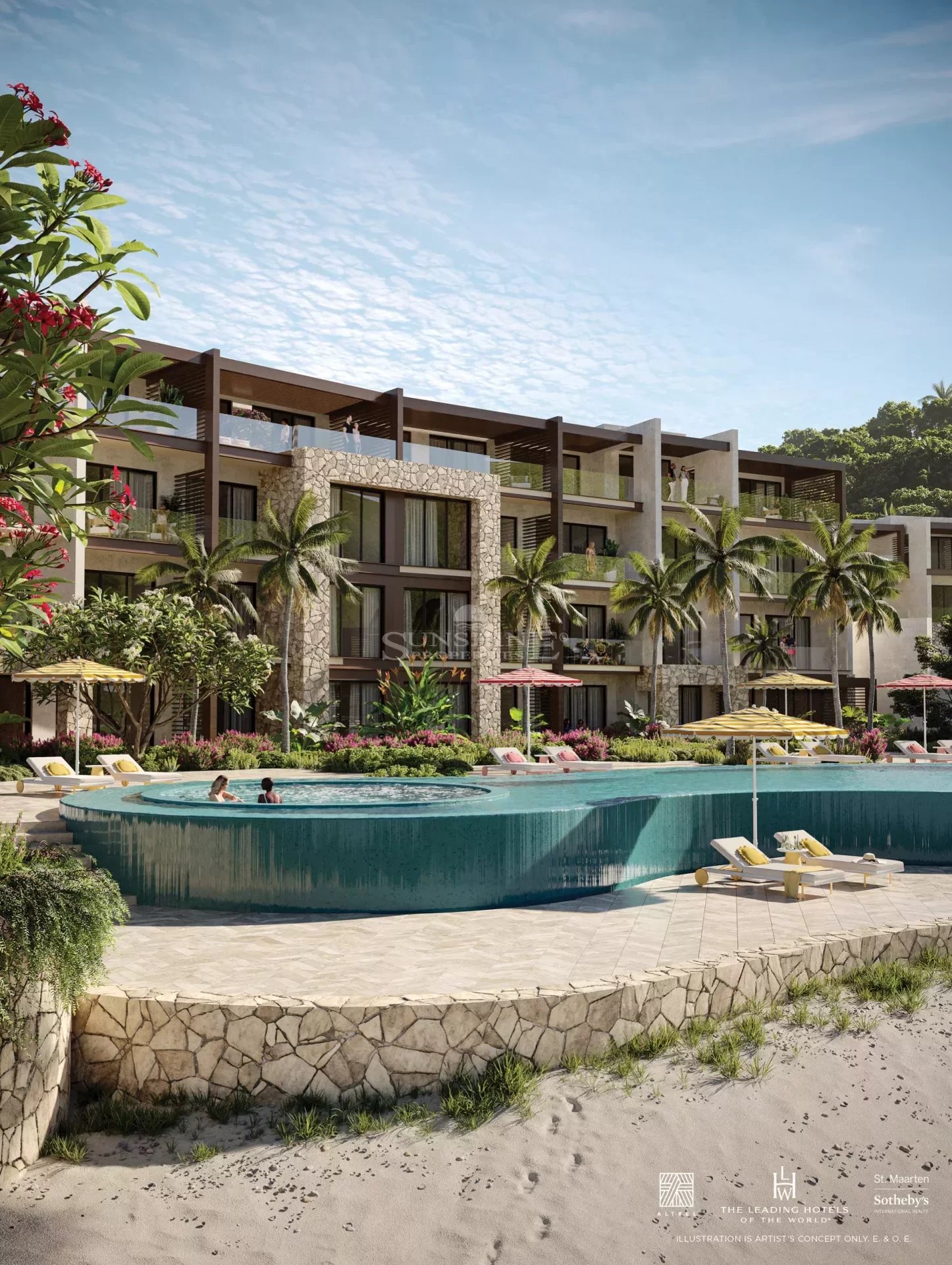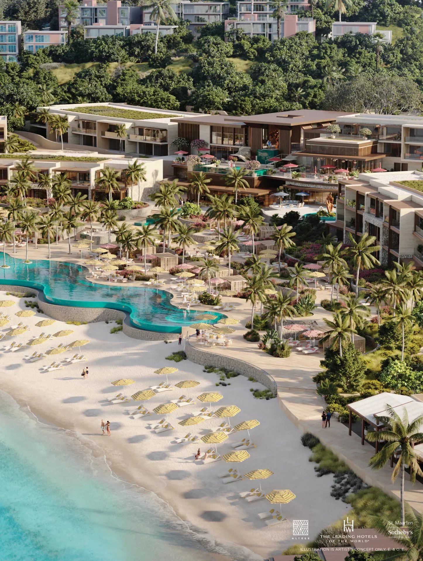 Situé du côté néerlandais de l'île, Vie L'Ven incarne l'architecture de style néerlandais tandis que les finitions intérieures de la propriété et de ses suites intègrent l'influence du côté français de St. Martin. Le design français se manifeste dans la palette sophistiquée, apaisante et vibrante de matériaux allant des coraux, rouges et jaunes aux diverses nuances de bleu océanique reflétant l'environnement. L'architecture, signée HKS, offre un design innovant signature et une planification de complexe à usage mixte. Le Studio Munge, renommé mondialement, propose un design intérieur et des meubles sur mesure pour créer une expérience cinq étoiles pour les propriétaires et les invités de Vie L'Ven.