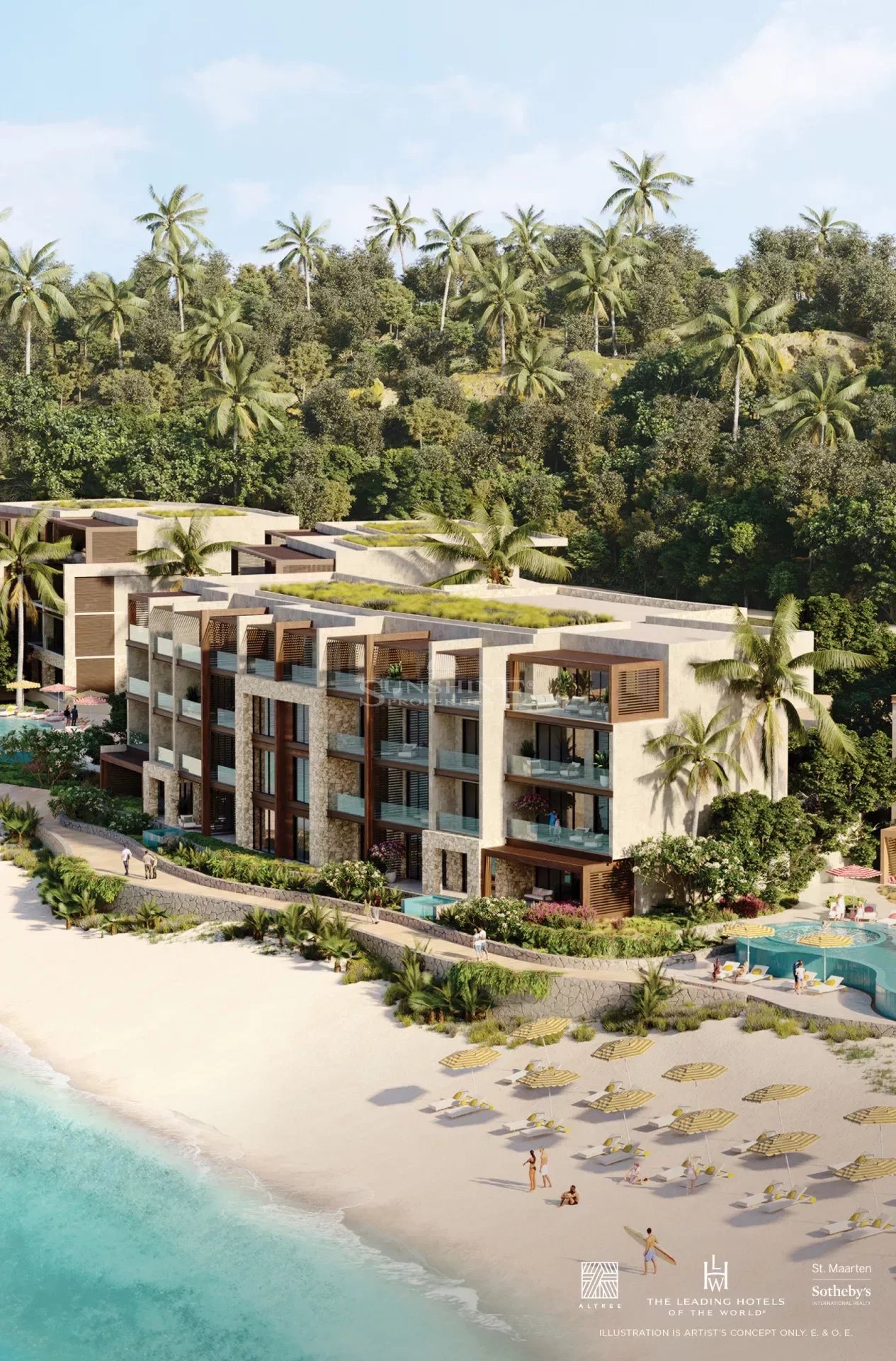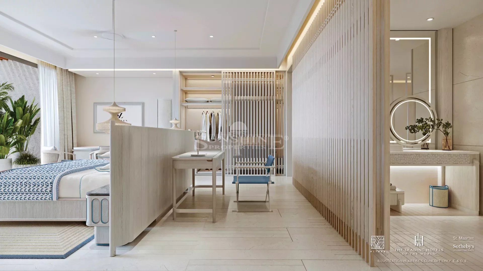 Vie L'Ven présente un standard inégalé de luxe et d'équipements, situé dans le cadre idyllique d'Indigo Bay à St. Maarten. Choisissez parmi des suites de 1 à 2 chambres et plus disponibles à l'achat, avec l'opportunité de maximiser votre investissement en participant à un prestigieux programme hôtelier cinq étoiles. Plongez dans l'opulence à chaque tournant, en commençant par l'entrée majestueuse du hall d'accueil mettant en vedette une œuvre sculpturale d'un artiste internationalement reconnu, donnant le ton à un programme artistique méticuleusement sélectionné dans toute la propriété. Régalez vos papilles dans plusieurs restaurants distincts, chacun proposant une variété d'options culinaires, complétés par le restaurant et bar phare dirigé par le célèbre Chef étoilé Michelin Alain Ducasse. Le centre de bien-être et spa à la pointe de la technologie est un sanctuaire expérientiel composé de pavillons connectés, célébrant la beauté naturelle intérieure et extérieure. Les espaces de soins du spa maximisent les vues sublimes sur l'océan, tandis que le centre de fitness adopte une ambiance douce, naturelle et rustique. Profitez d'une zone de conservation naturelle comprenant des jardins de papillons, des espaces de méditation et une nature tropicale à son meilleur. Le point culminant de la propriété est la plage immaculée de sable blanc de 300 mètres et les eaux tropicales envoûtantes. Les commodités de Vie L'Ven sont incomparables. Situé du côté néerlandais de l'île, Vie L'Ven incarne l'architecture de style néerlandais tandis que les finitions intérieures de la propriété et de ses suites intègrent l'influence du côté français de St. Martin. Le design français se manifeste dans la palette sophistiquée, apaisante et vibrante de matériaux allant des coraux, rouges et jaunes aux diverses nuances de bleu océanique reflétant l'environnement. L'architecture, signée HKS, offre un design innovant signature et une planification de complexe à usage mixte. Le Studio Munge, renommé mondialement, propose un design intérieur et des meubles sur mesure pour créer une expérience cinq étoiles pour les propriétaires et les invités de Vie L'Ven. La suite la plus grande dispose d'un salon spacieux avec des sièges lounge, ainsi que d'une cuisine complète et d'une salle à manger. La deuxième chambre est meublée de deux lits jumeaux et partage une salle de bain avec un petit salon séparé. Le salon offre un espace d'évasion ou une zone pour invités avec un rangement spacieux. La suite principale comprend un dressing, une baignoire autoportante, une douche en verre et un WC privé. La deuxième salle de bain offre une coiffeuse et une douche en verre. Des placards dans le couloir offrent un espace de rangement supplémentaire. La sélection de palettes de couleurs corail orange ou bleu océan illustre l'attention portée aux détails et l'influence de l'île française. Des plafonds de 3 mètres dans toute la suite maximisent le soleil et les brises tropicales de St. Maarten. Les accessoires de plomberie et quincaillerie en blanc mat sont choisis avec soin pour résister à l'air salin. Les revêtements de sol comprennent des planchers de chêne blanchi, des tapis faits main et des carreaux en mosaïque. Les meubles de cuisine sont conçus sur mesure par le Studio Munge, reconnu internationalement. Le pack d'électroménagers haut de gamme comprend un réfrigérateur/congélateur de 60 cm, une plaque à induction de 38 cm et une hotte aspirante sans conduit. Le plan de travail et le dosseret sont en Corian. Les détails des salles de bains incluent des coiffeuses sur mesure, des sols en mosaïque, une douche en verre avec un pommeau de douche pluie, un éclairage d'accentuation sous le comptoir, une vasque, un robinet en finition blanc mat, et des luminaires sur mesure dans la douche et le WC. La terrasse est dotée de chaises longues en teck. Les lumières encastrées et les interrupteurs variateurs. Un système de climatisation et de chauffage central contrôlé individuellement selon les saisons. Détecteurs de fumée et système d'extincteurs automatiques. Trois autres agencements distincts de suites sont également disponibles.