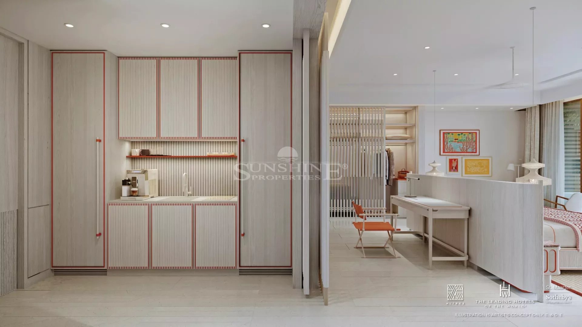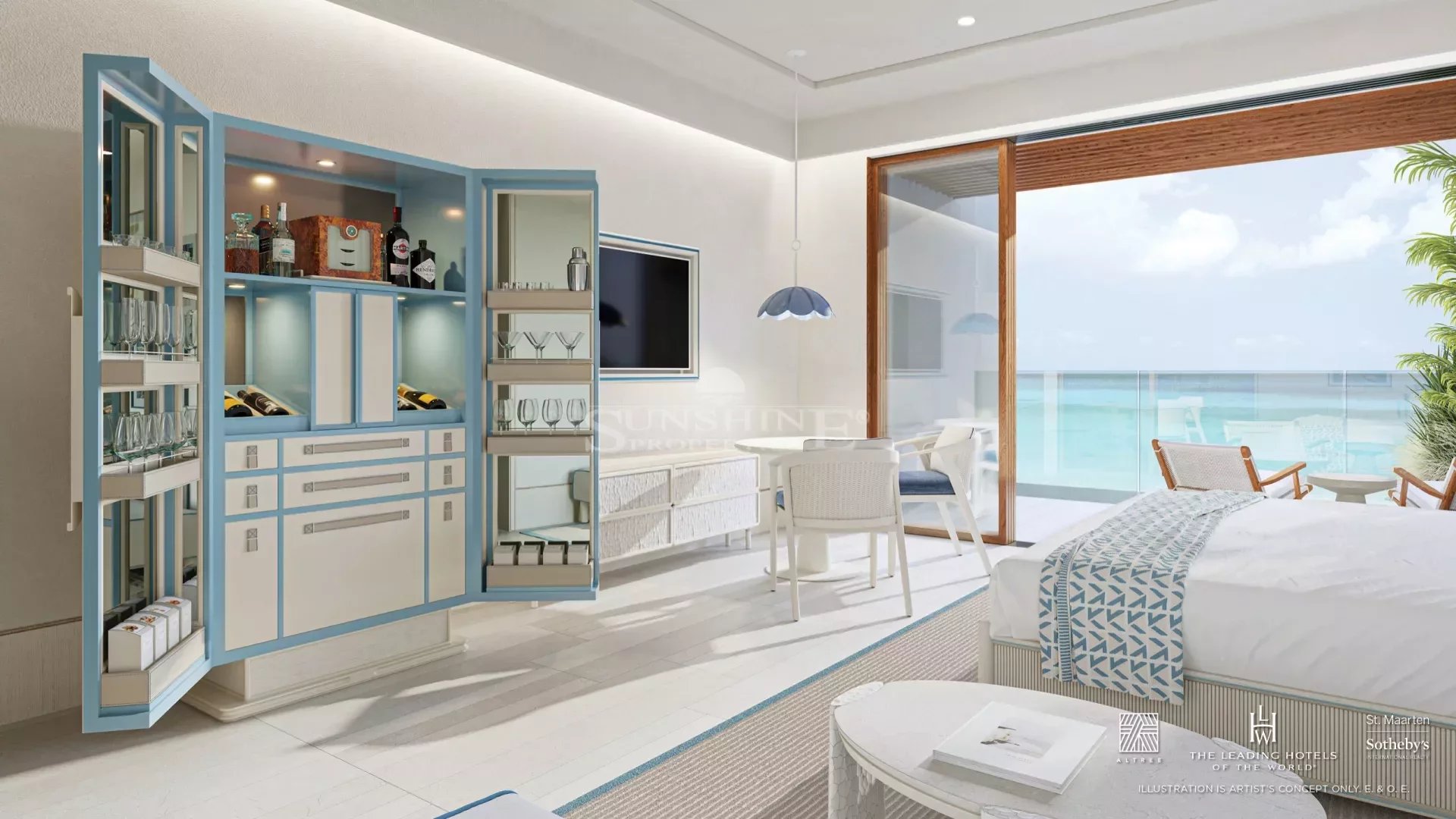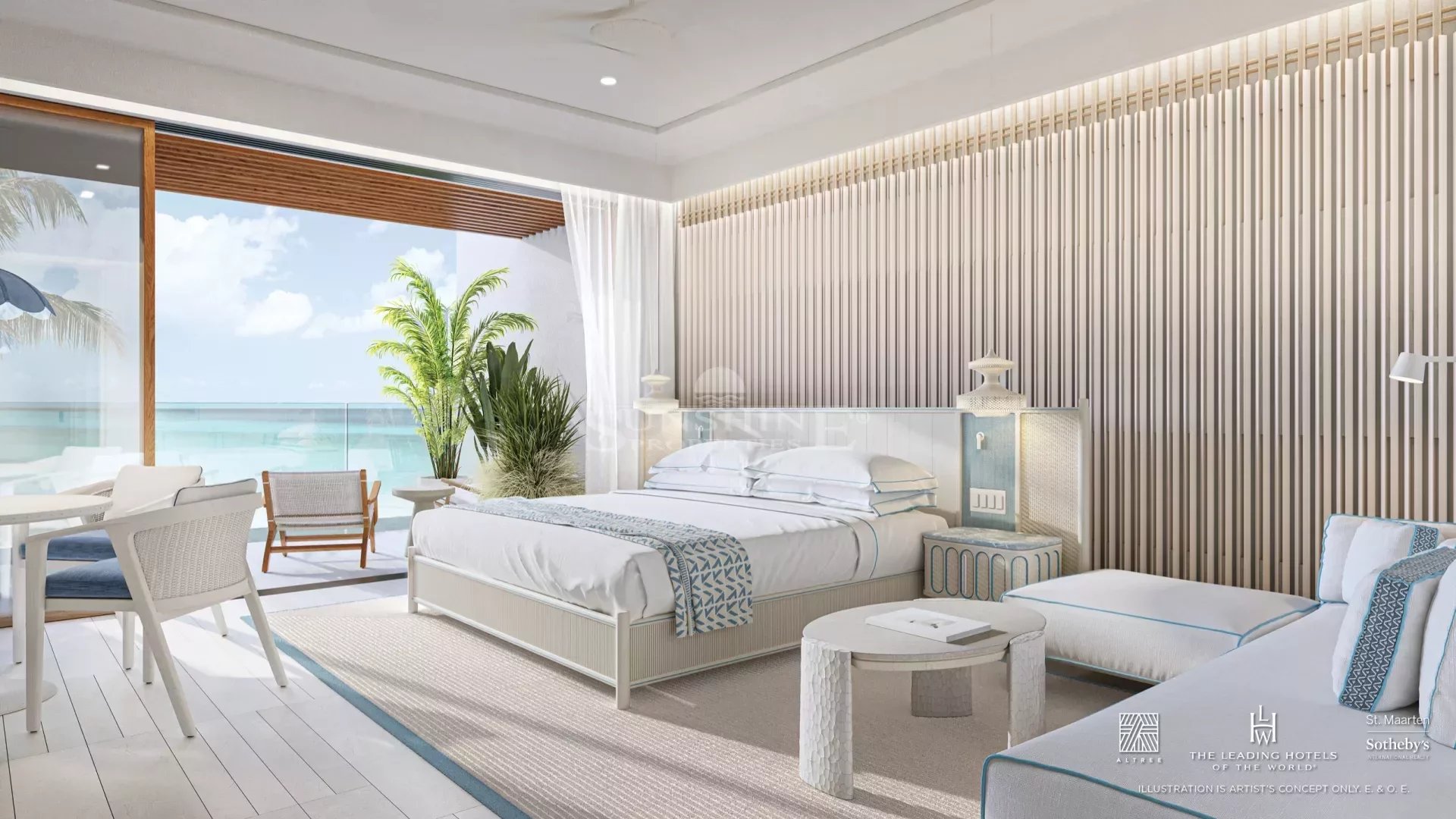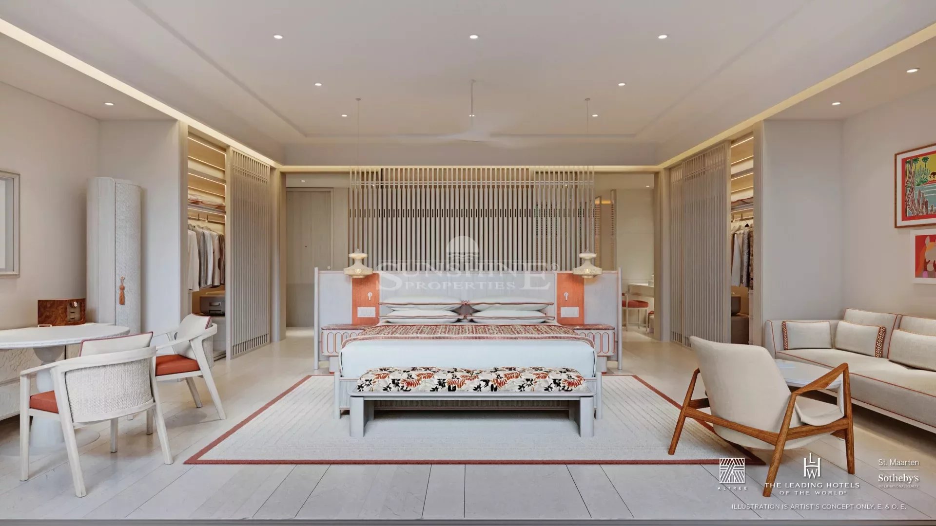 Des plafonds de 3 mètres dans toute la suite maximisent le soleil et les brises tropicales de St. Maarten.