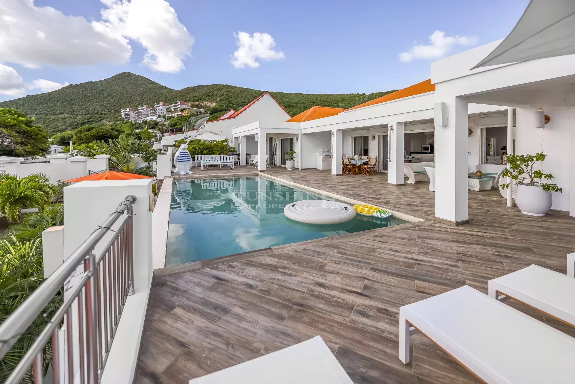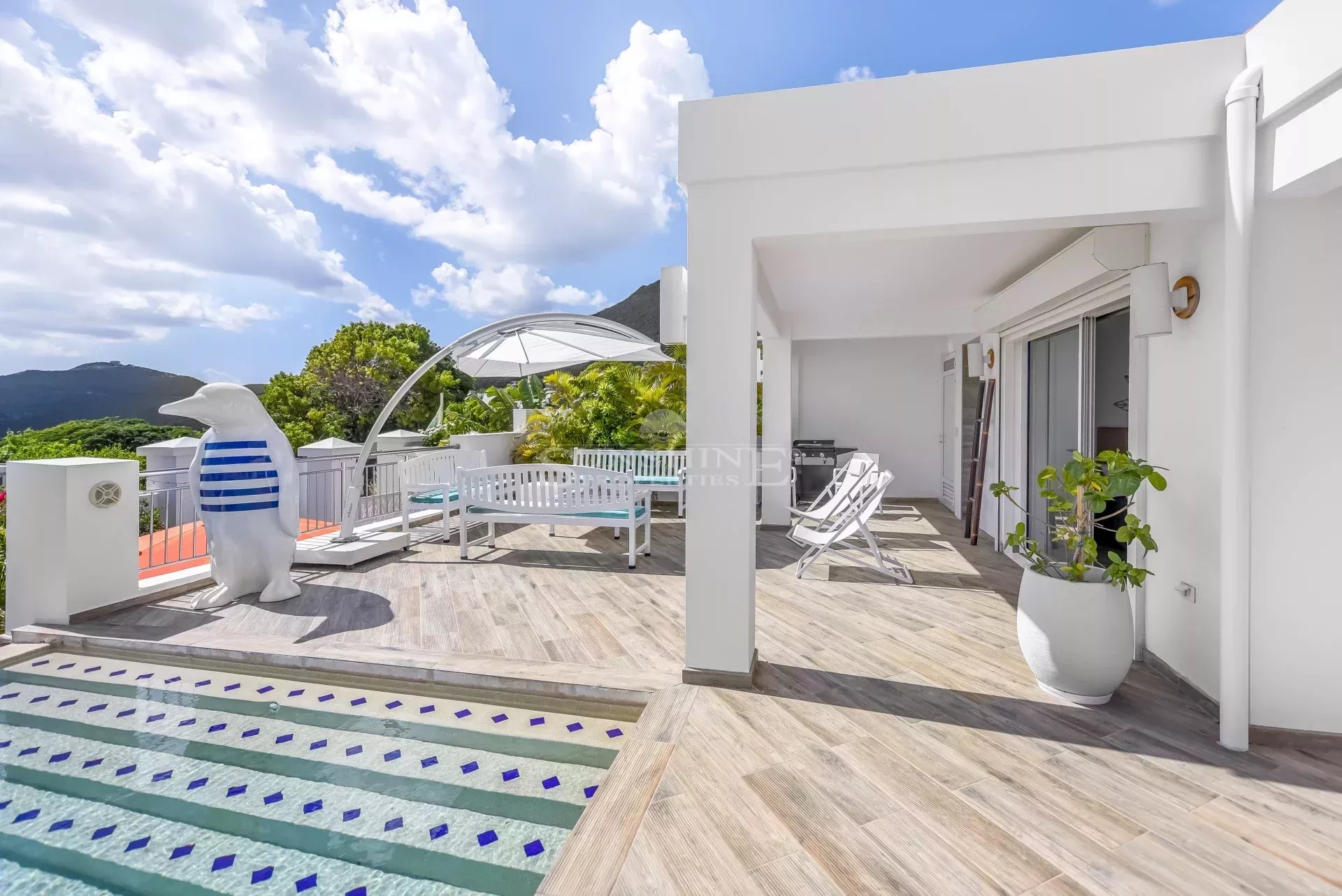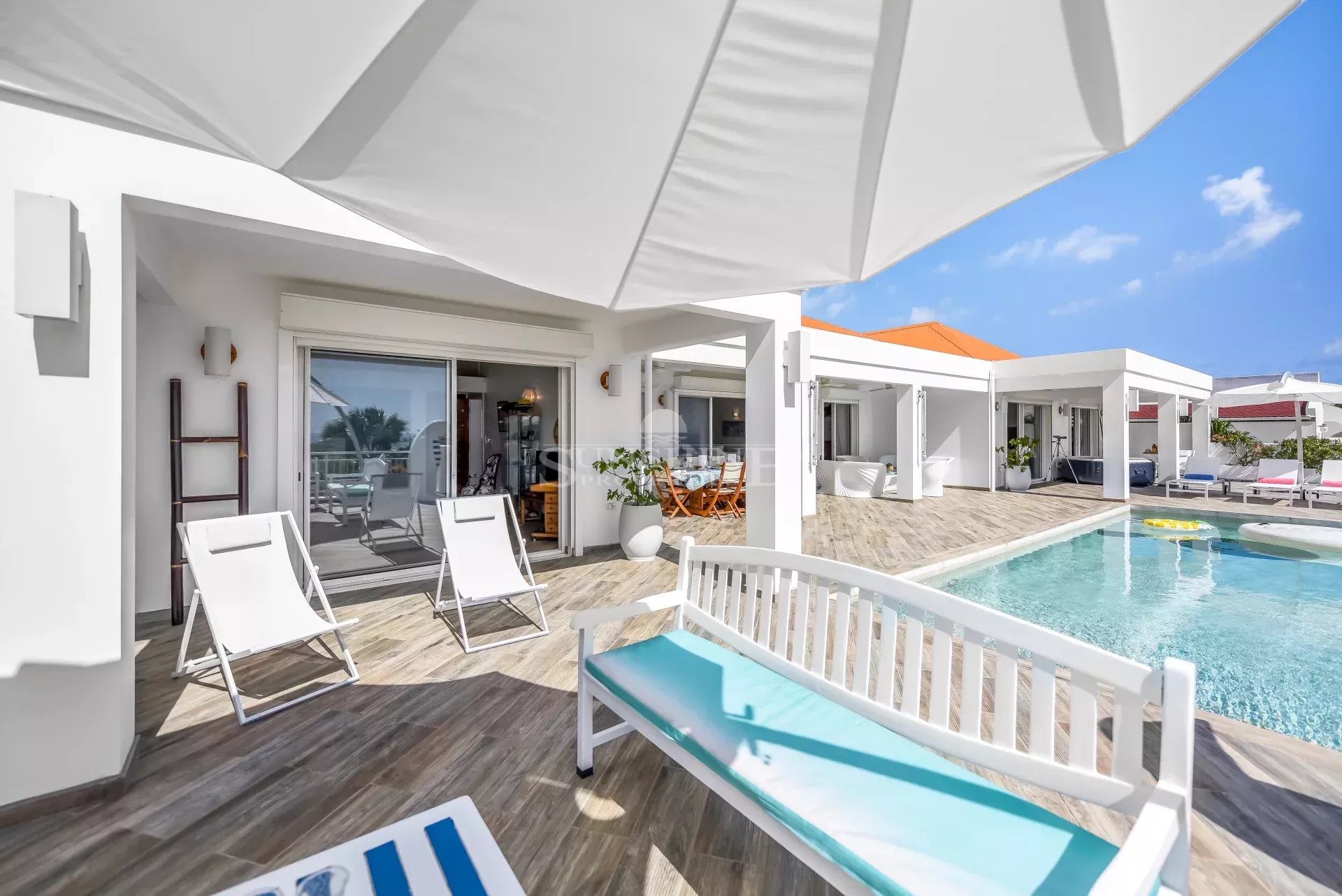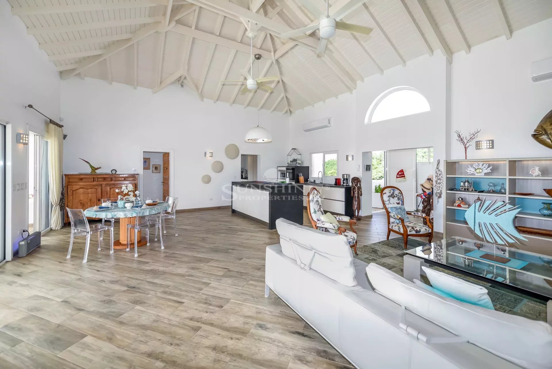 Décorée avec élégance, cette villa jouit de la sérénité et offre une vue imprenable sur l'océan. Elle dispose d'une grande terrasse et offre des vues imprenables sur l'océan jusqu'à Saint-Barthélemy.