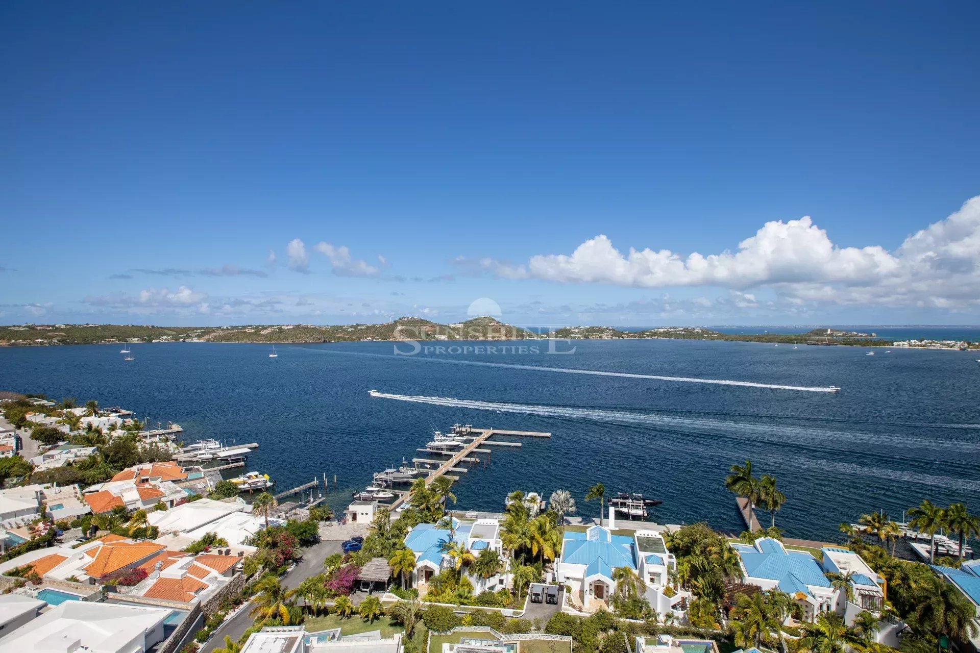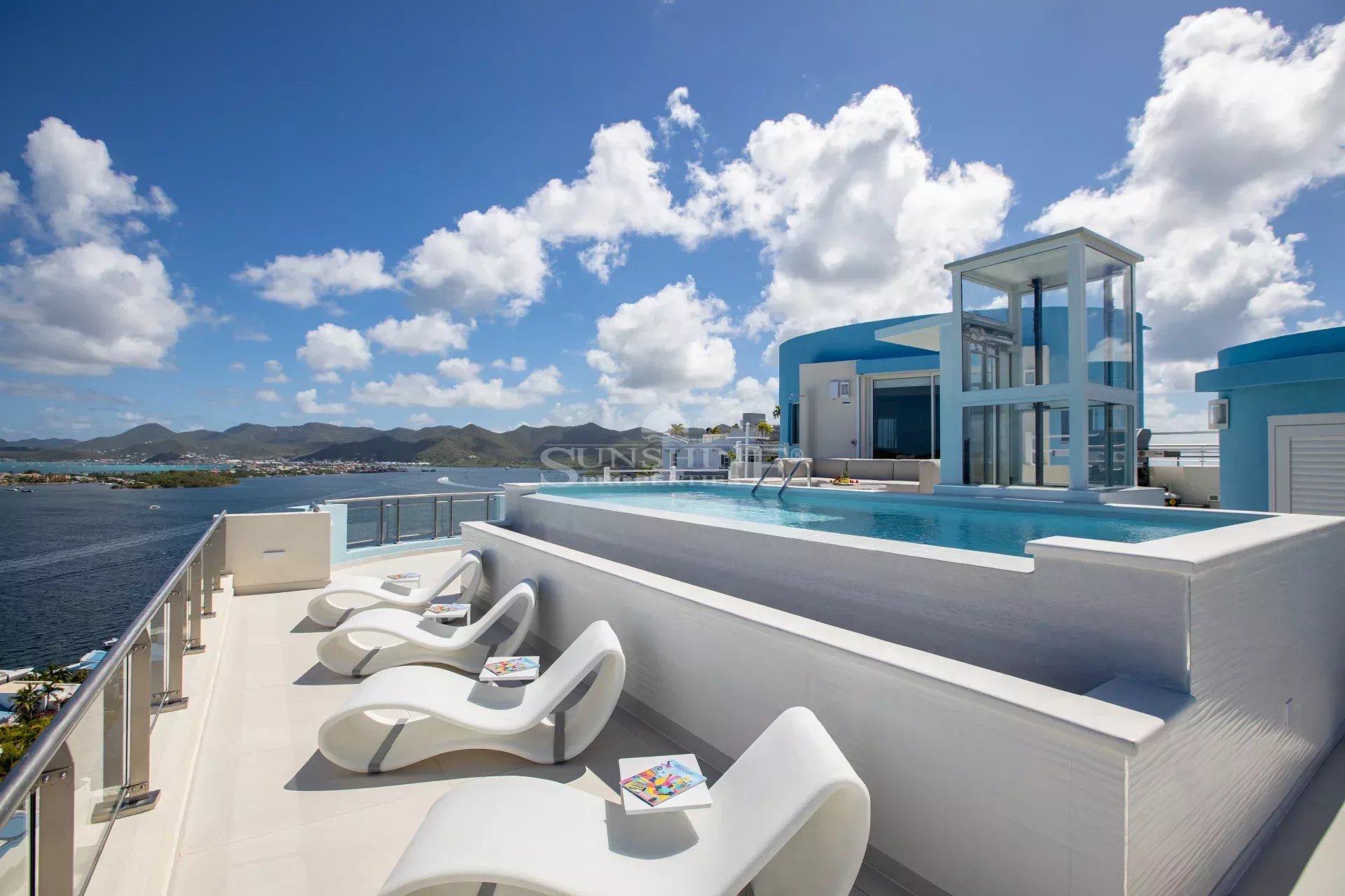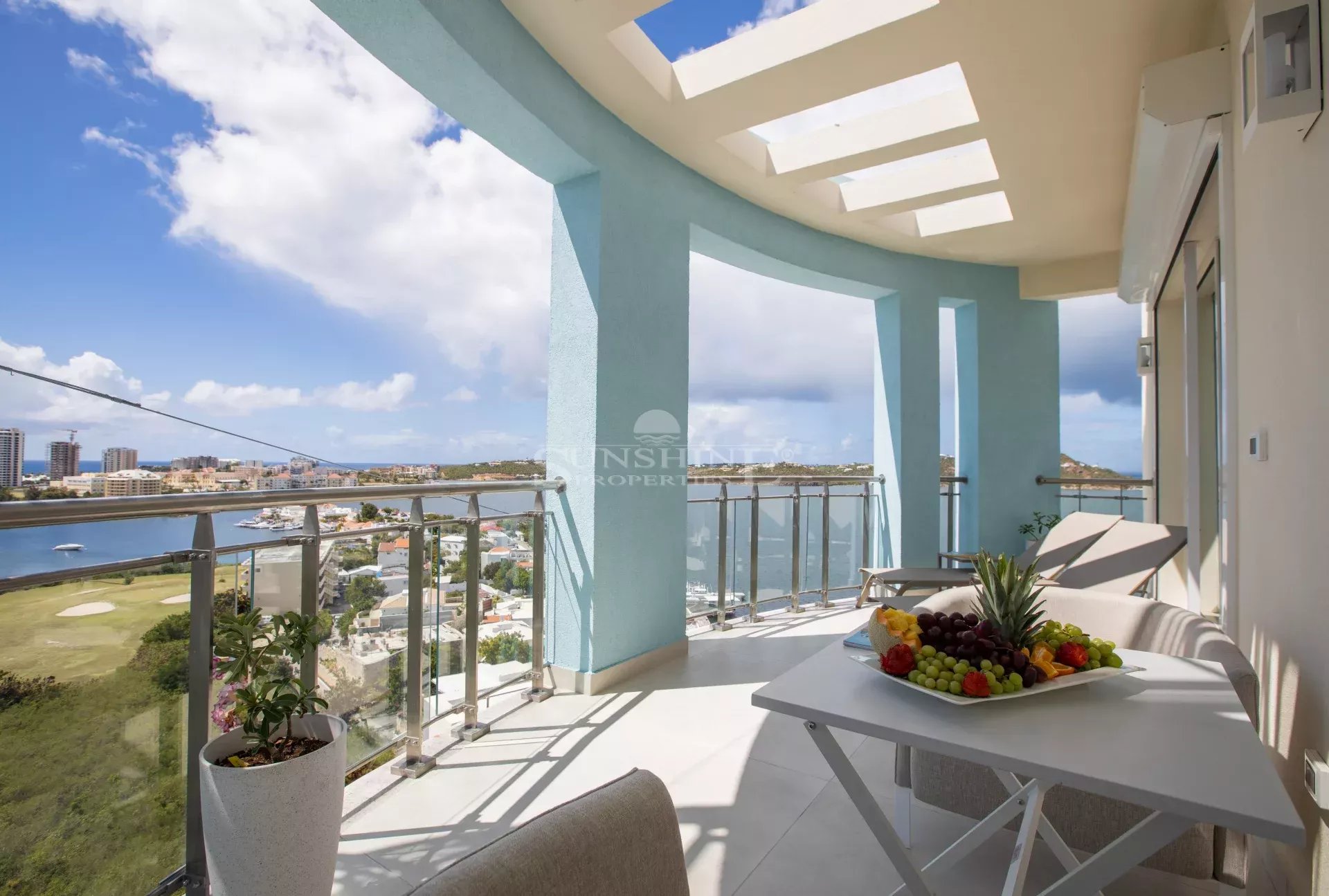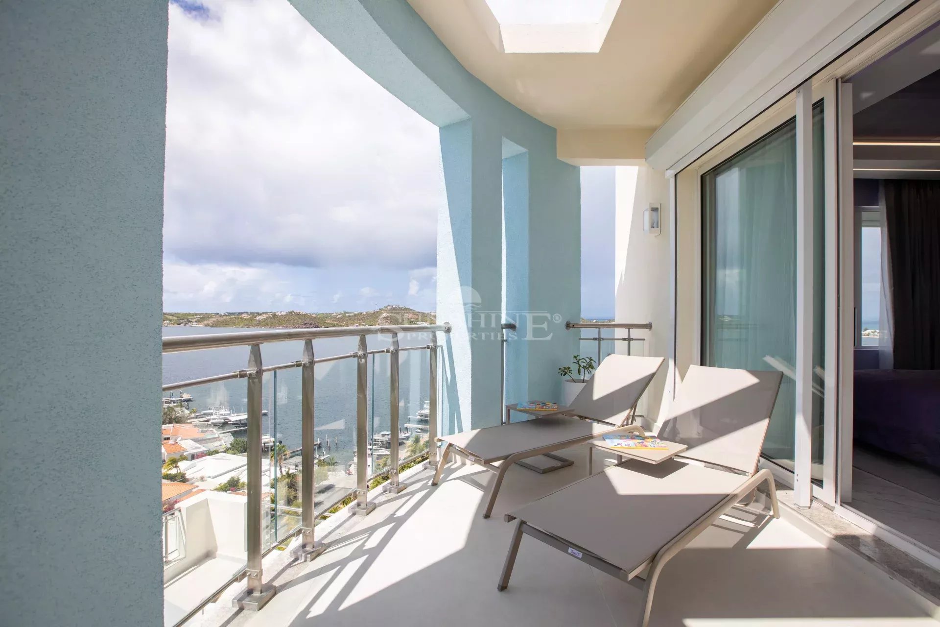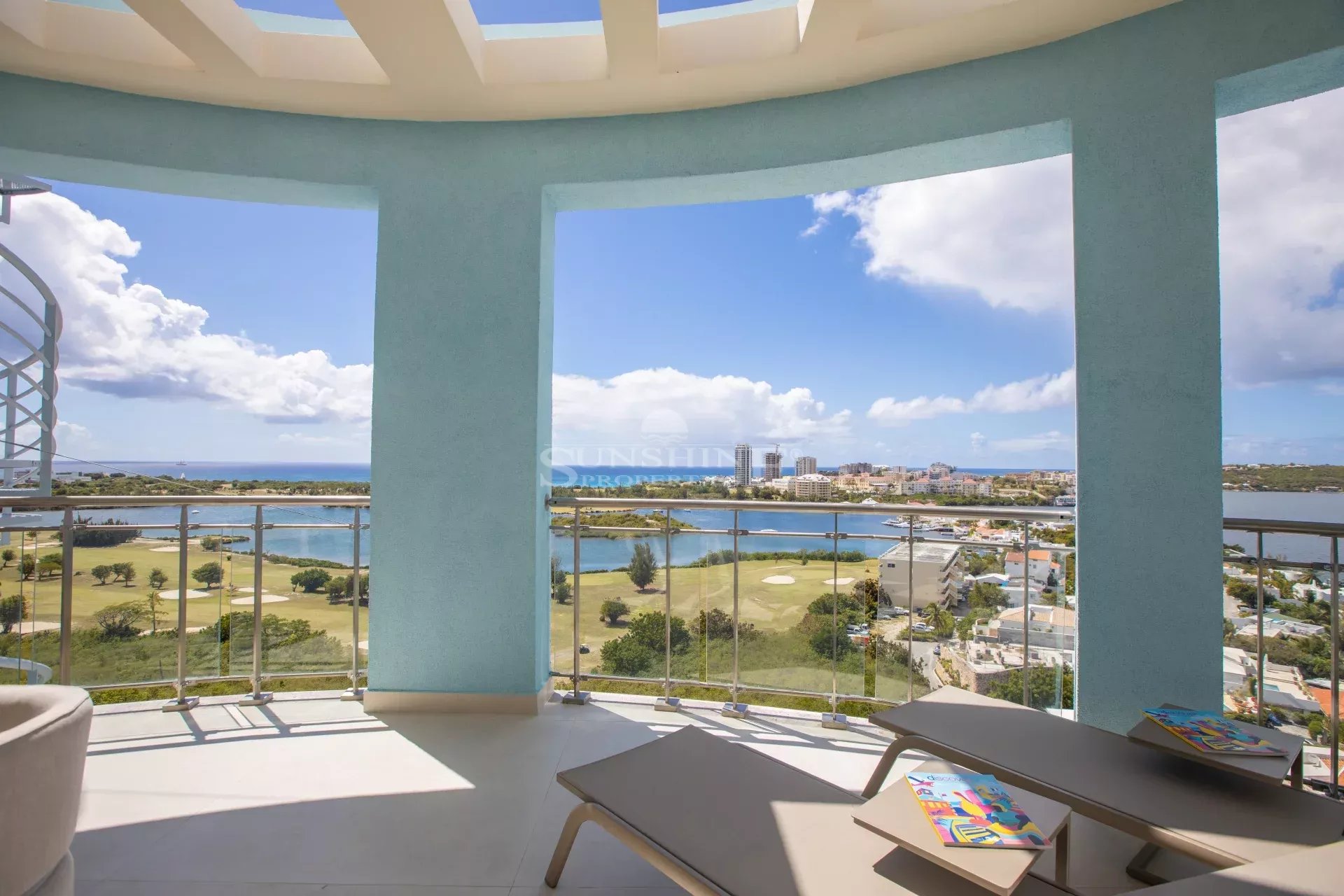 Ce luxueux penthouse de cinq pièces, trois salles de bains complètes et deux demi-salles de bains est situé à Aquamarina, tout en haut de la T Tower, sur trois étages, avec son propre ascenseur interne pour deux personnes. Il offre une vue imprenable sur le terrain de golf de Mullet Bay, la mer des Caraïbes, le lagon et Marigot. La décoration professionnelle et les équipements exceptionnels confèrent à cette propriété une touche de sophistication. Cette unité spectaculaire est en outre complétée par toutes les commodités de la communauté Aqua Marina, y compris la sécurité 24 heures sur 24, la piscine, la salle de sport et les paysages tropicaux colorés.