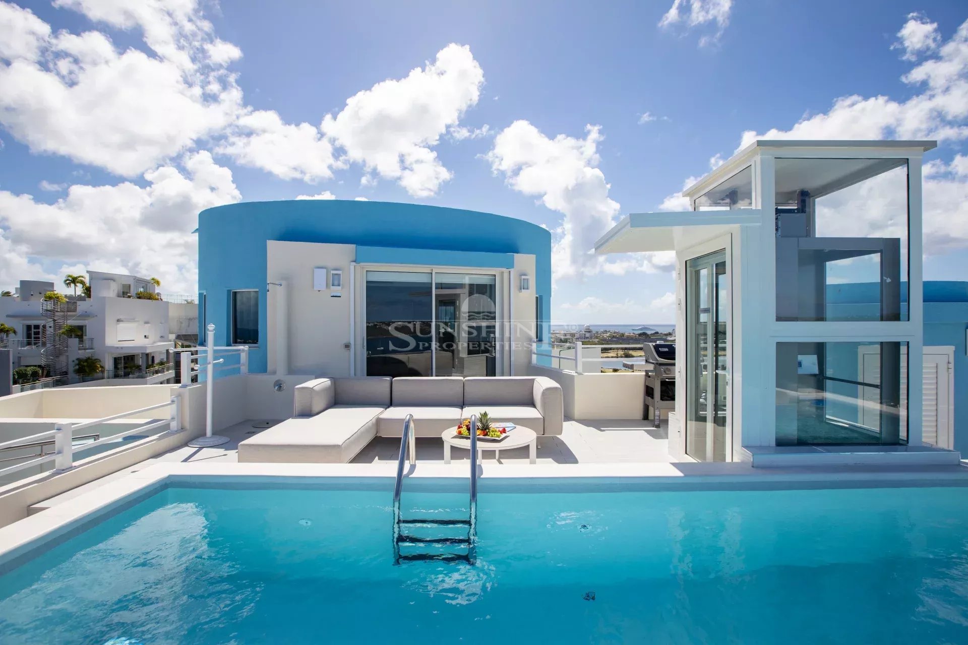 Ce penthouse étonnant est meublé et construit avec les meilleurs matériaux italiens, et incarne à la perfection un mode de vie luxueux et contemporain. C'est l'un des complexes de condominiums et de villas de luxe les plus sûrs et les mieux entretenus de Saint-Martin.