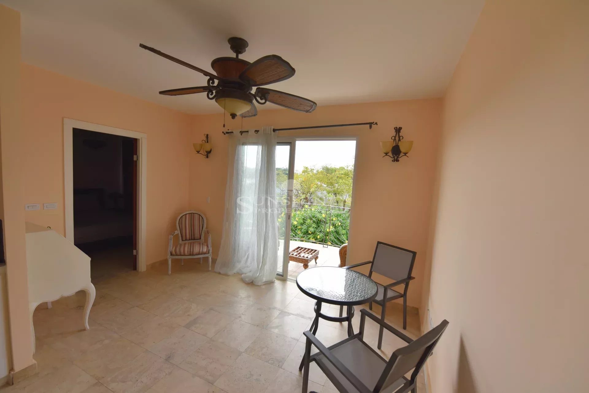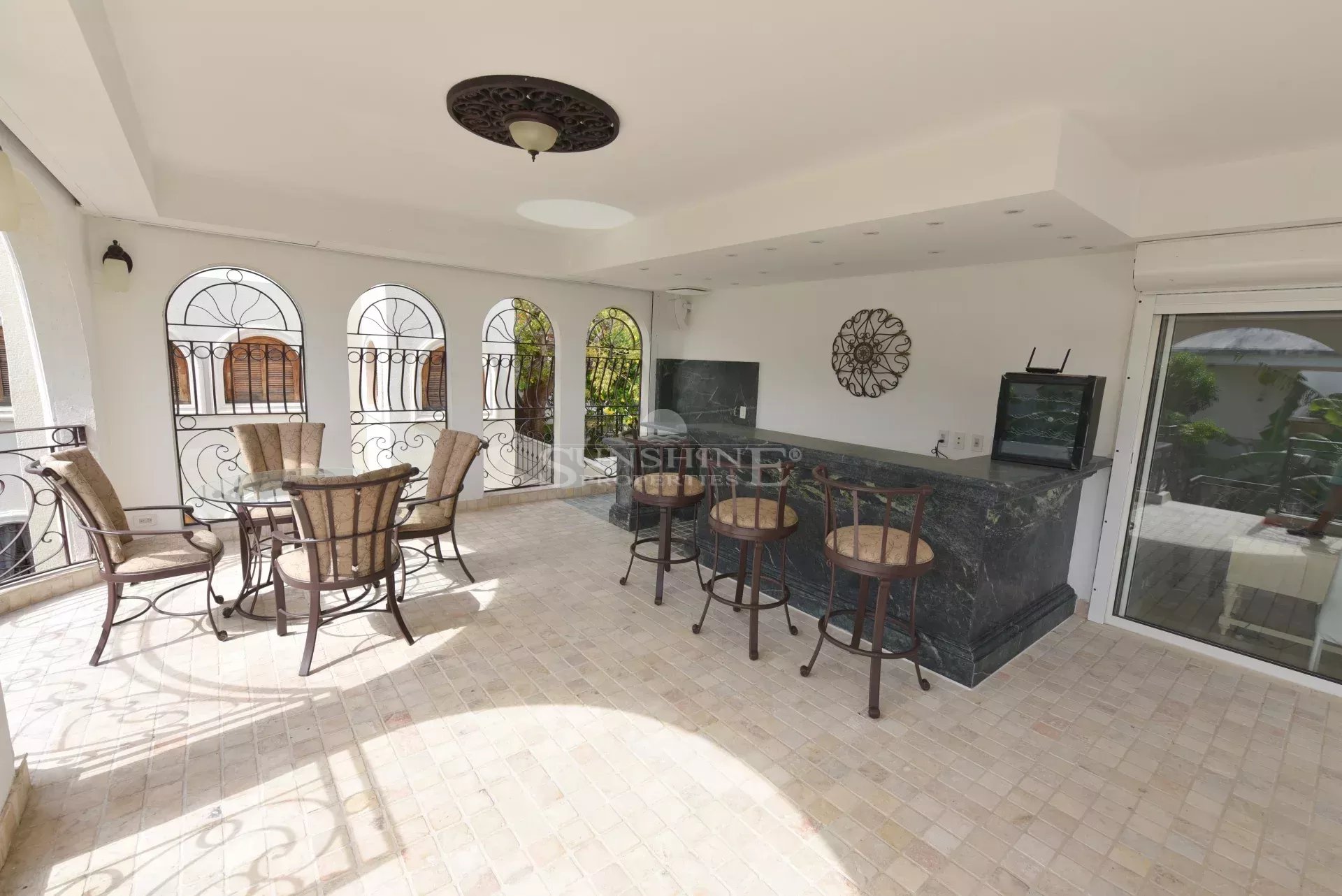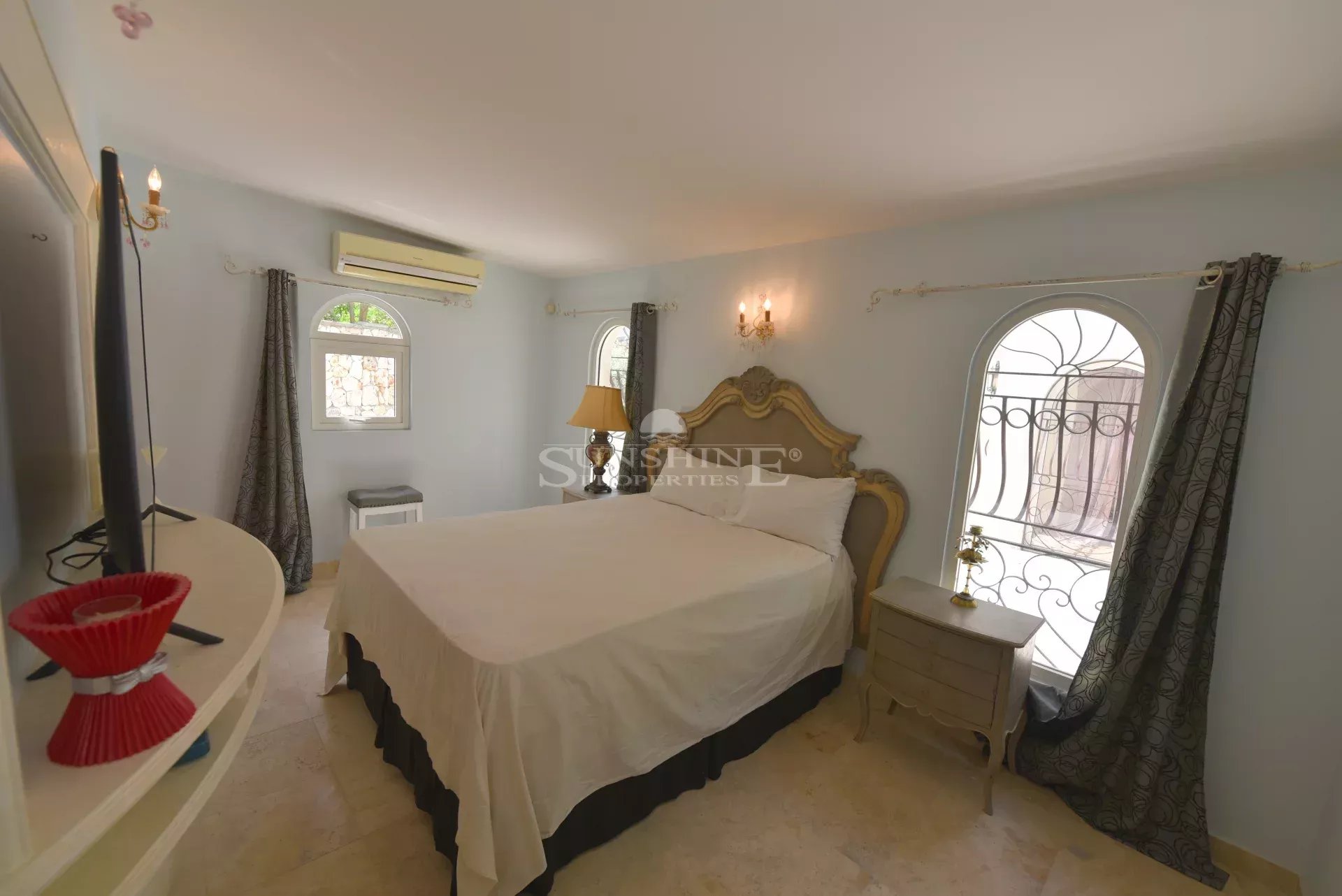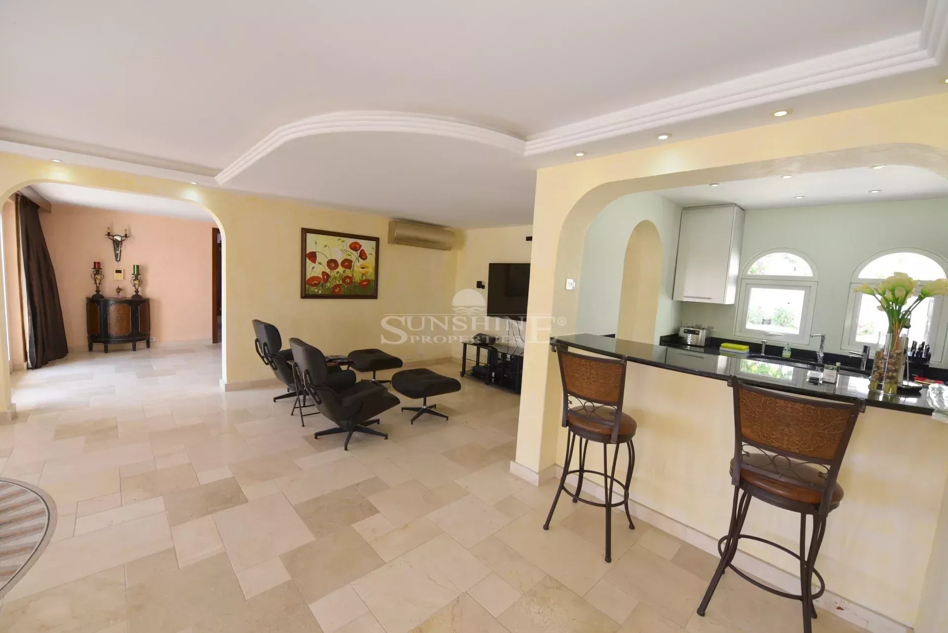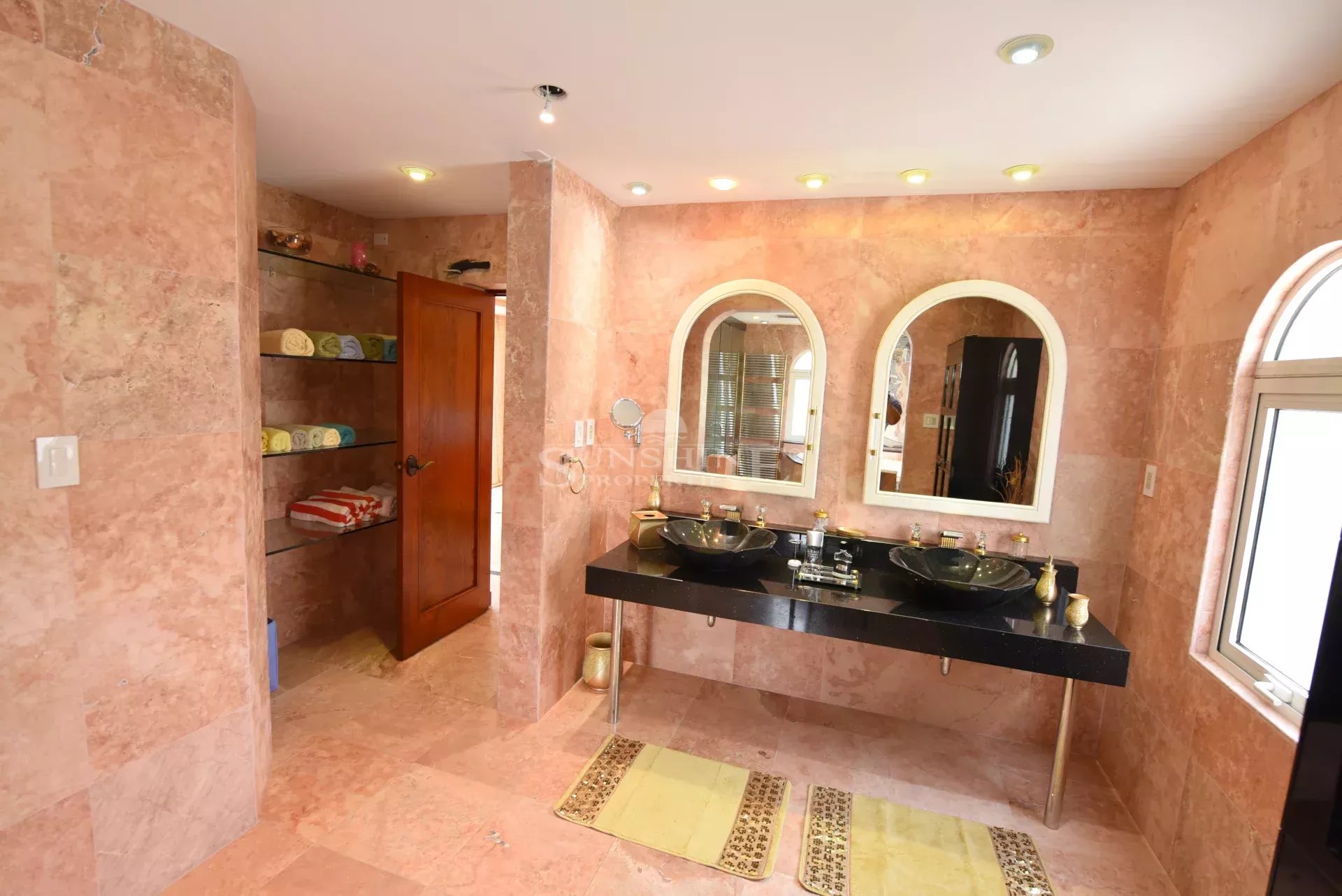 La villa principale comprend, au rez-de-chaussée, une grande cuisine équipée, un salon avec accès à la piscine, deux chambres, une salle de bain complète et une salle d'eau. À l'étage, vous trouverez une chambre principale très spacieuse avec accès à un balcon privé donnant sur le lagon. Cette dernière est reliée à une salle de bains qui vous offrira tout le confort nécessaire, comprenant un jacuzzi et une douche à effet de pluie séparée. À côté de la chambre principale se trouve le bureau à domicile, également relié à un espace de divertissement extérieur séparé comprenant un bar en granit situé sous un porche couvert et une terrasse ensoleillée à l'avant.