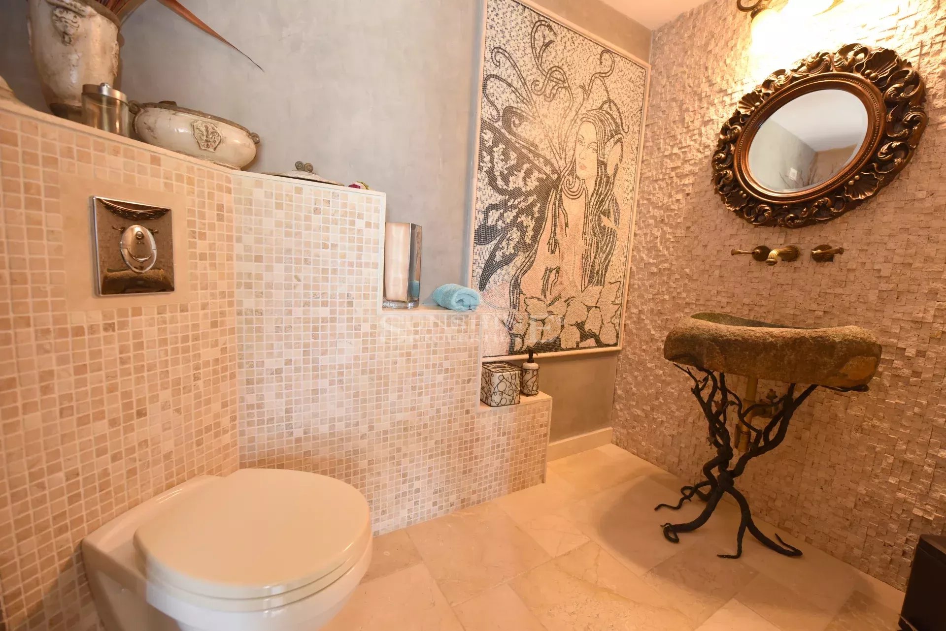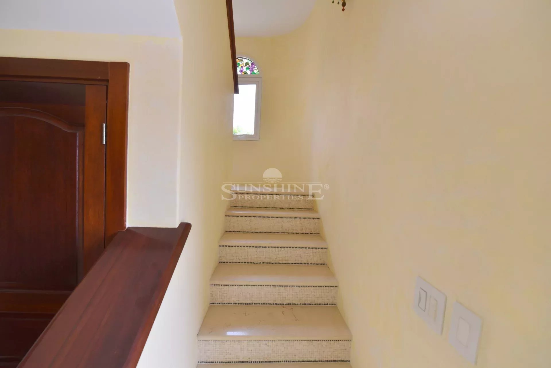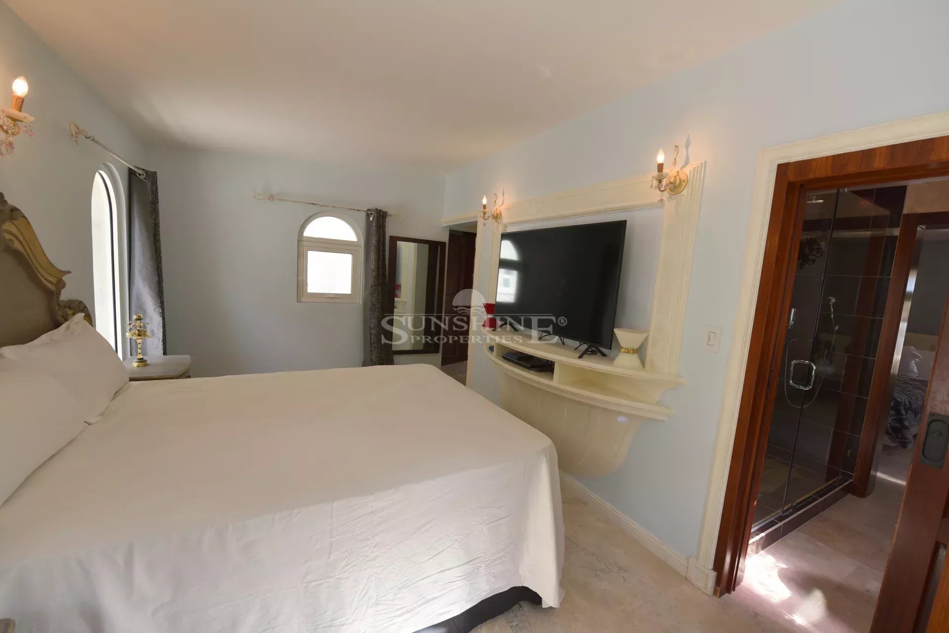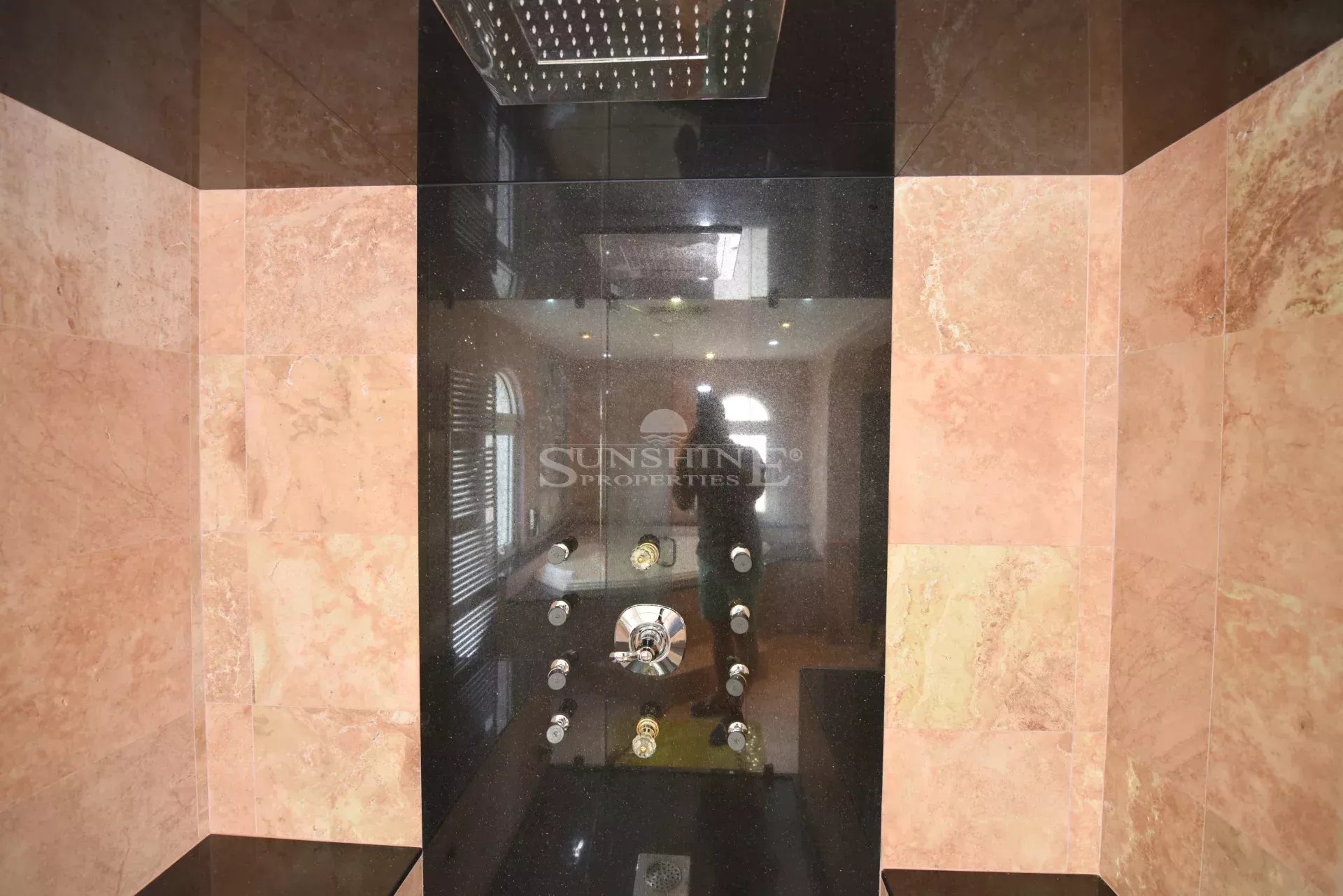 La villa principale comprend, au rez-de-chaussée, une grande cuisine équipée, un salon avec accès à la piscine, deux chambres, une salle de bain complète et une salle d'eau. À l'étage, vous trouverez une chambre principale très spacieuse avec accès à un balcon privé donnant sur le lagon. Cette dernière est reliée à une salle de bains qui vous offrira tout le confort nécessaire, comprenant un jacuzzi et une douche à effet de pluie séparée. À côté de la chambre principale se trouve le bureau à domicile, également relié à un espace de divertissement extérieur séparé comprenant un bar en granit situé sous un porche couvert et une terrasse ensoleillée à l'avant.