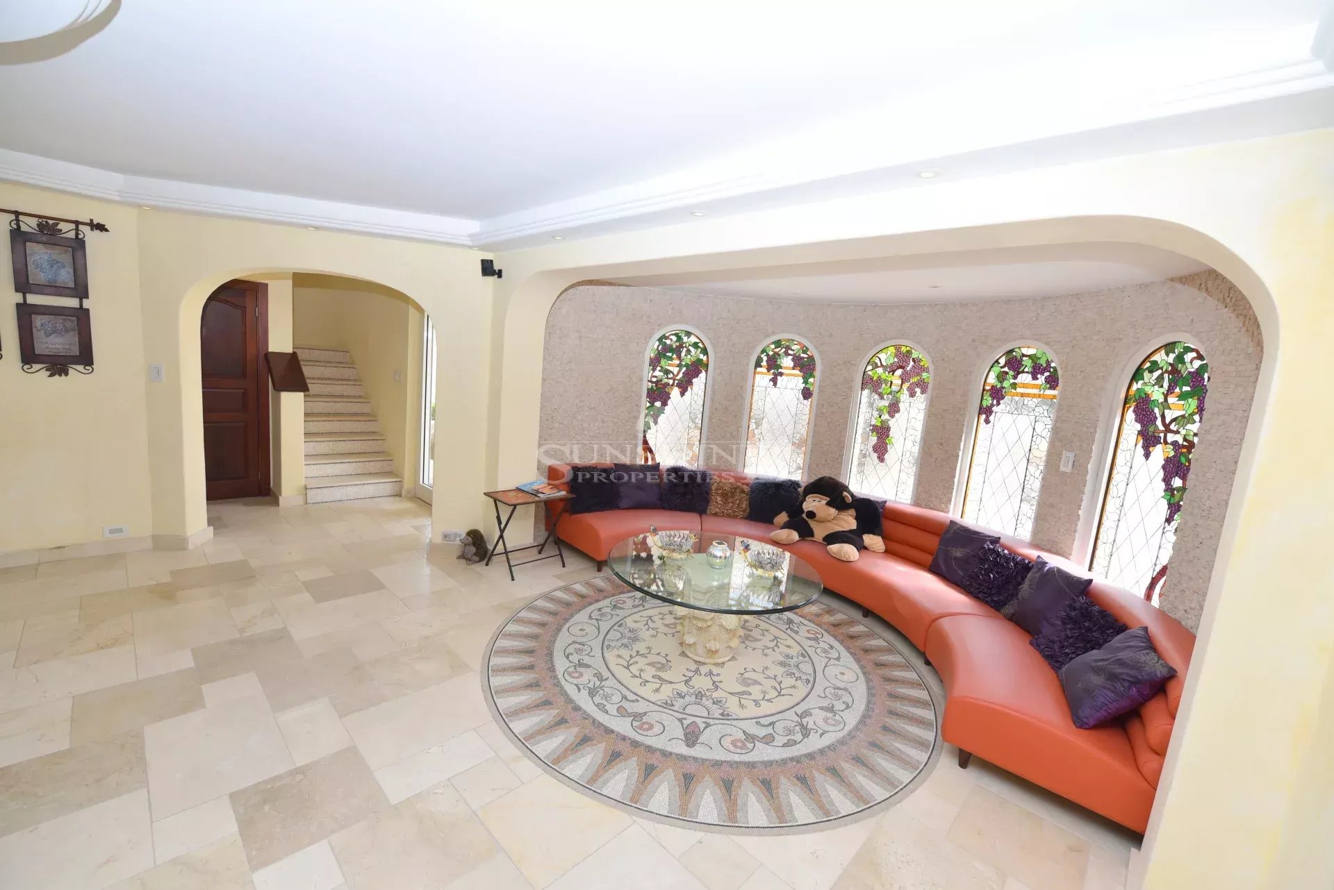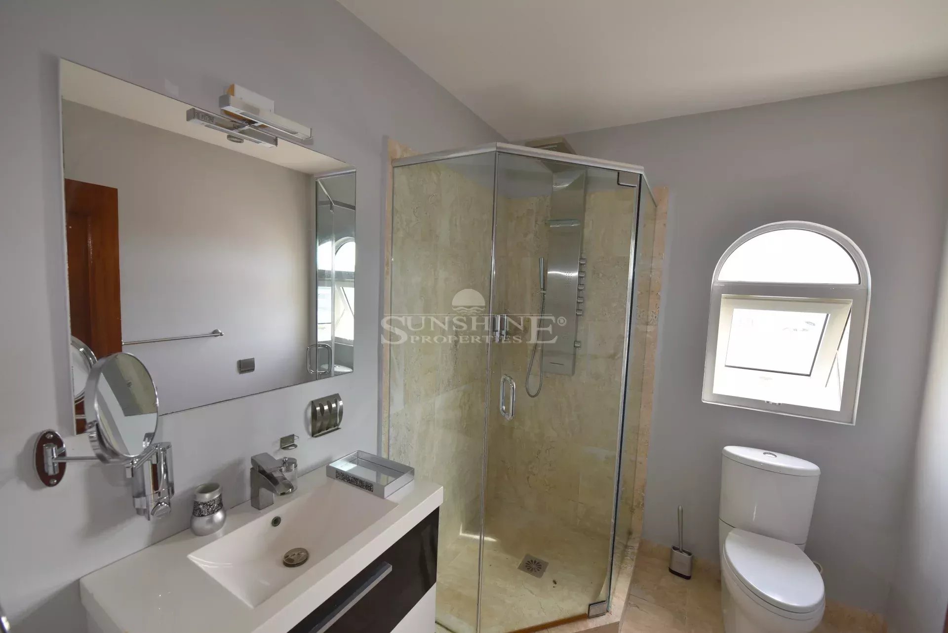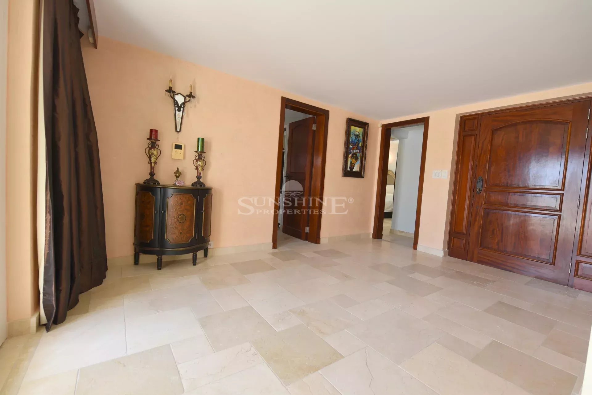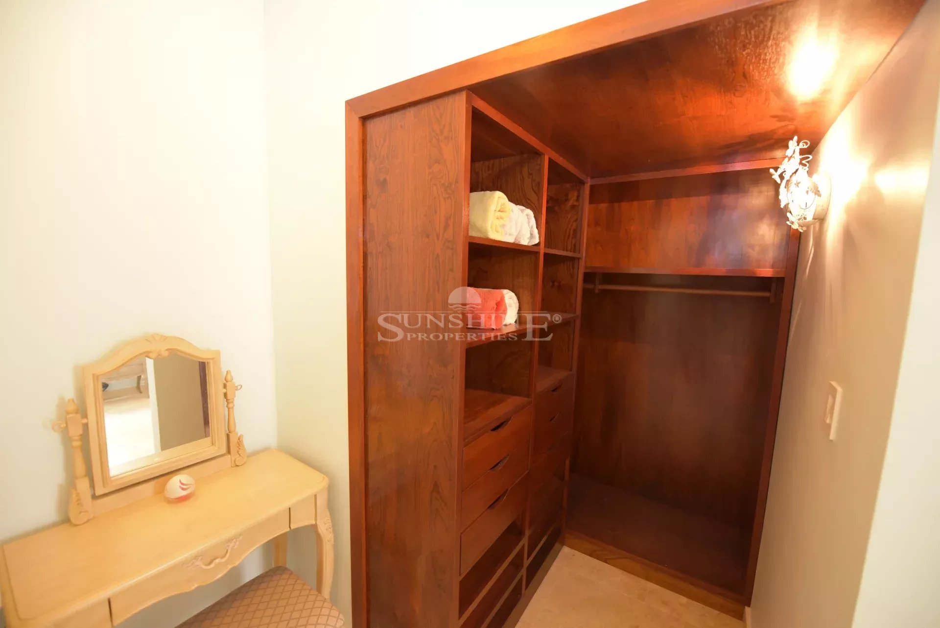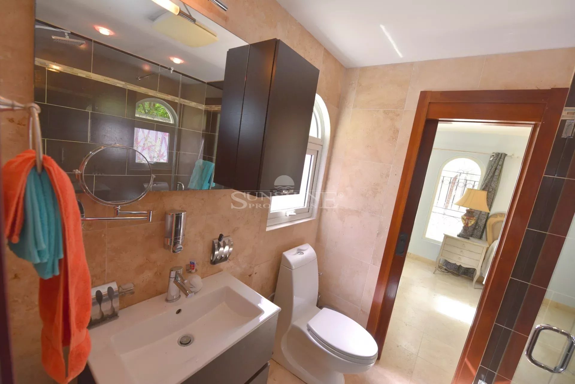 La villa principale comprend, au rez-de-chaussée, une grande cuisine équipée, un salon avec accès à la piscine, deux chambres, une salle de bain complète et une salle d'eau. À l'étage, vous trouverez une chambre principale très spacieuse avec accès à un balcon privé donnant sur le lagon. Cette dernière est reliée à une salle de bains qui vous offrira tout le confort nécessaire, comprenant un jacuzzi et une douche à effet de pluie séparée. À côté de la chambre principale se trouve le bureau à domicile, également relié à un espace de divertissement extérieur séparé comprenant un bar en granit situé sous un porche couvert et une terrasse ensoleillée à l'avant.