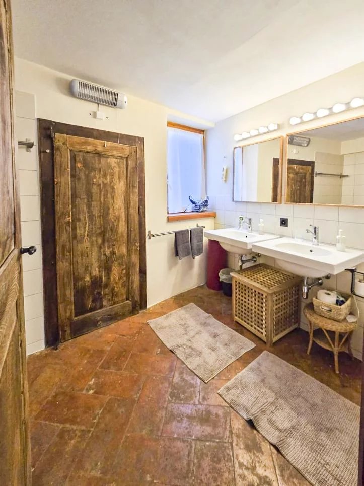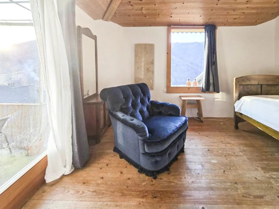 L’entrée se fait par un spacieux atrium, menant à une grande salle avec une cheminée typique de la région et une veranda avec salle de bain. Le jardin et la terrasse offrent un espace extérieur intime. L’entresol dispose d’une cuisine industrielle en inox, de petites salles de loisirs et d’une chambre avec salle de bain.