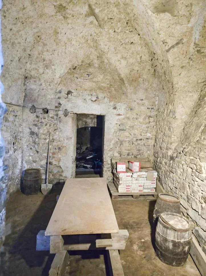Accessibles depuis le rez-de-chaussée et la rue en contrebas, ils s’étendent sur deux niveaux. Vous y trouverez une ancienne boulangerie avec four à bois, des caves à vin, fromage et charcuterie, ainsi que des locaux d’époque, dont un avec cheminée et niche, idéal pour créer un espace de vie supplémentaire. Ces caves non rénovées offrent un potentiel intéressant pour des projets de transformation.